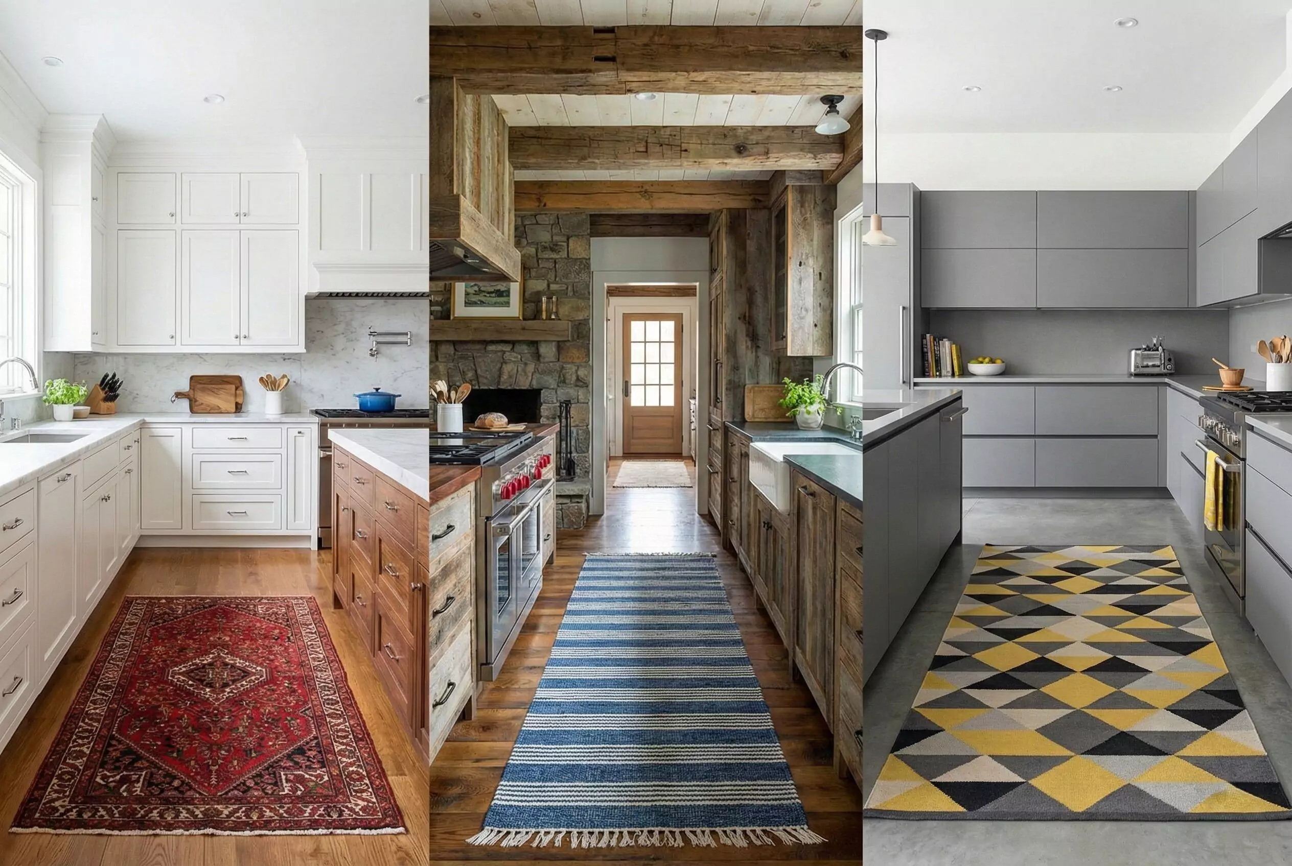 If you have an island, the walkway between the island and the main cabinets is a high-traffic zone. A runner rug fits perfectly here. It visually connects the two spaces and protects the floor where you walk the most.