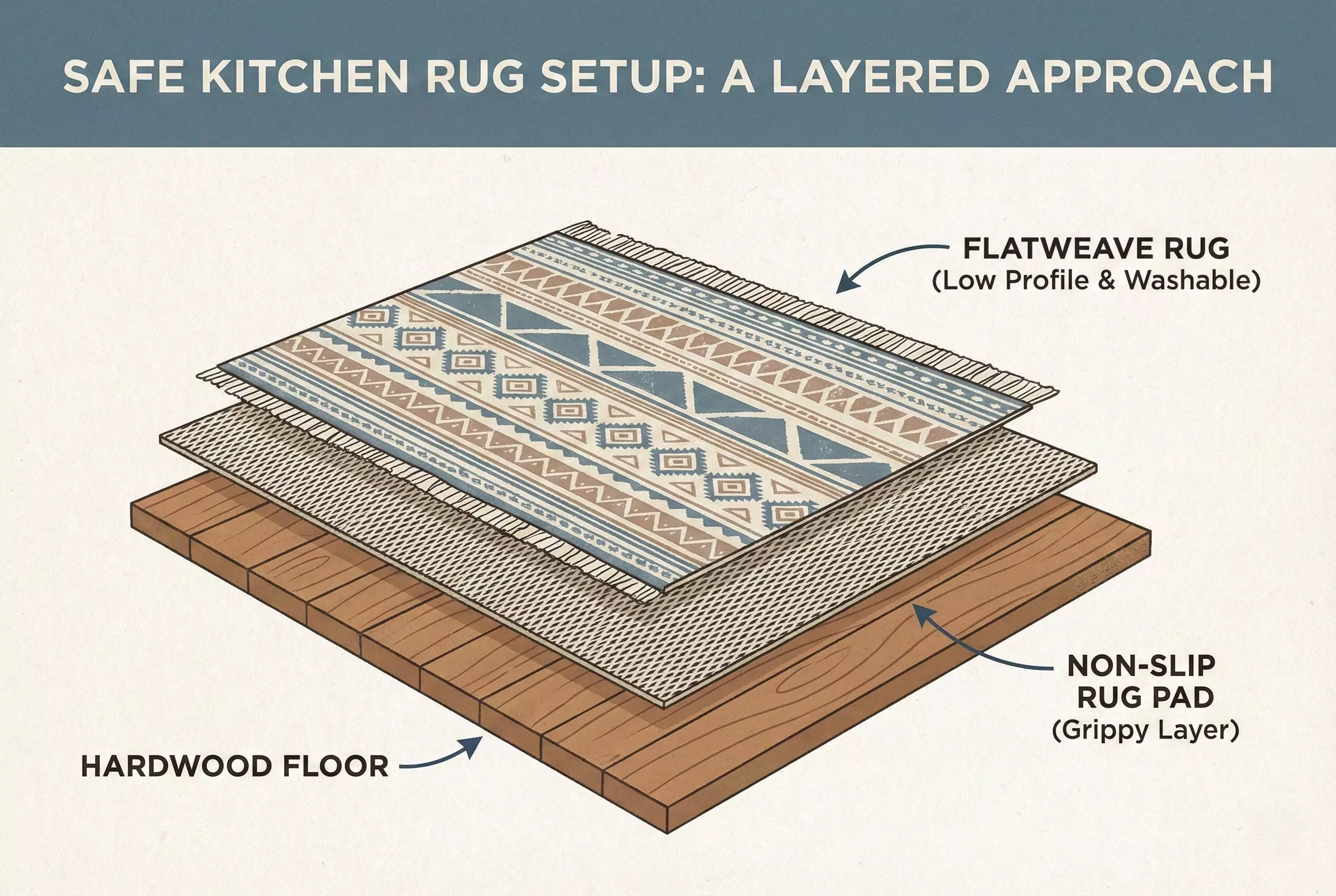 - Tripping Hazards: In a busy kitchen where you are carrying hot pans or sharp knives, a curled rug corner is dangerous.