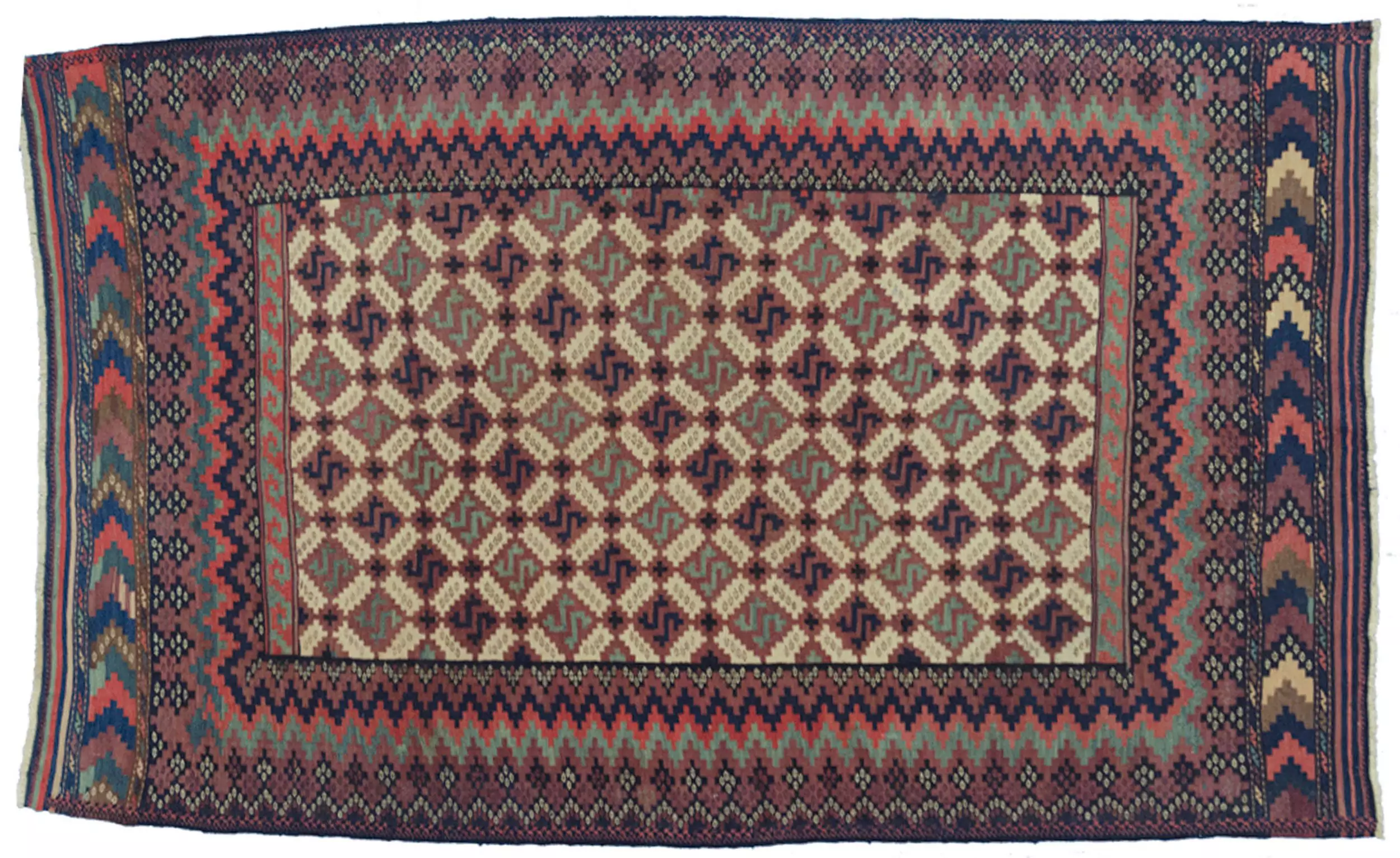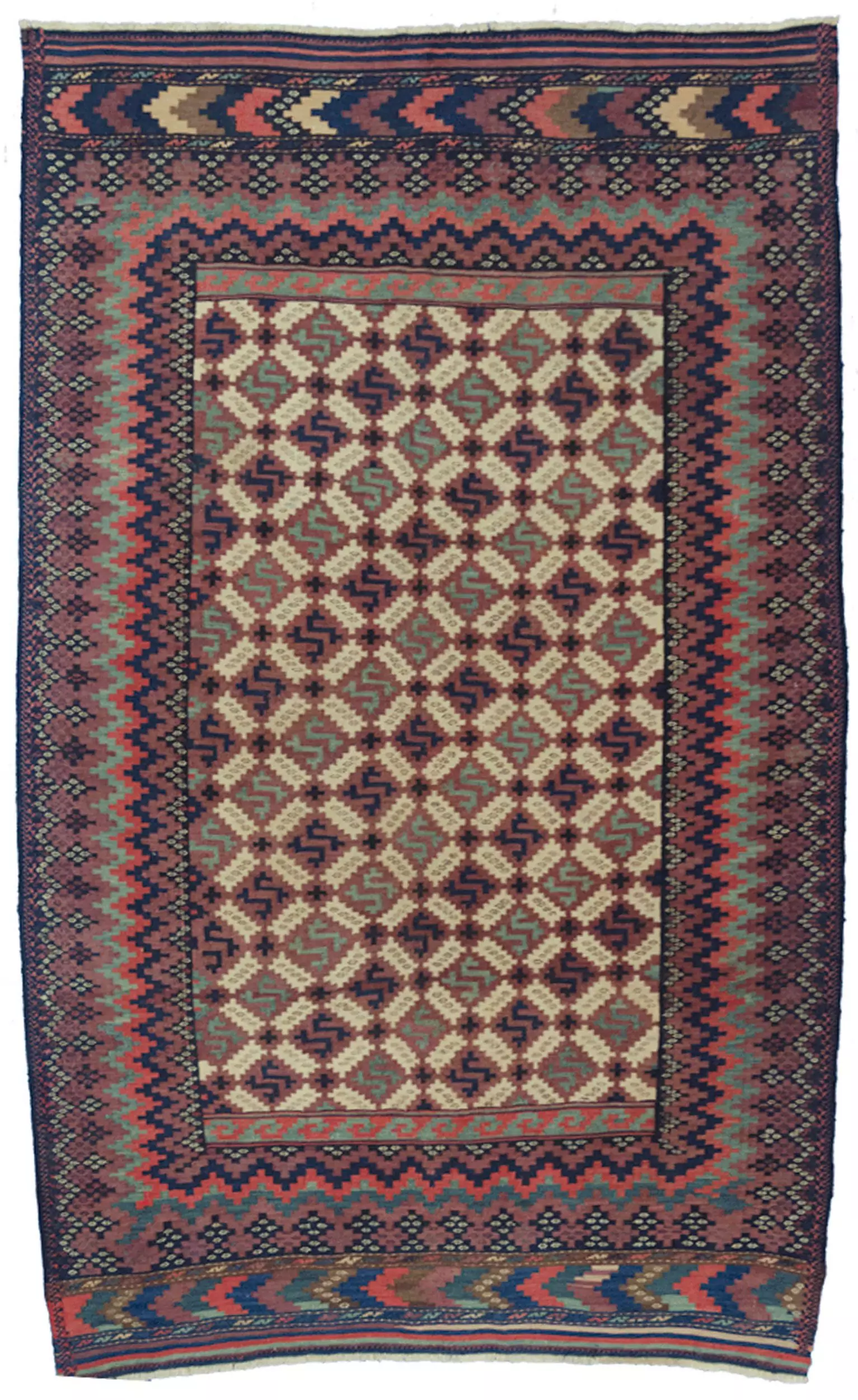 Magnificent Antique Afshar Kilim – Cream Ground with Mosaic Lozenge Design