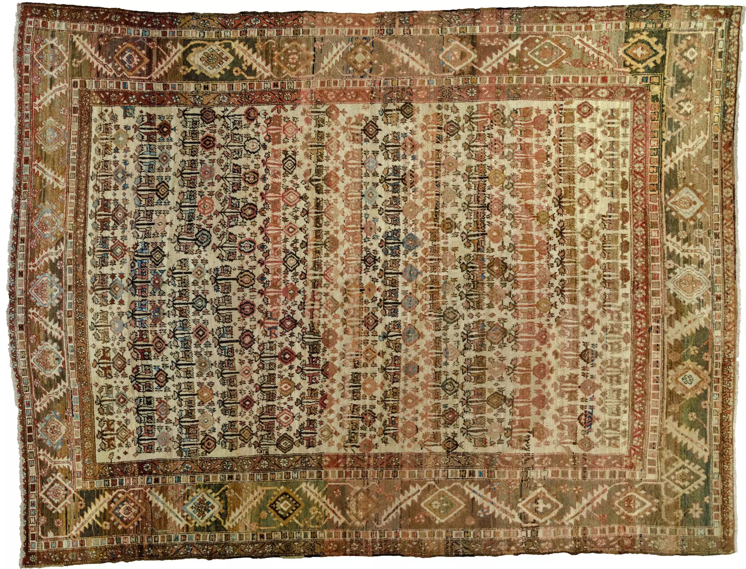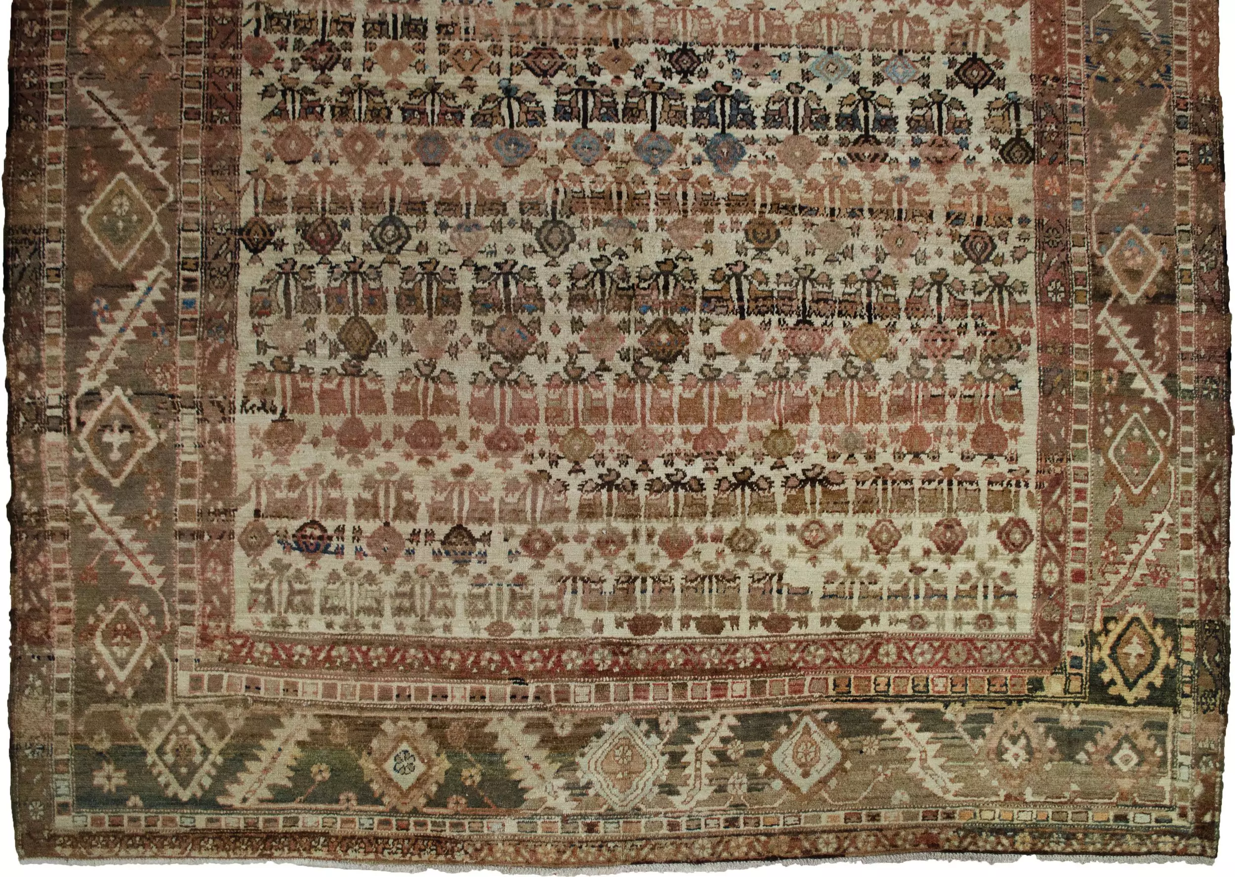 Bakhsyash carpets, originating from the culturally rich region of Bakhsyash in Iran, are celebrated not for a high knot density, but for their exceptional decorative and artistic qualities. This antique example perfectly captures the essence of the style, presenting a refined palette of soft, muted colors that lend the rug a sense of understated elegance.