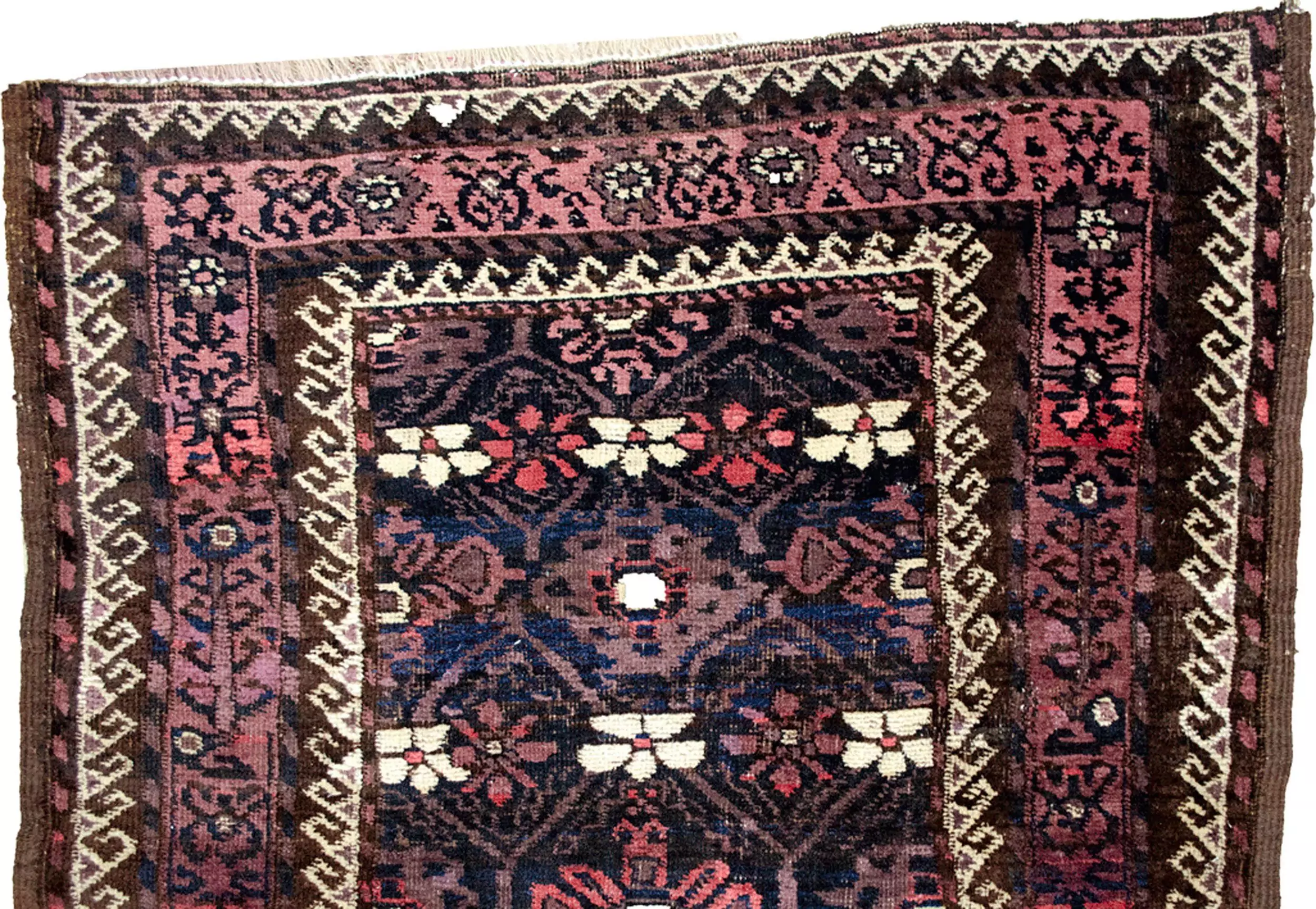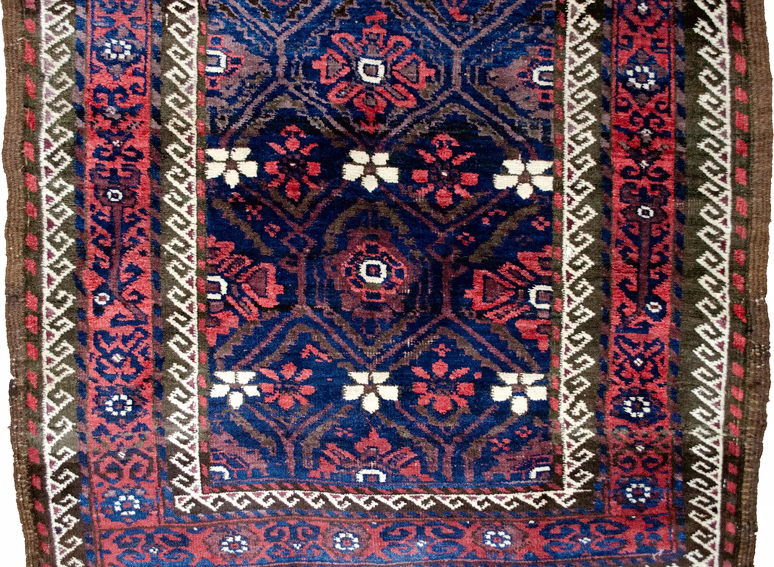This rug is in very good condition, with its full pile intact—a rare attribute for antique Baluch rugs. Its age, preservation, and visual appeal make it a wonderful collector’s piece, while its character and softness make it equally suited for interior use as a decorative floor rug or wall hanging.