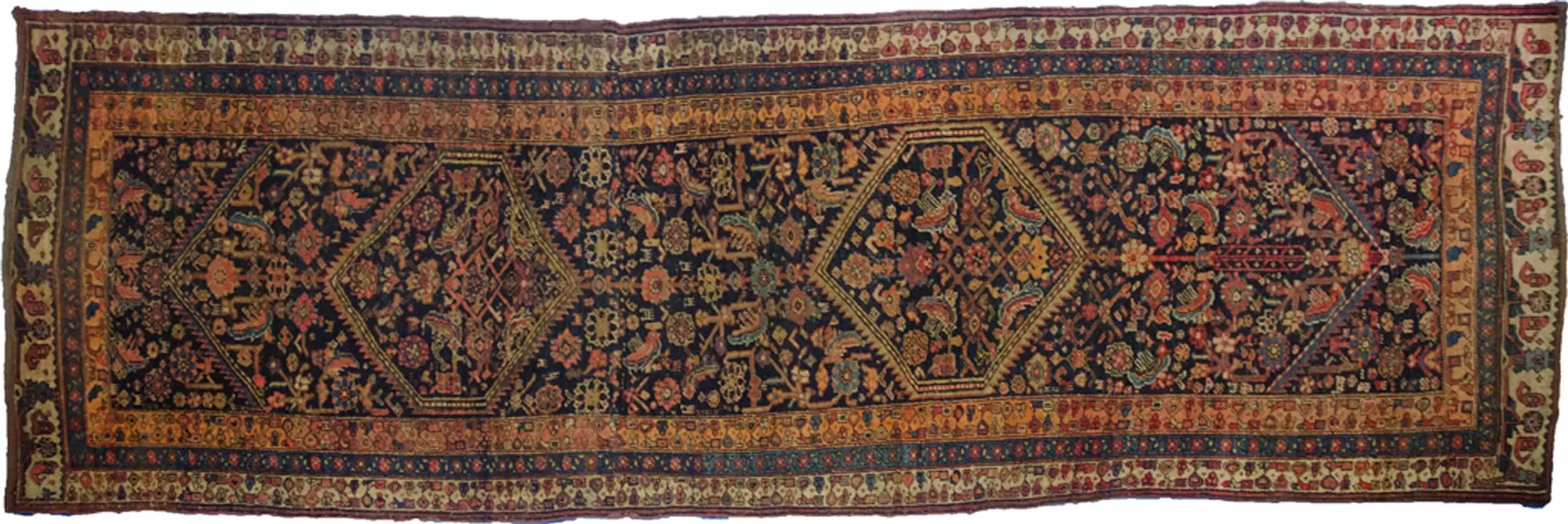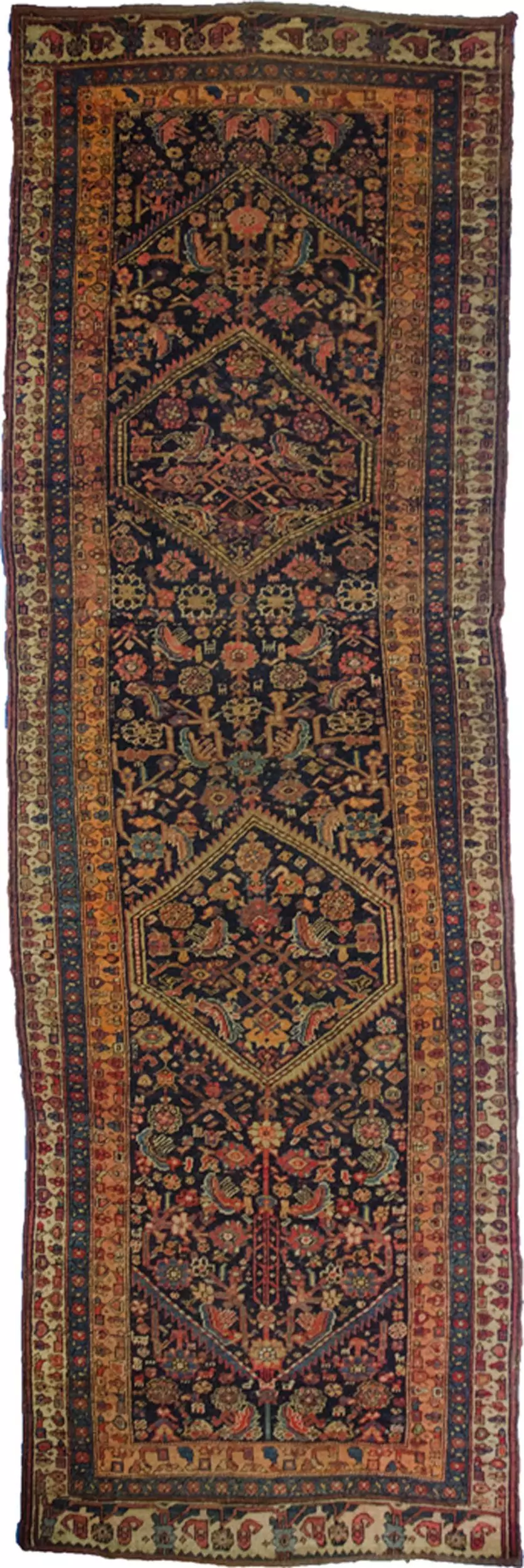 Handsome Antique Bijar Runner – Deep Blue Ground with Double Medallion