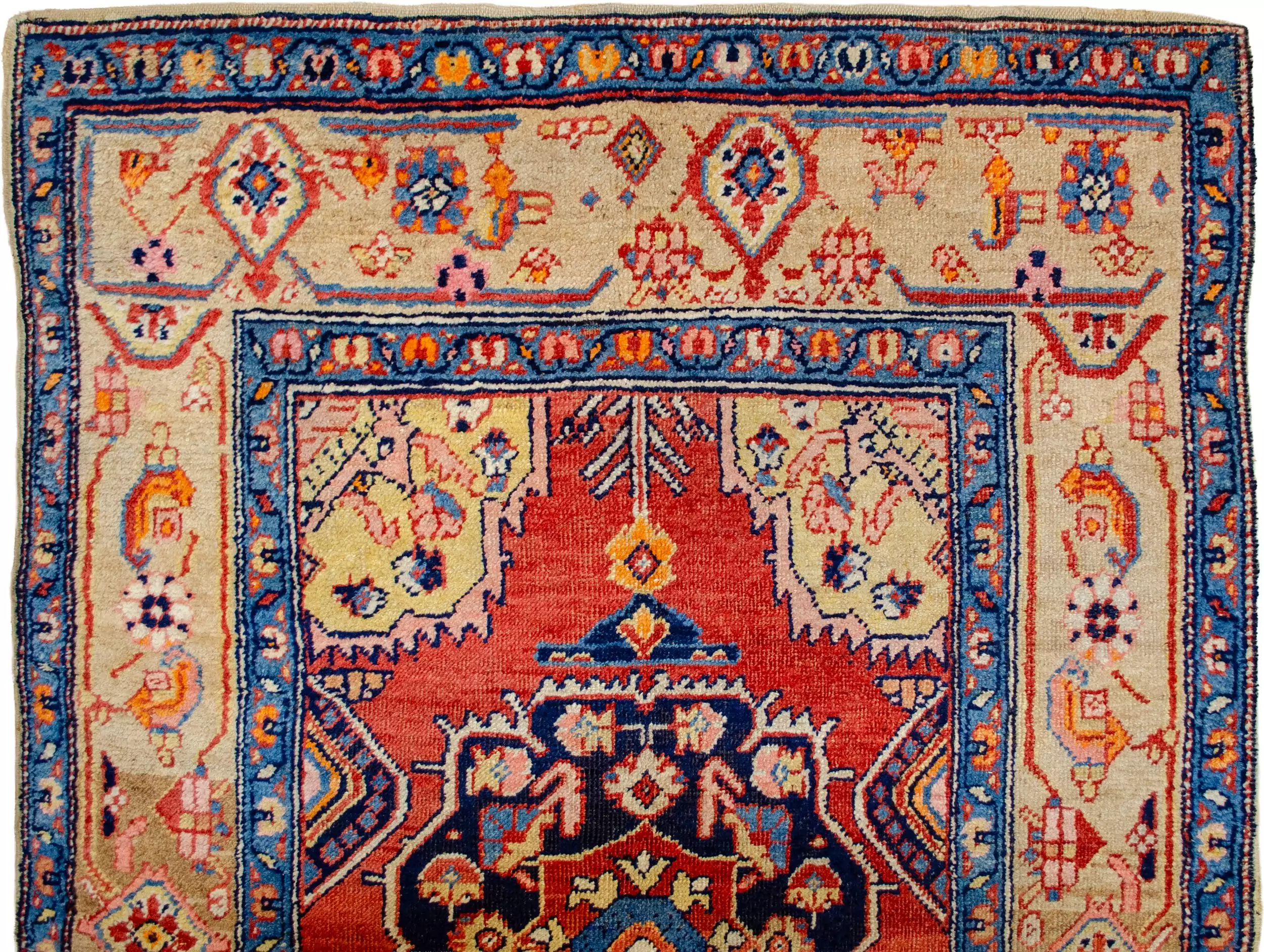 Handmade Antique Kurdish Carpet 1920s 307 x 168cm (10.1′ x 5.5′)