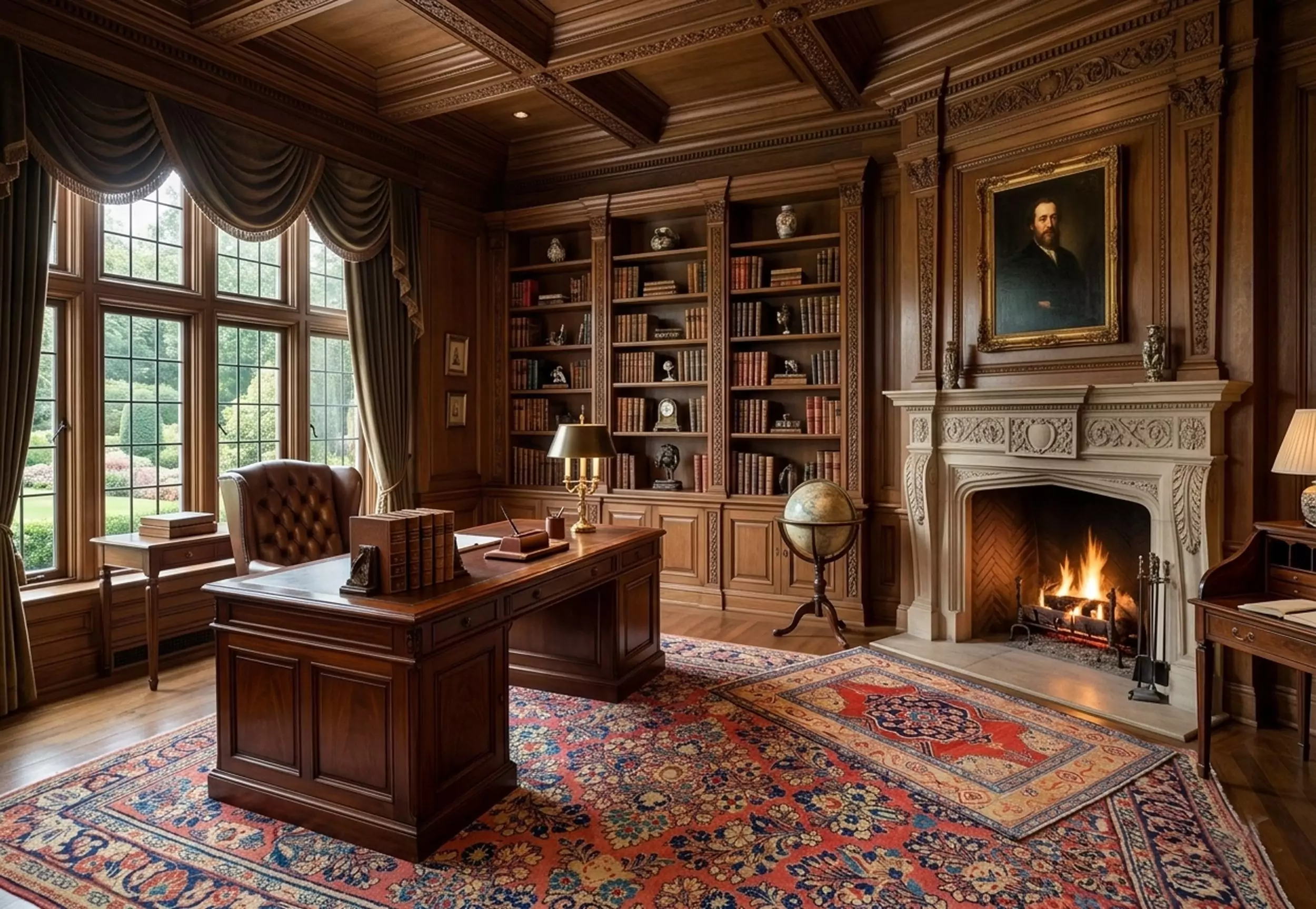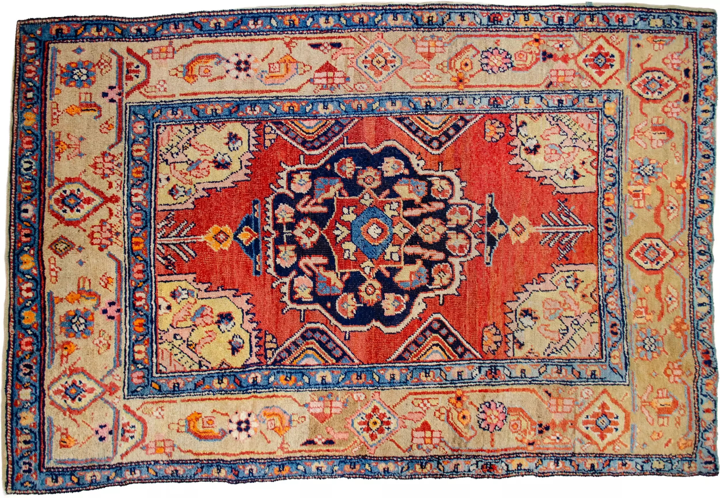 The Medallion: A stylish central medallion in deep blue, providing a commanding focal point with strong geometric “Heriz” influences.
