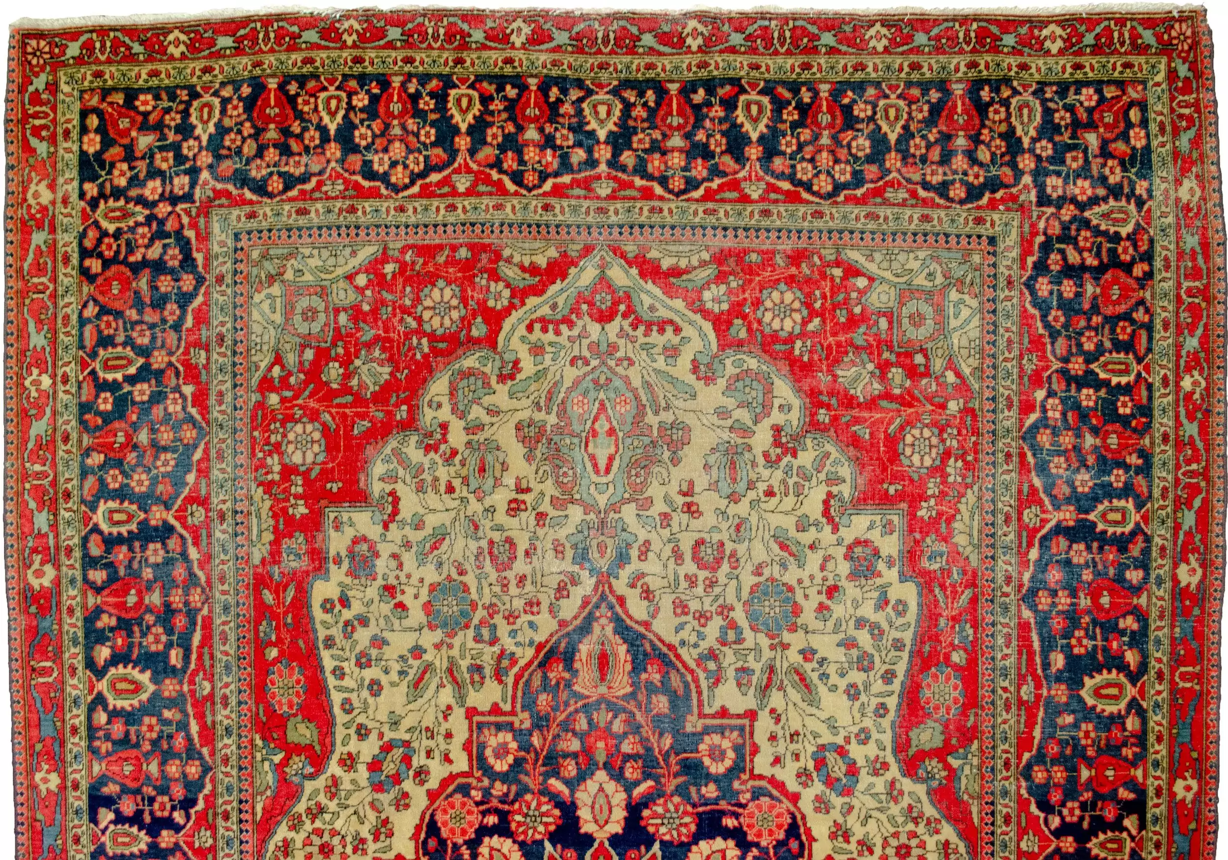 Kashan is one of the most celebrated weaving centres in Persia, known for producing carpets of exceptional refinement. Among its most revered names is the Mohtasham workshop, famous for using finely spun wool, natural dyes, and superior craftsmanship. This antique piece is a genuine example from that prestigious atelier.