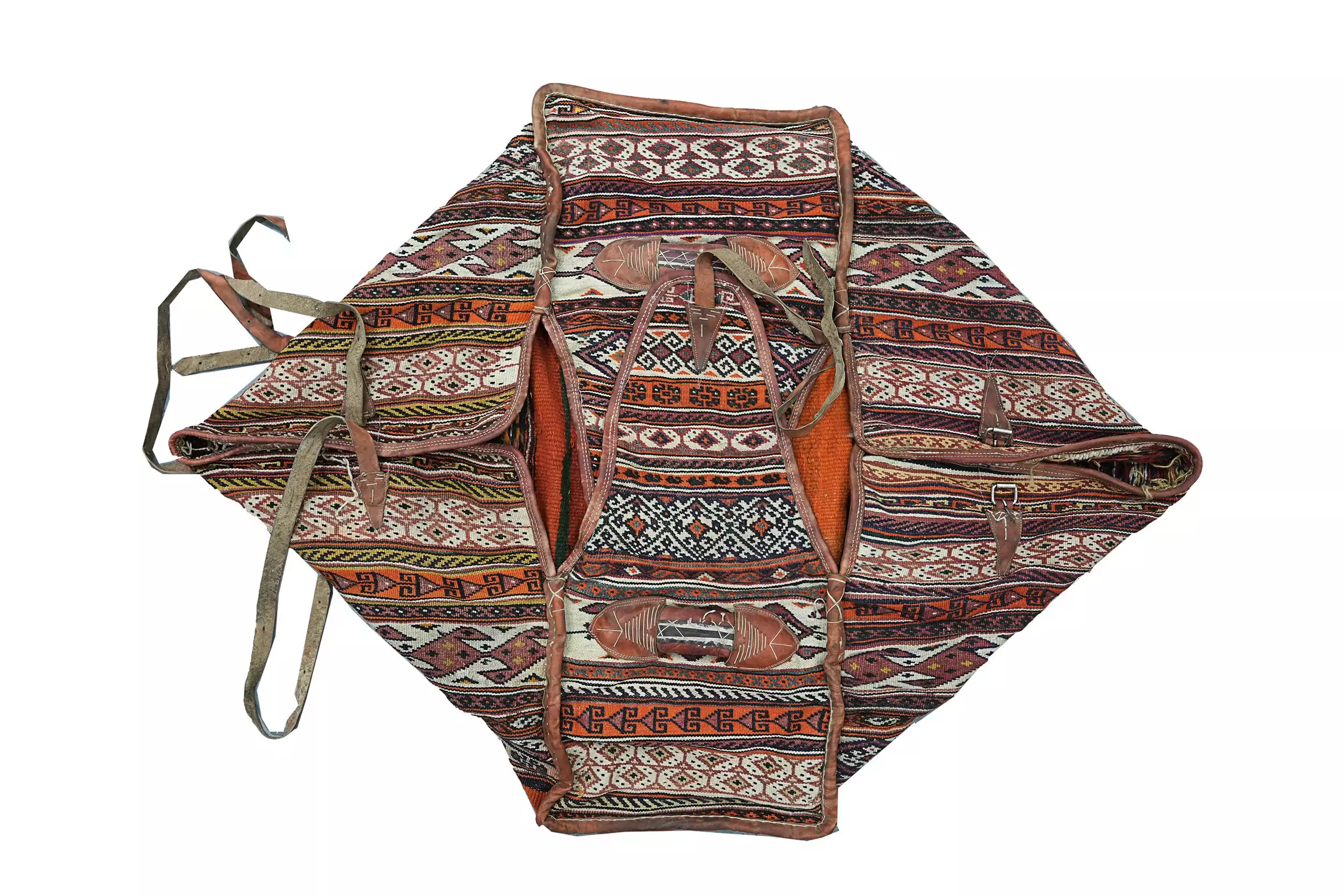 Remarkably, the strong leather straps and handles of the Mafrash remain intact despite years of use, demonstrating the durability and quality of the materials employed. Typically, these striking pieces are used as decorative accents in homes or creatively repurposed into storage boxes, allowing for both functionality and artistic expression in interior design.