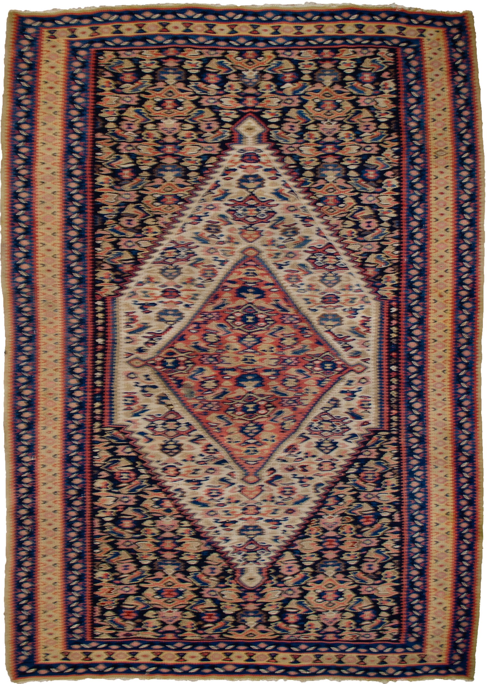 For the discerning rug collector, the most treasured pieces are those that embody condition, rarity, age, and authenticity—and this exquisite antique Senneh kilim checks every box.