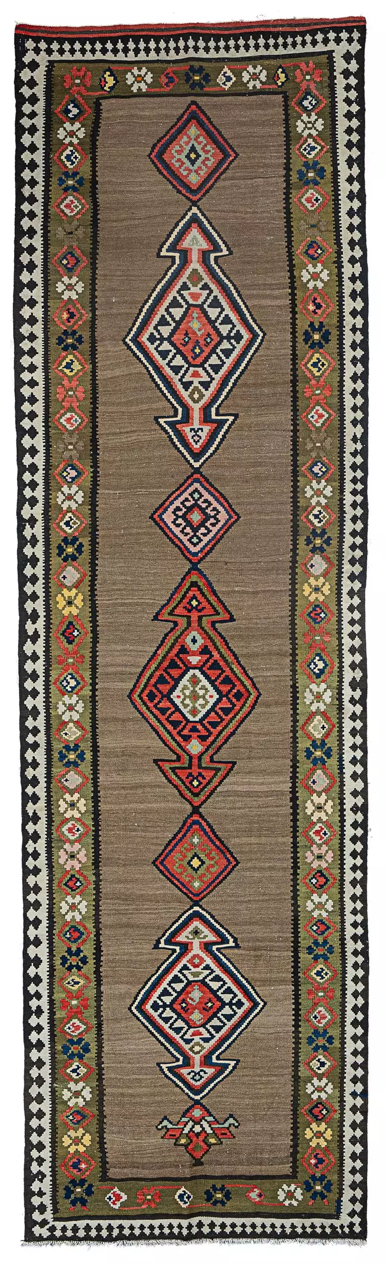 Antique Azerbijan Kilim Runner 1920s 574 x 110cm (18.8′ x 3.6′)