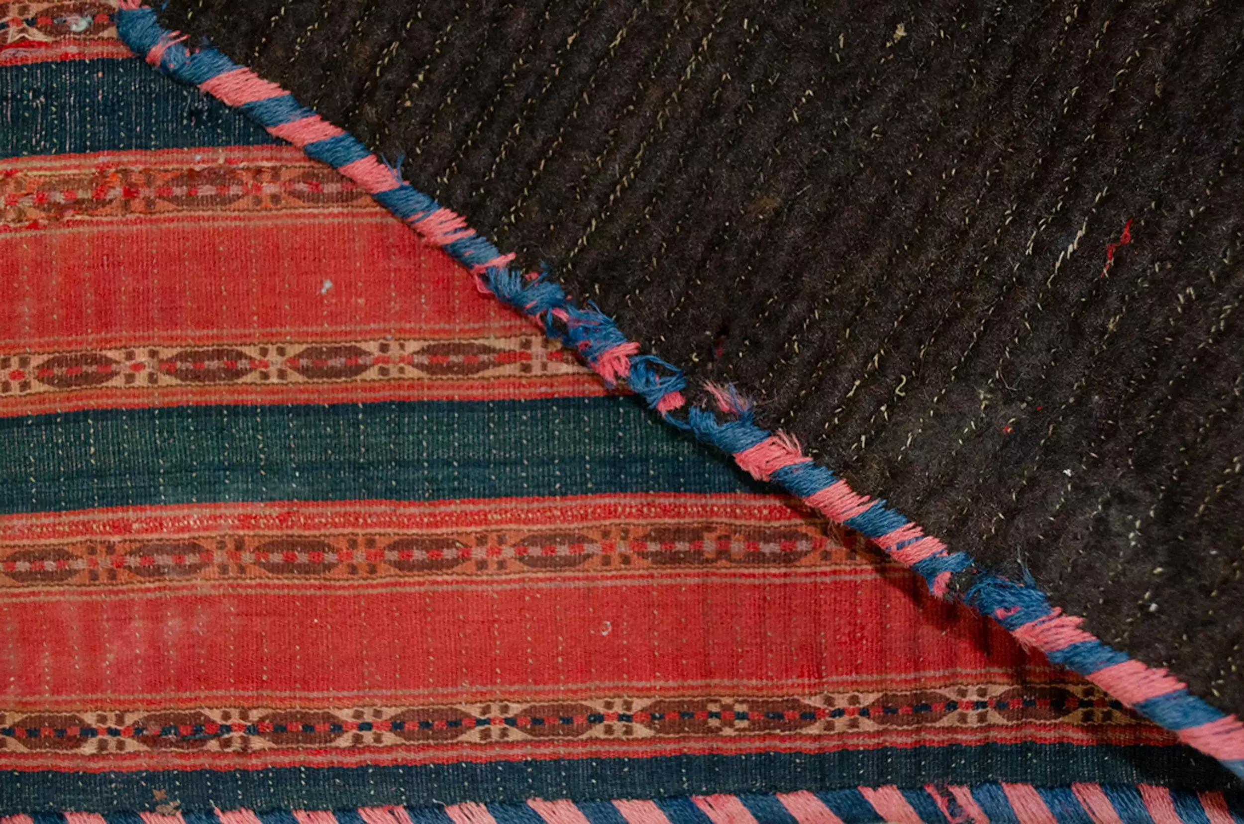 Handsome antique Turkman tent decoration from Northeast of Iran. Beautiful design and colour with felt on the back. There is a small hole, which is reflected in the price. A fun piece.
