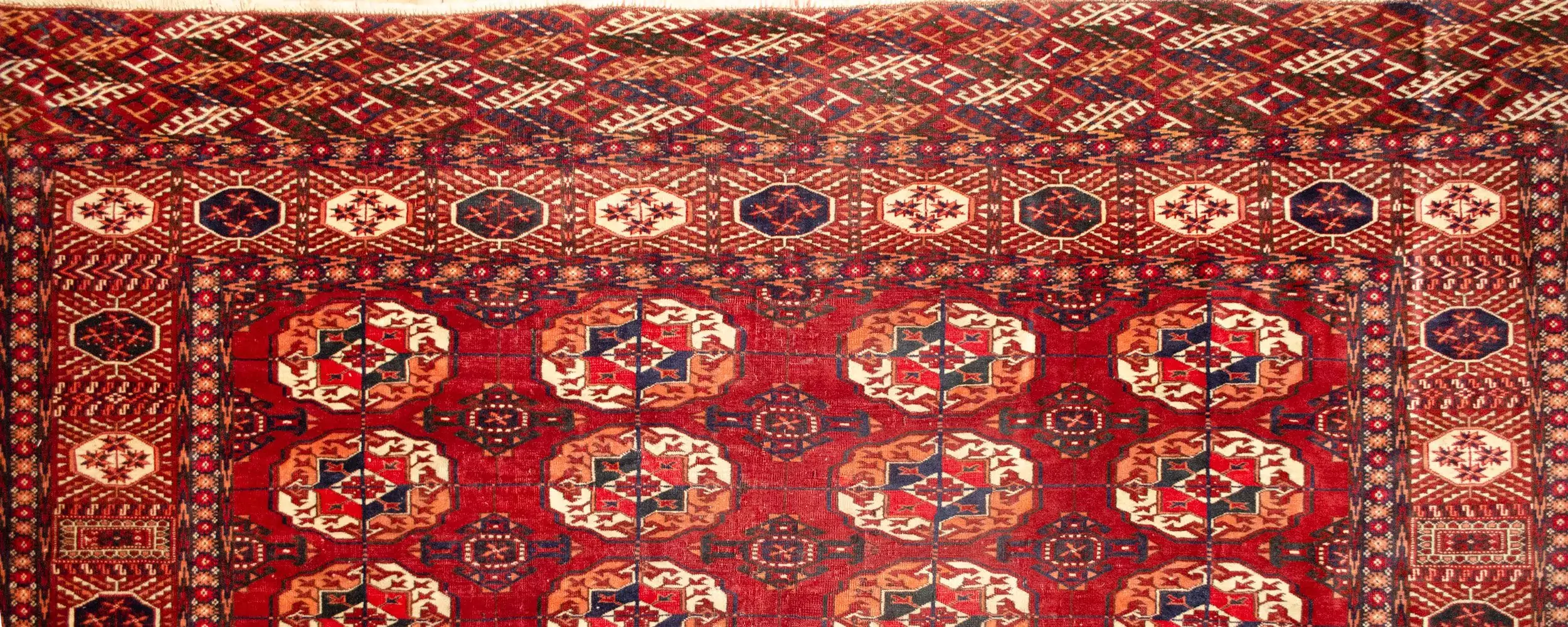 Framed by a classic Turkmen border and traditional end finishes, this carpet maintains its cultural integrity and craftsmanship. The soft wool used in the weave offers a beautiful natural sheen, enhancing the depth of colour and tactile richness of the rug.