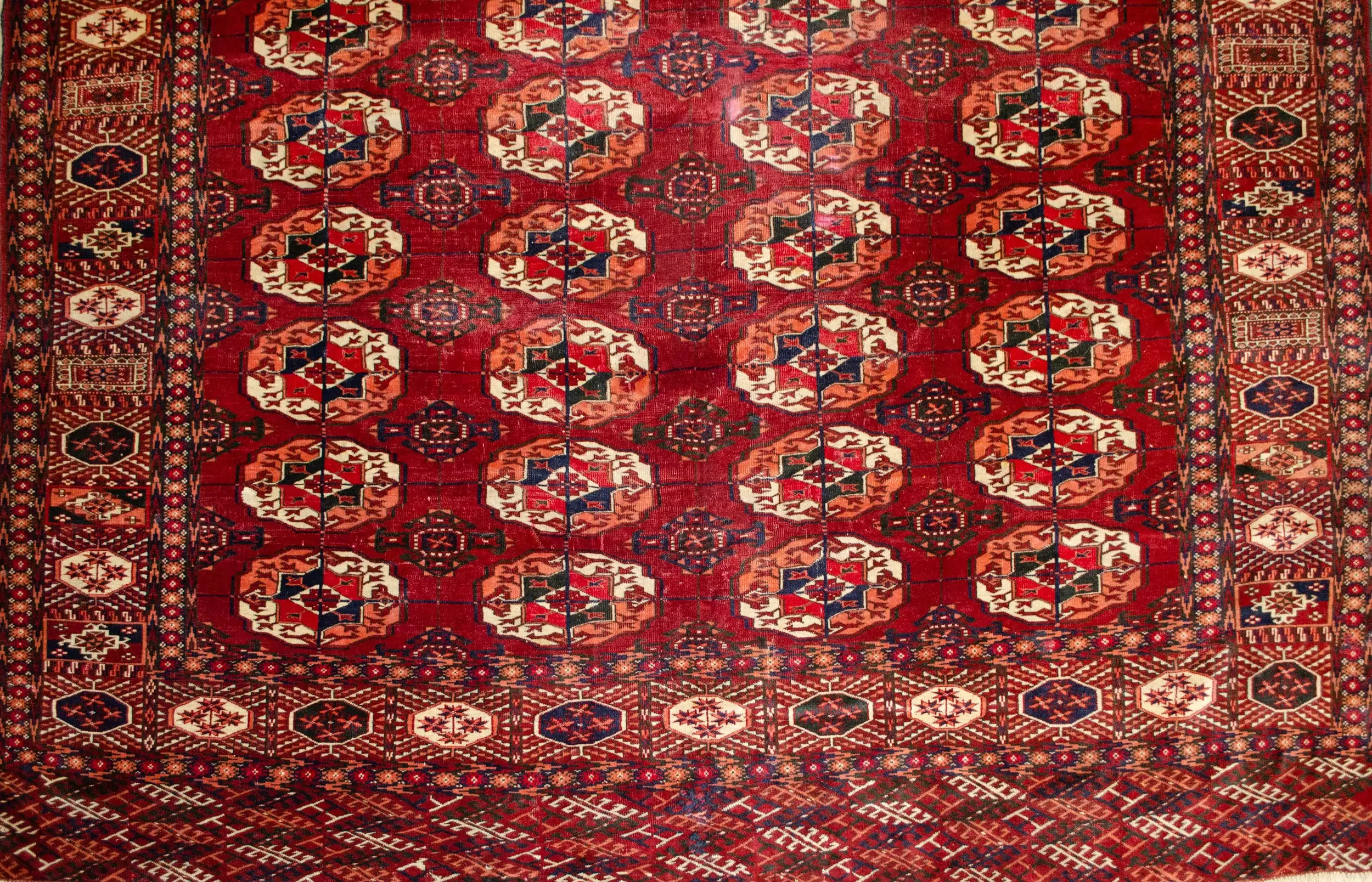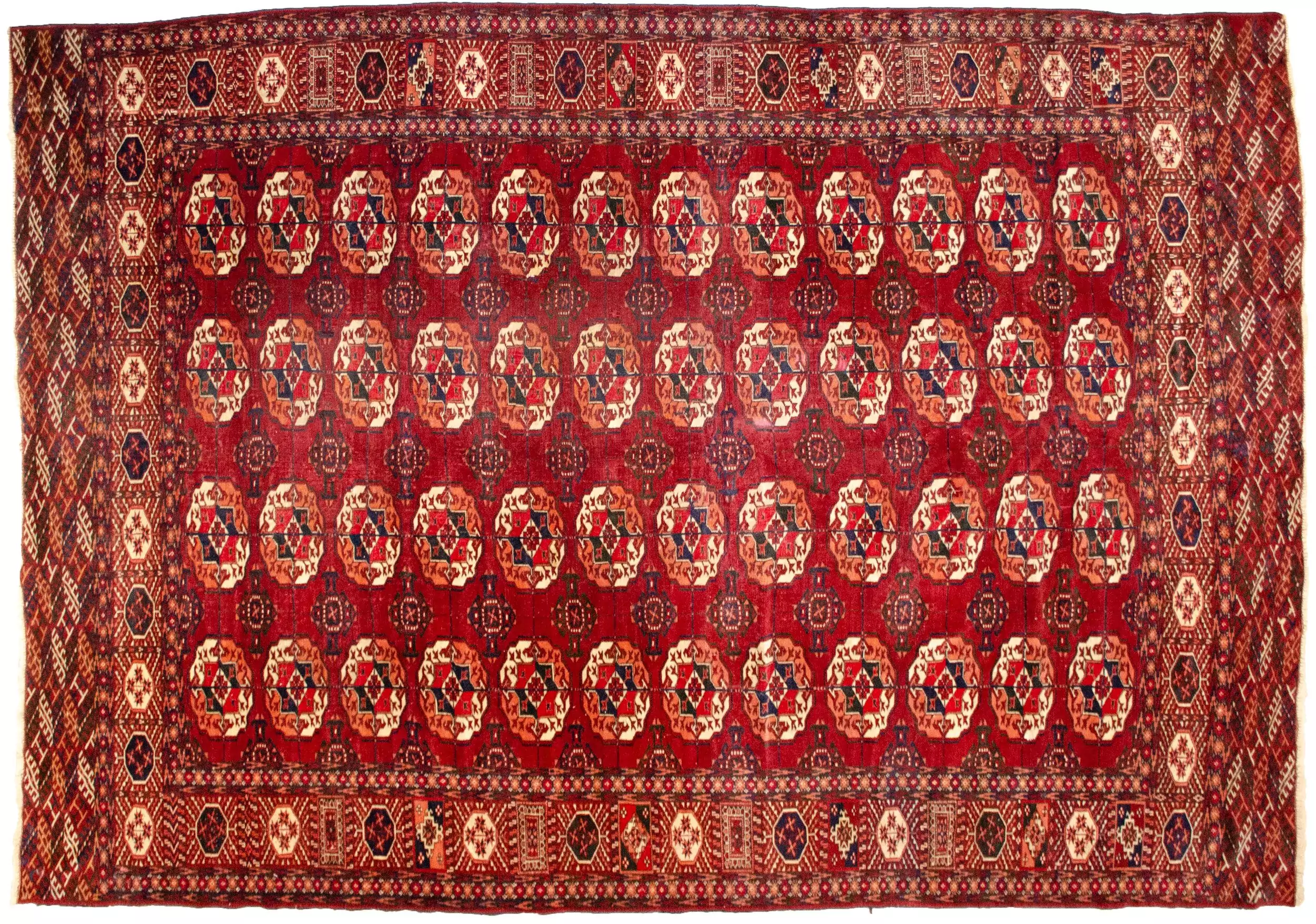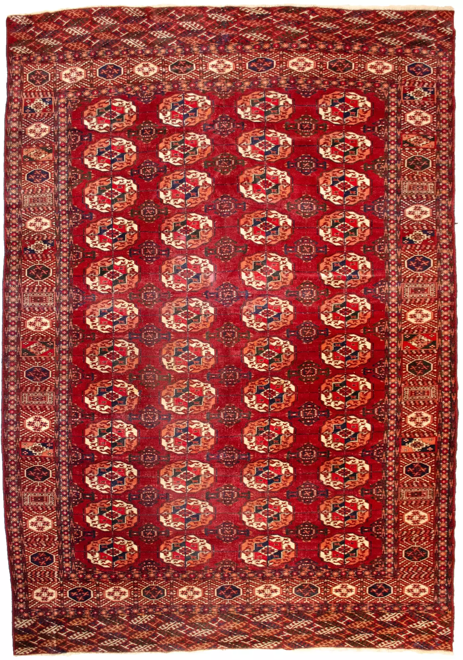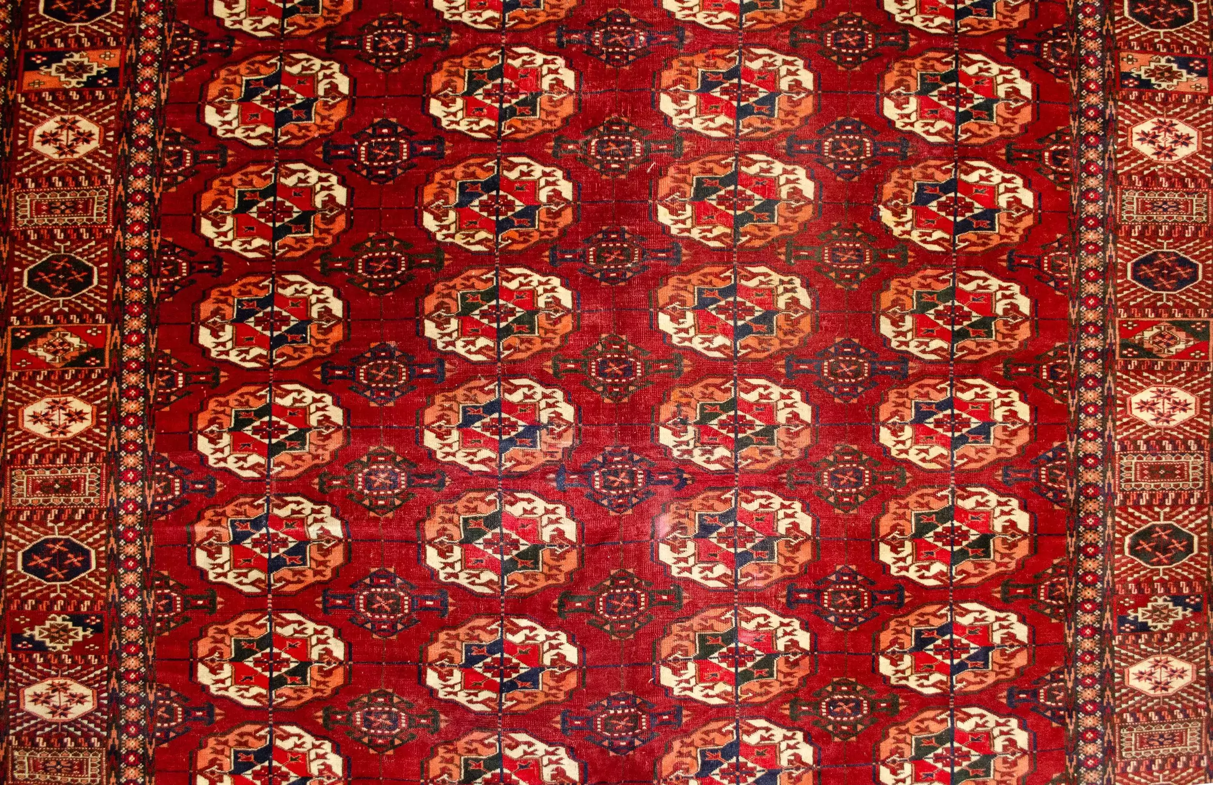 This antique Turkmen carpet is a timeless example of Central Asian weaving, showcasing a classic all-over design that lends itself beautifully to a wide range of interiors—from formal dining rooms to eclectic living spaces.