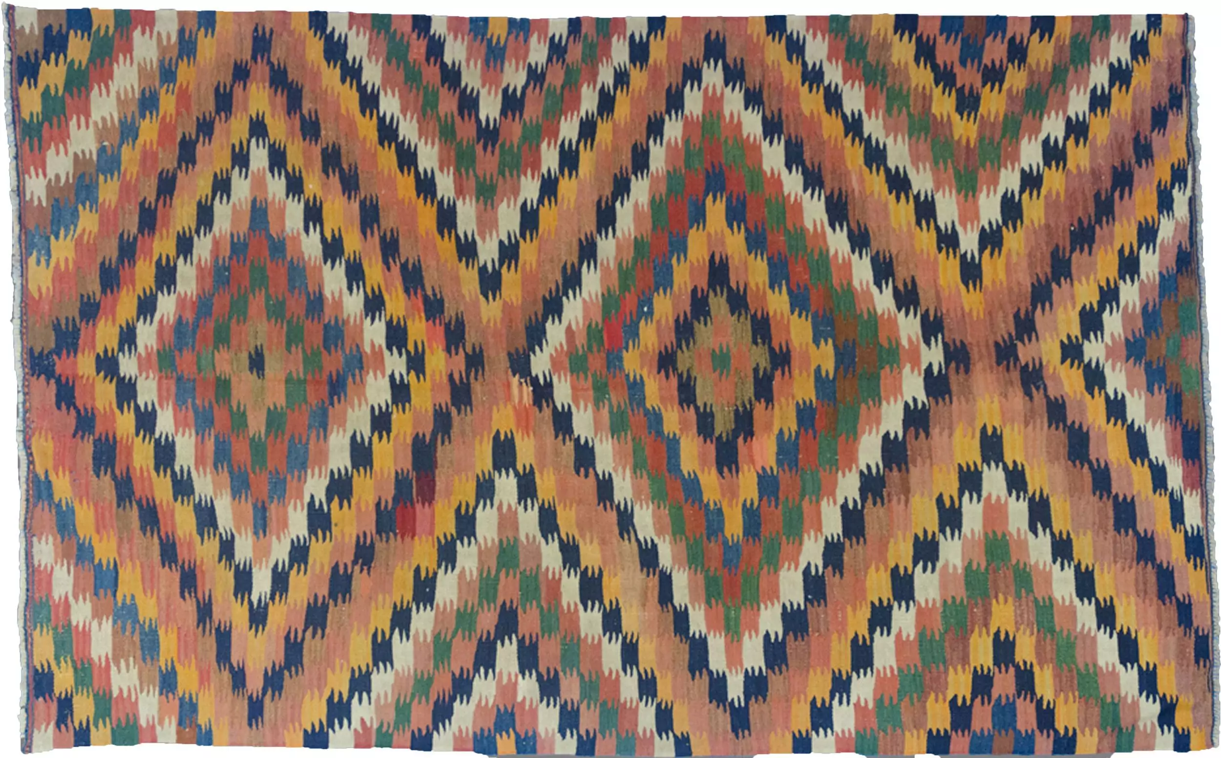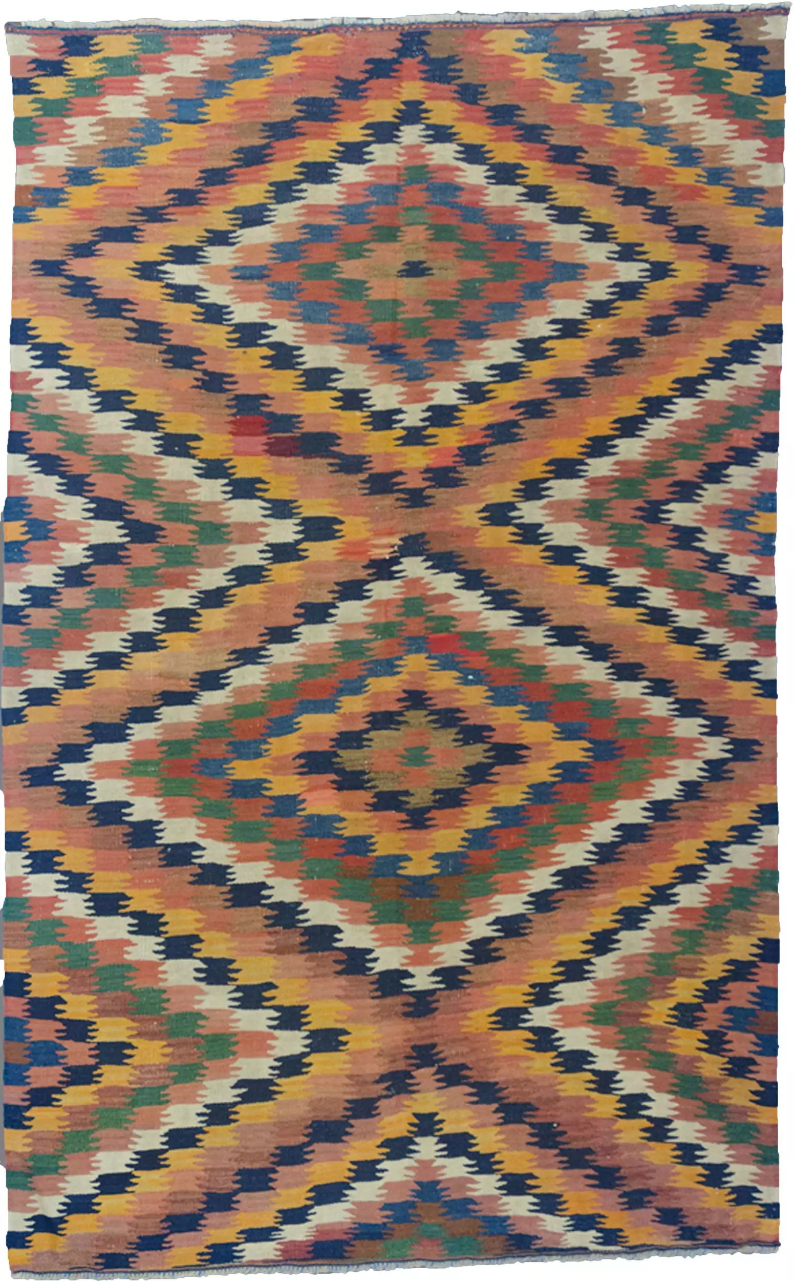 Vibrant Antique Varamin Kilim – Eye Dazzler Design from Central North Iran