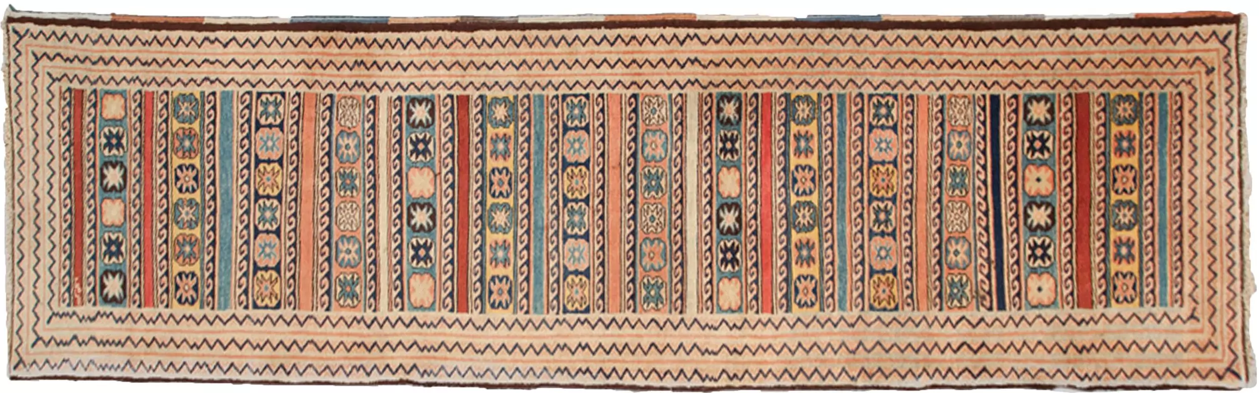 Handmade Vintage Shiraz Runner 1970s 350 x 136cm (11.5′ x 4.5′)