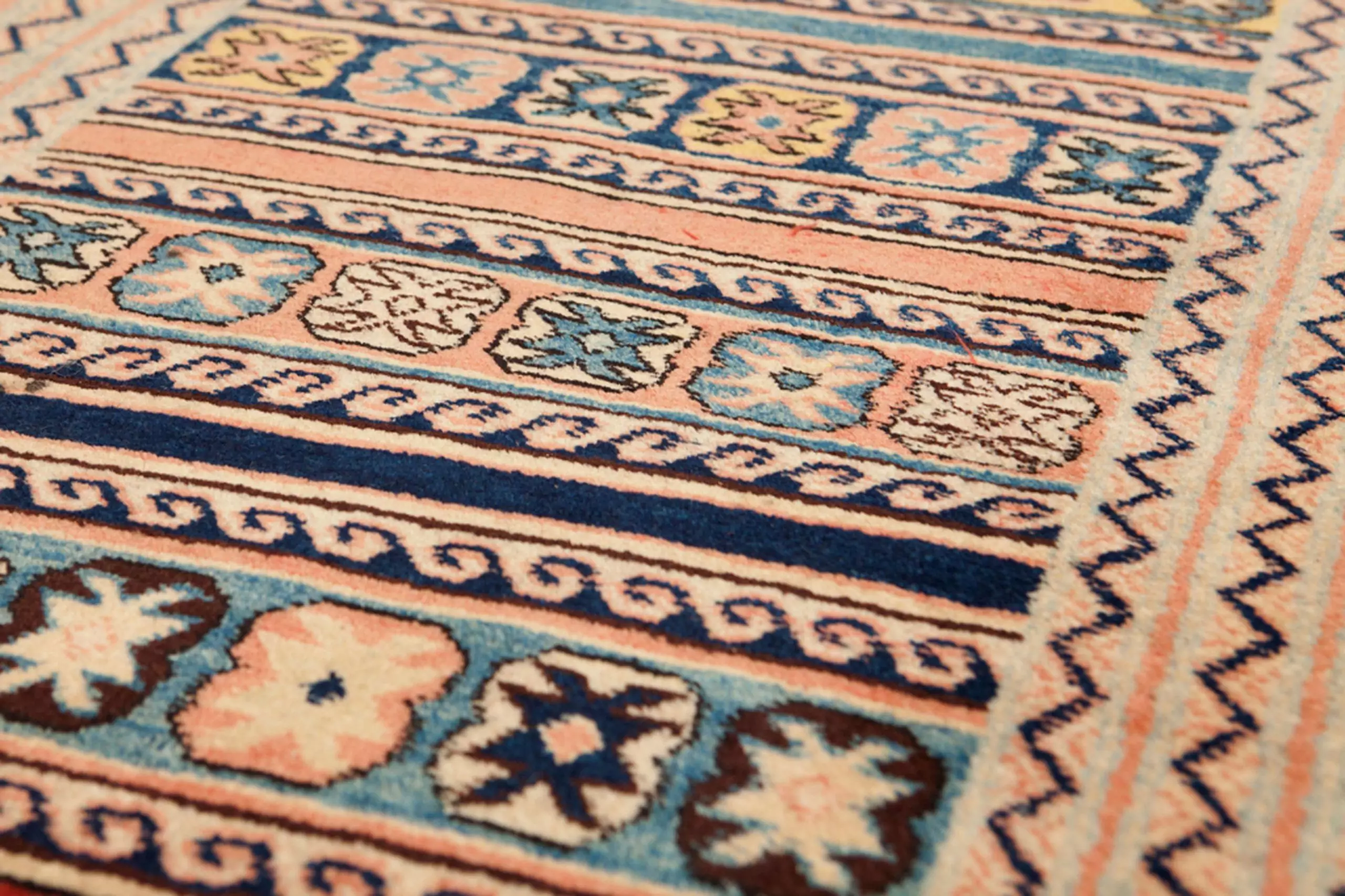 Distinctive Ardebil runner. This is one of our productions with the design based on a Qashqai kilim design, and only three of these were woven. They are made with natural dyes and very high-quality wool. It is a fine piece with good quality weaving ensuring good wearability.