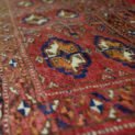 This charming vintage Turkmen Tobreh is a superb example of traditional weaving by the Iranian Turkmen tribes of Northeast Iran. Finely woven with high-quality wool, the piece is defined by its mature, deep red colour—a hallmark of Turkmen dyeing artistry—and features classic Turkmen gul motifs, emblematic of tribal identity and aesthetics.