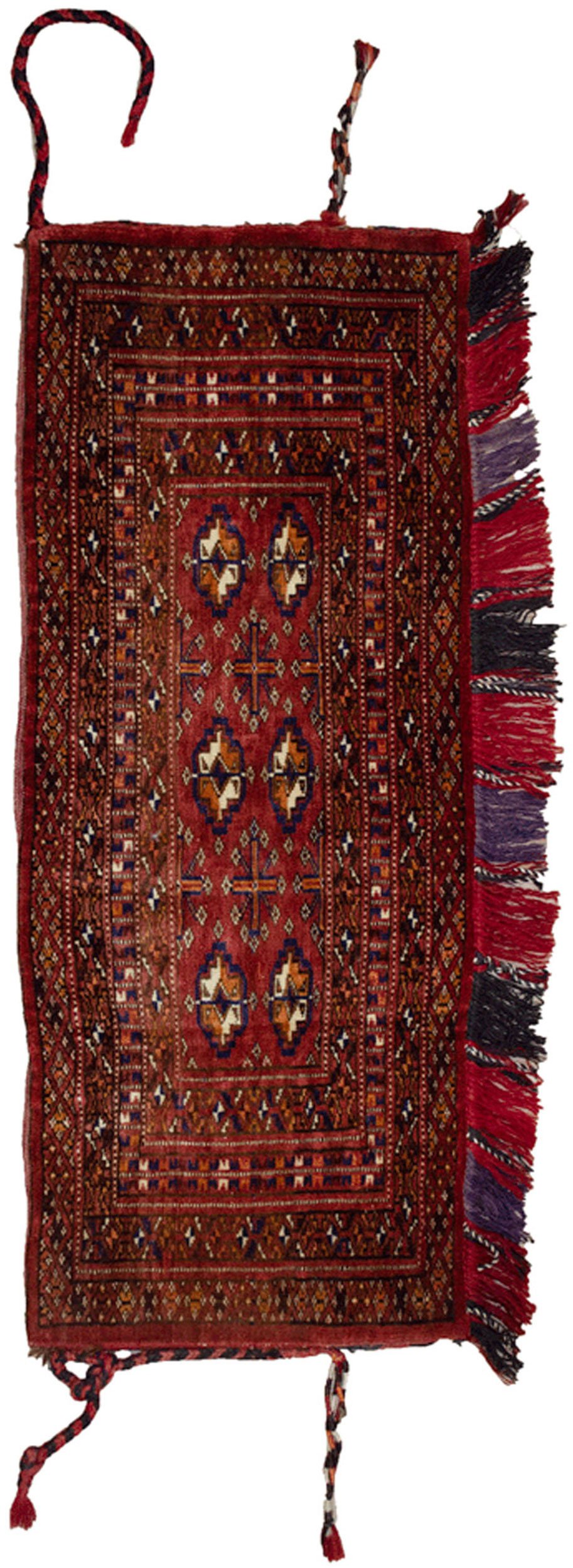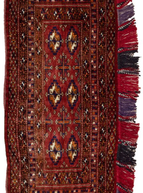 Whether displayed on a wall, draped over a piece of furniture, or simply enjoyed as part of a textile collection, this piece offers a tangible connection to Turkmen cultural heritage. Its refined construction and well-preserved condition make it a true collectible for anyone interested in tribal rugs, ethnographic textiles, or handcrafted décor.