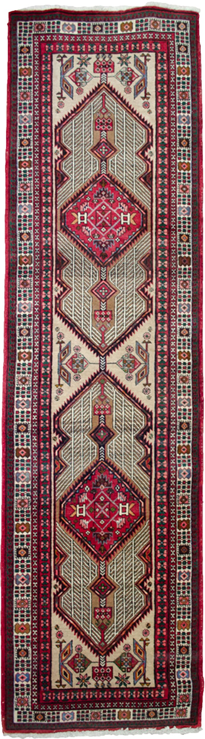 Introducing a classic vintage Sarab runner, expertly handwoven in the picturesque northwest region of Iran, an area celebrated for its rich weaving heritage and high-quality craftsmanship. This elegant runner embodies the timeless appeal of traditional Sarab rugs, featuring a balanced, symmetrical design that radiates understated sophistication.