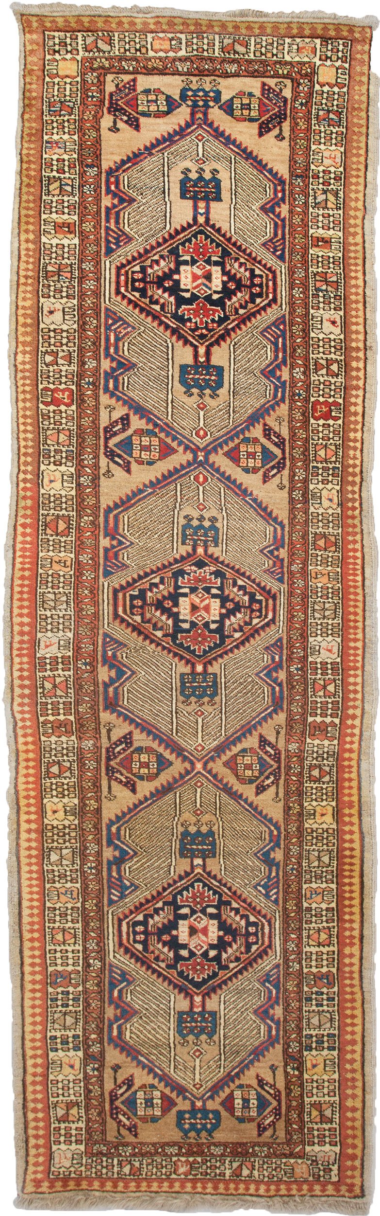 This decorative vintage Sarab runner is a rare and elegant find, celebrated for its durability, fine tribal craftsmanship, and soft neutral color palette. Handwoven in the historic town of Sarab, located in northwest Iran between the towering Bozquosh Mountains and Mount Sabalan, this runner embodies both rug-making heritage and natural beauty.