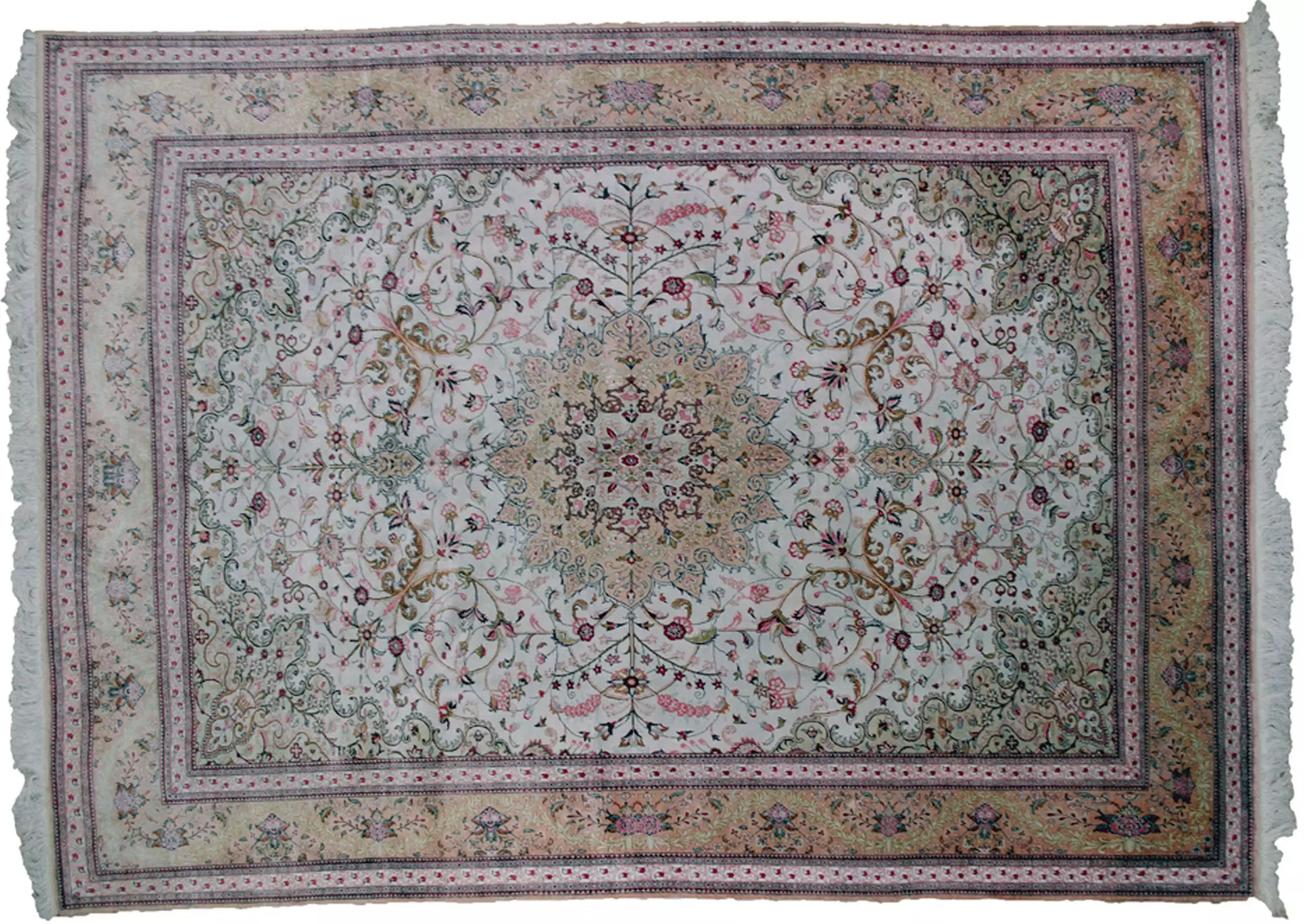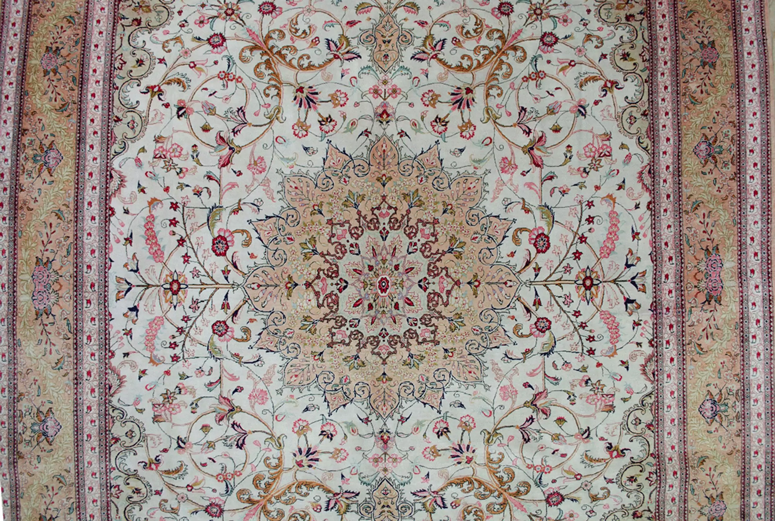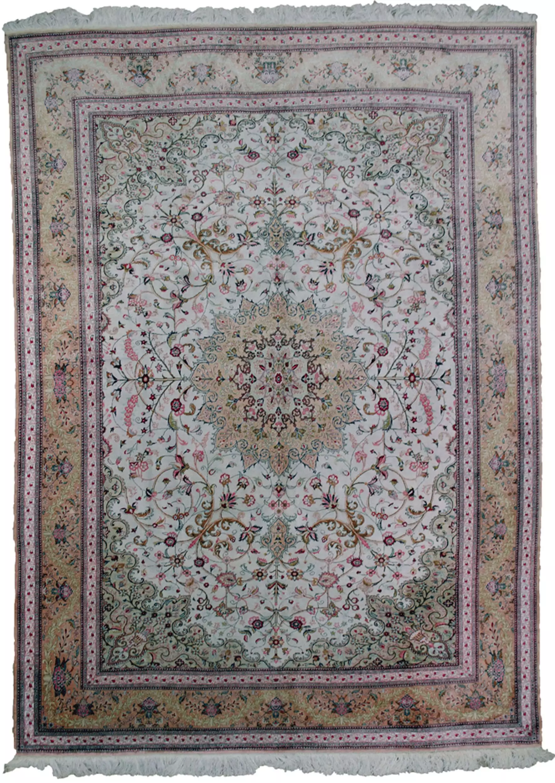 Ideal for collectors or discerning decorators, this Qum carpet offers a blend of aesthetic beauty, cultural heritage, and technical excellence. Whether placed in a formal setting, bedroom, or gallery space, it promises to be an eye-catching centrepiece that brings warmth and sophistication.