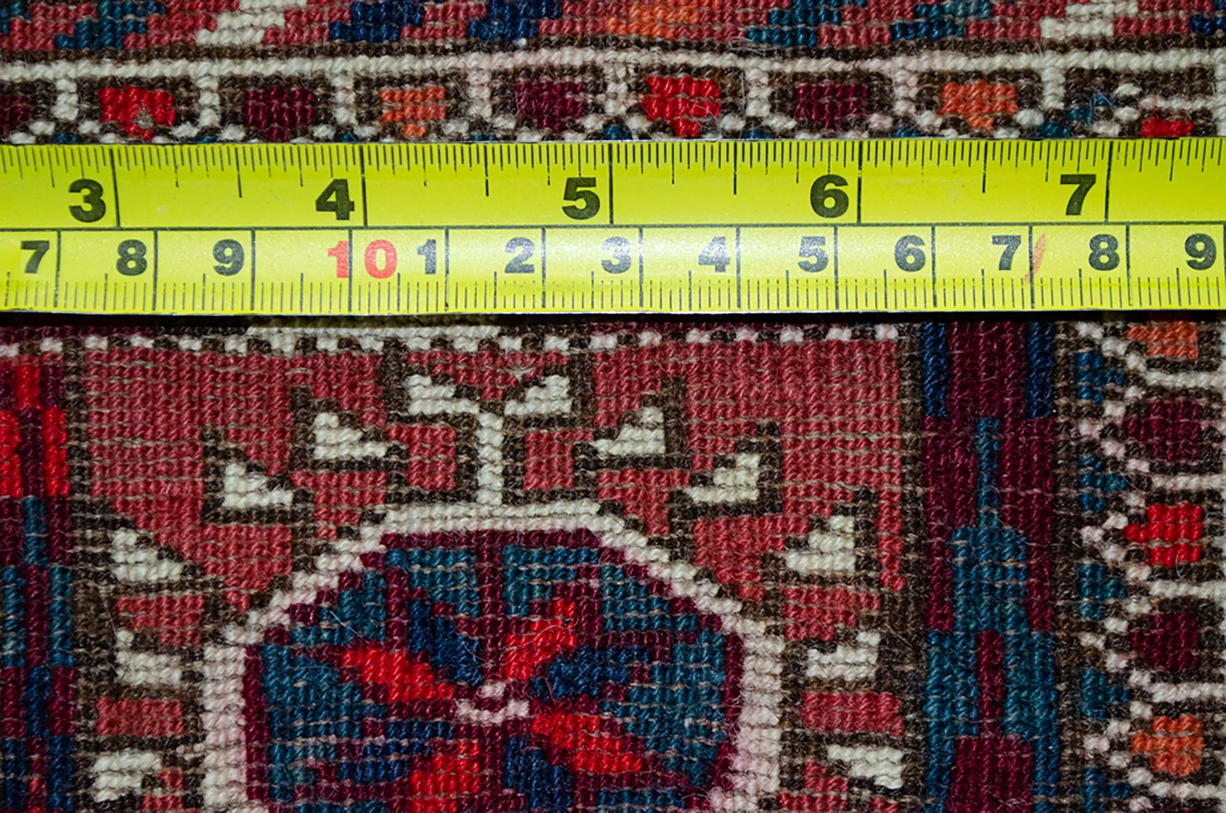 The rich red field, softened with age, brings warmth and depth, while the fine wool pile and traditional construction methods ensure both durability and comfort underfoot.