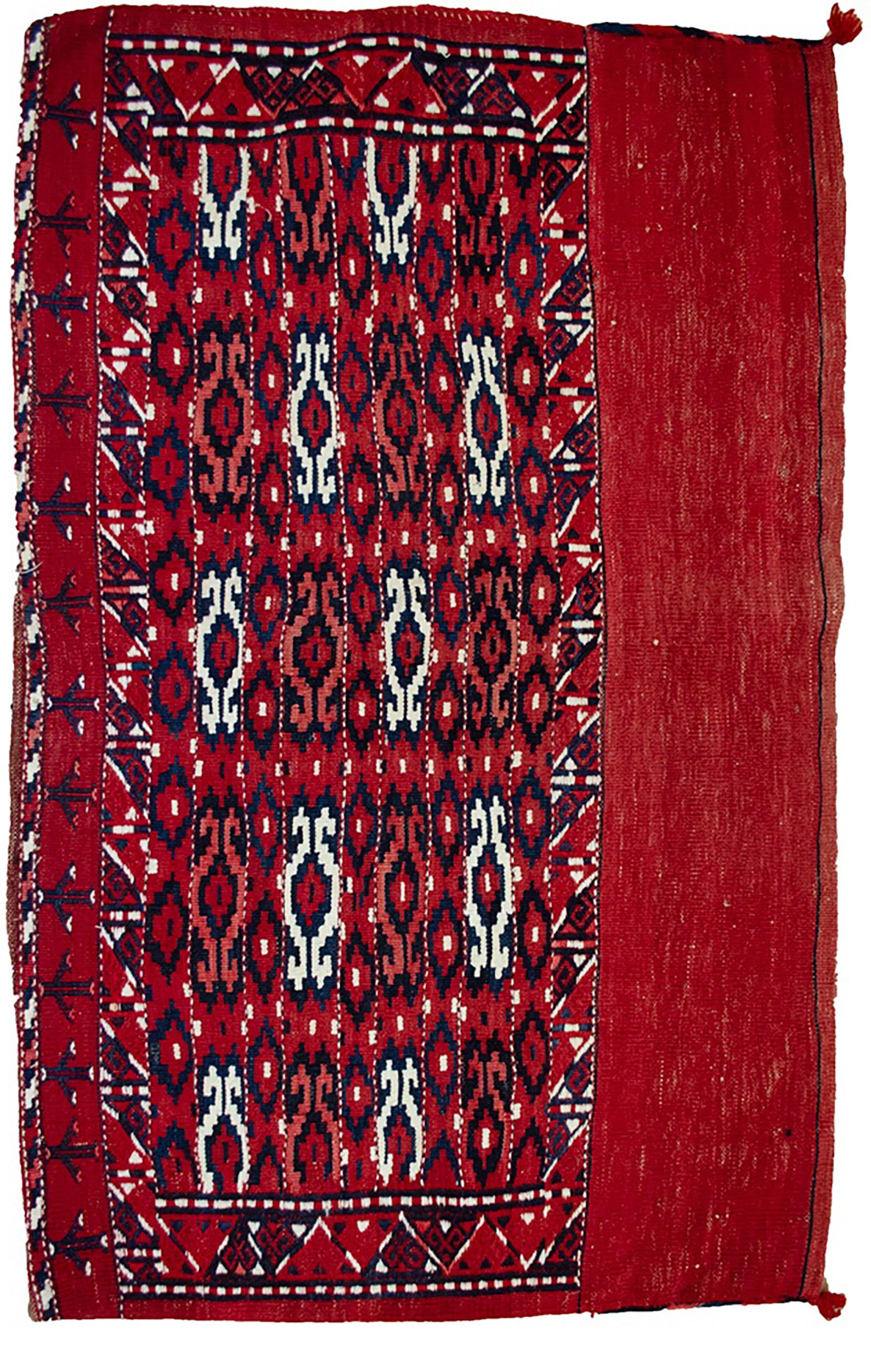 This exciting vintage Turkman Tobreh bag from Northeast Iran is a bold and lively example of nomadic textile artistry. With its deep red and blue palette and a funky, almost contemporary design, this piece defies expectations of traditional tribal weaving.