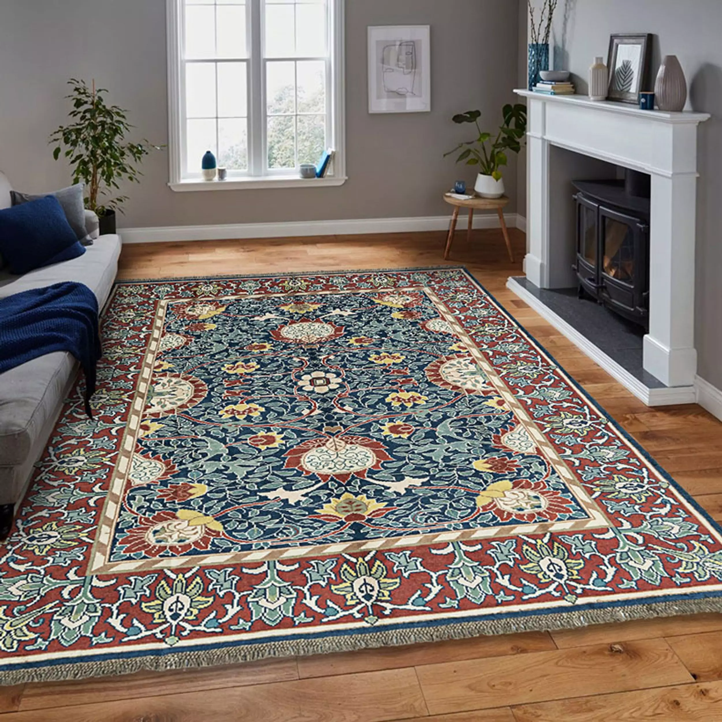 Crafted from high-quality wool and dyed with natural pigments, this rug promises both visual richness and lasting durability. Every detail—from the curvature of the vines to the symmetry of the blooms—speaks to the care and skill of the weavers, and to our dedication to preserving the spirit of Morris’s original vision.