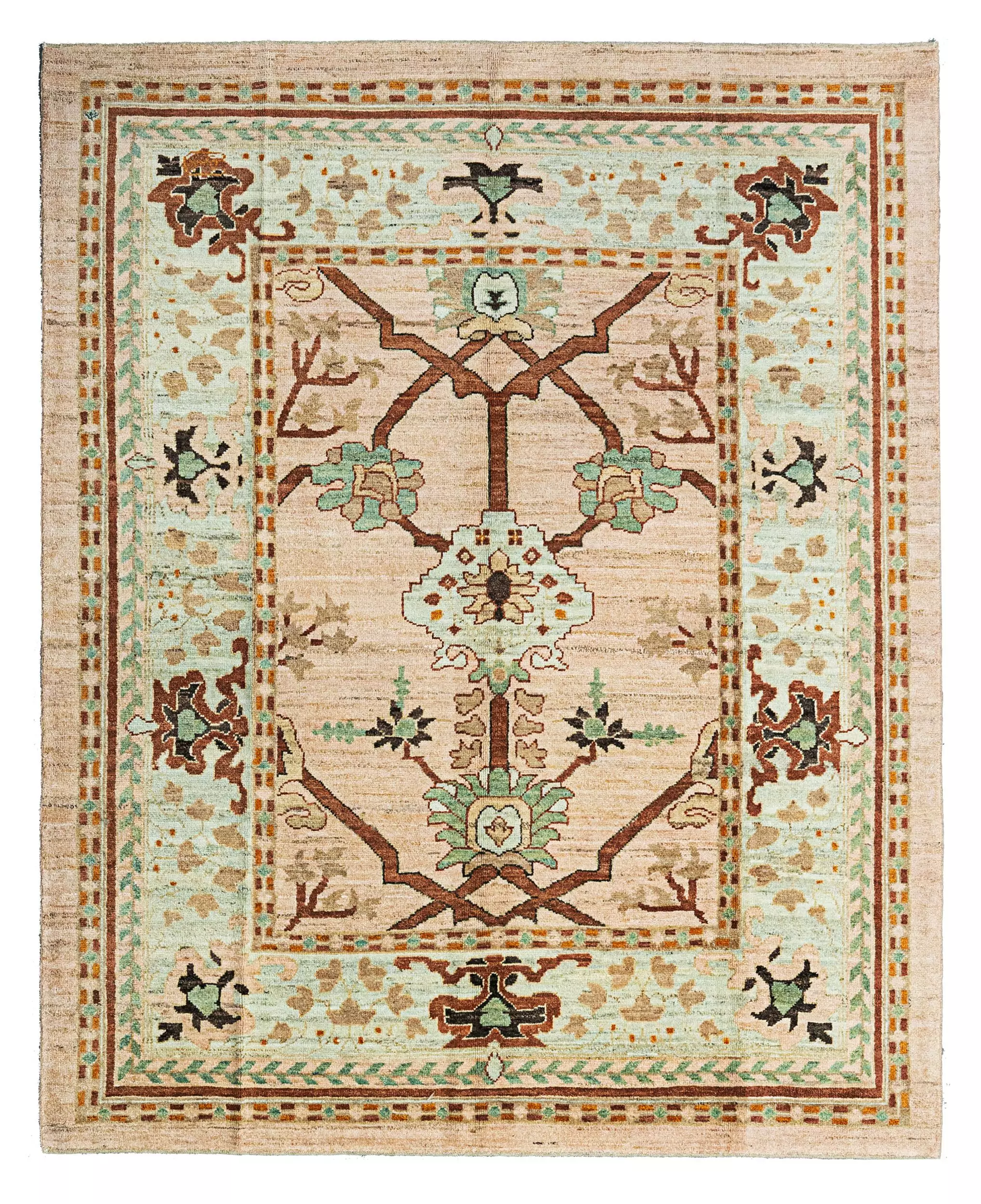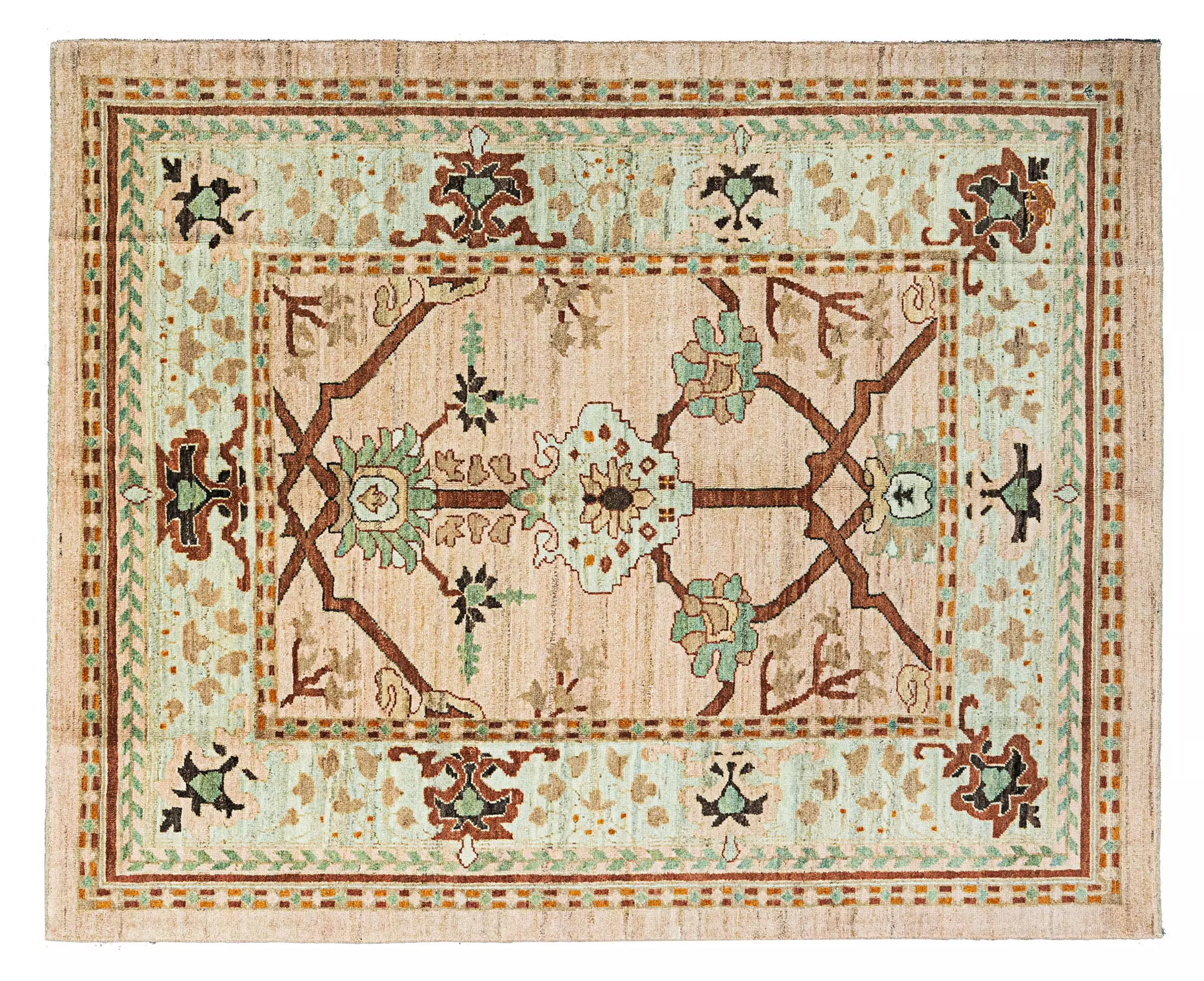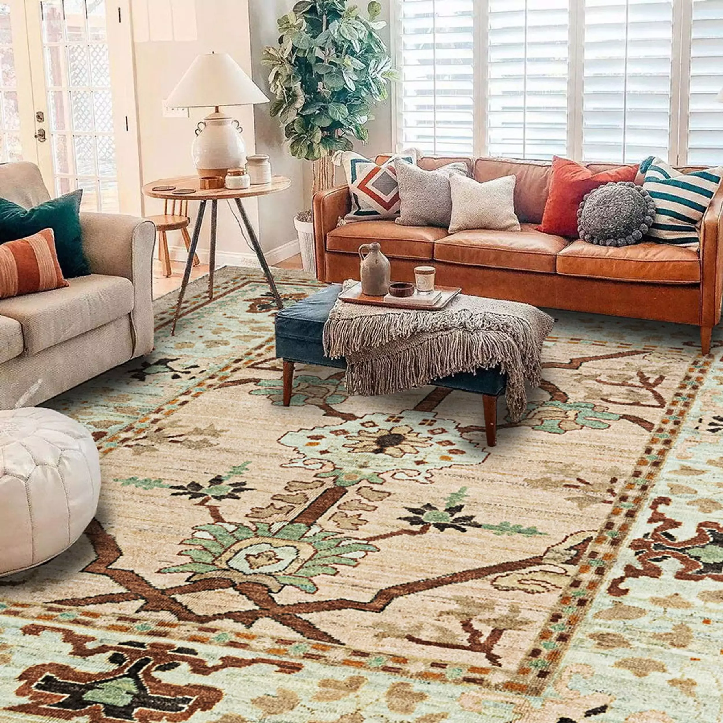 This stunning hand-knotted Ushak carpet is a masterful blend of Ottoman tradition and Donegal-inspired elegance, crafted with an eye for detail and a heart for heritage. Woven using high-quality handspun wool and dyed with natural pigments, the rug showcases depth, softness, and enduring vibrancy—an heirloom-quality piece built to be cherished for generations.