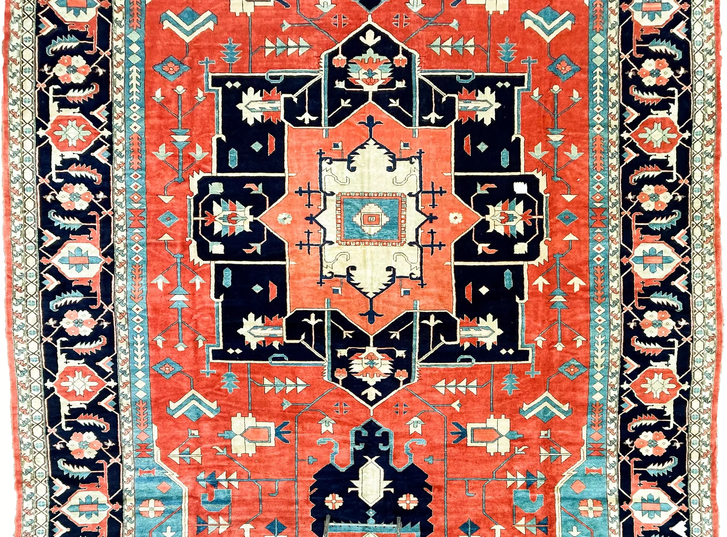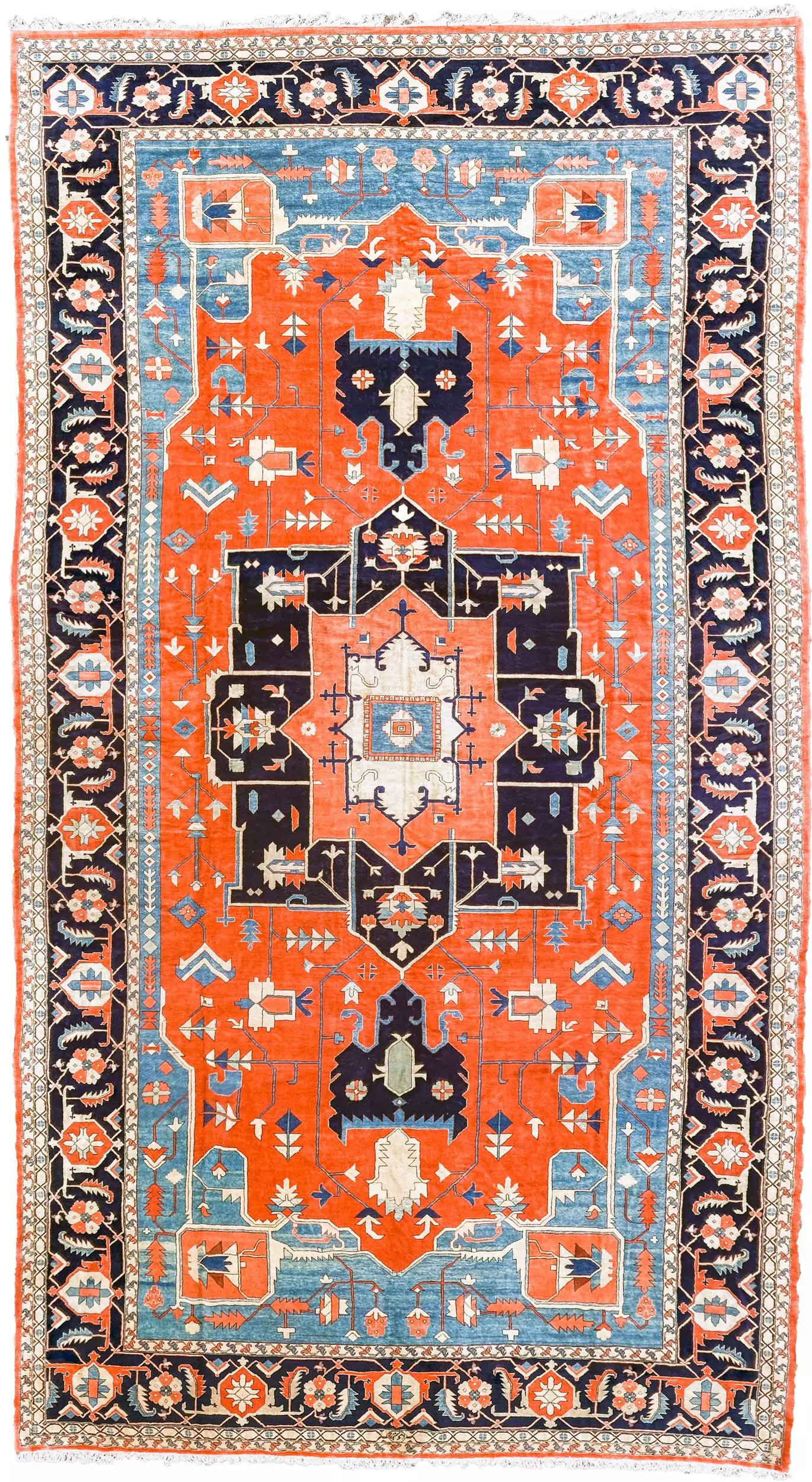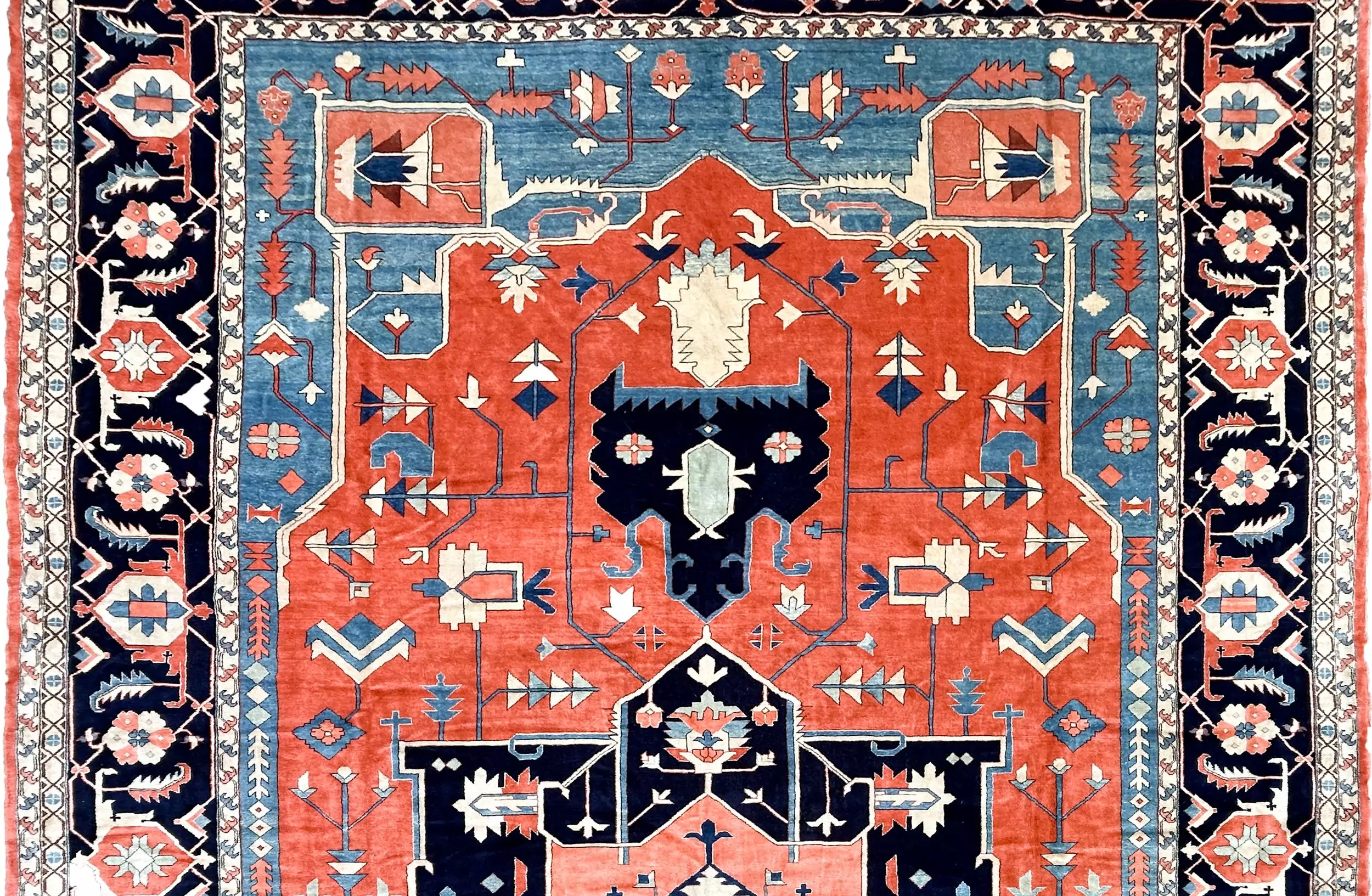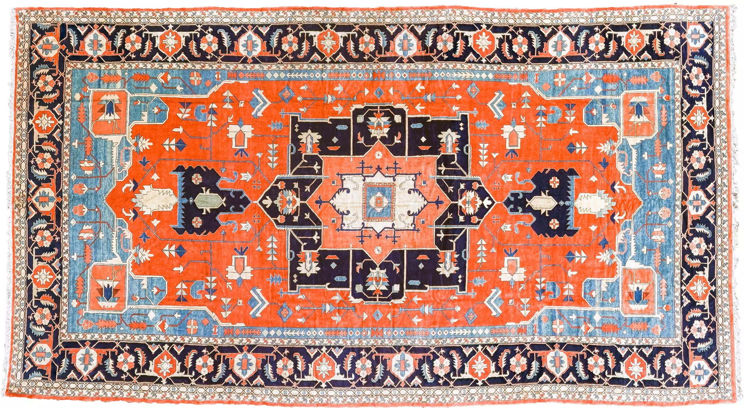 Large Hand-Knotted Wool Carpet | Terracotta & Navy Medallion Design
