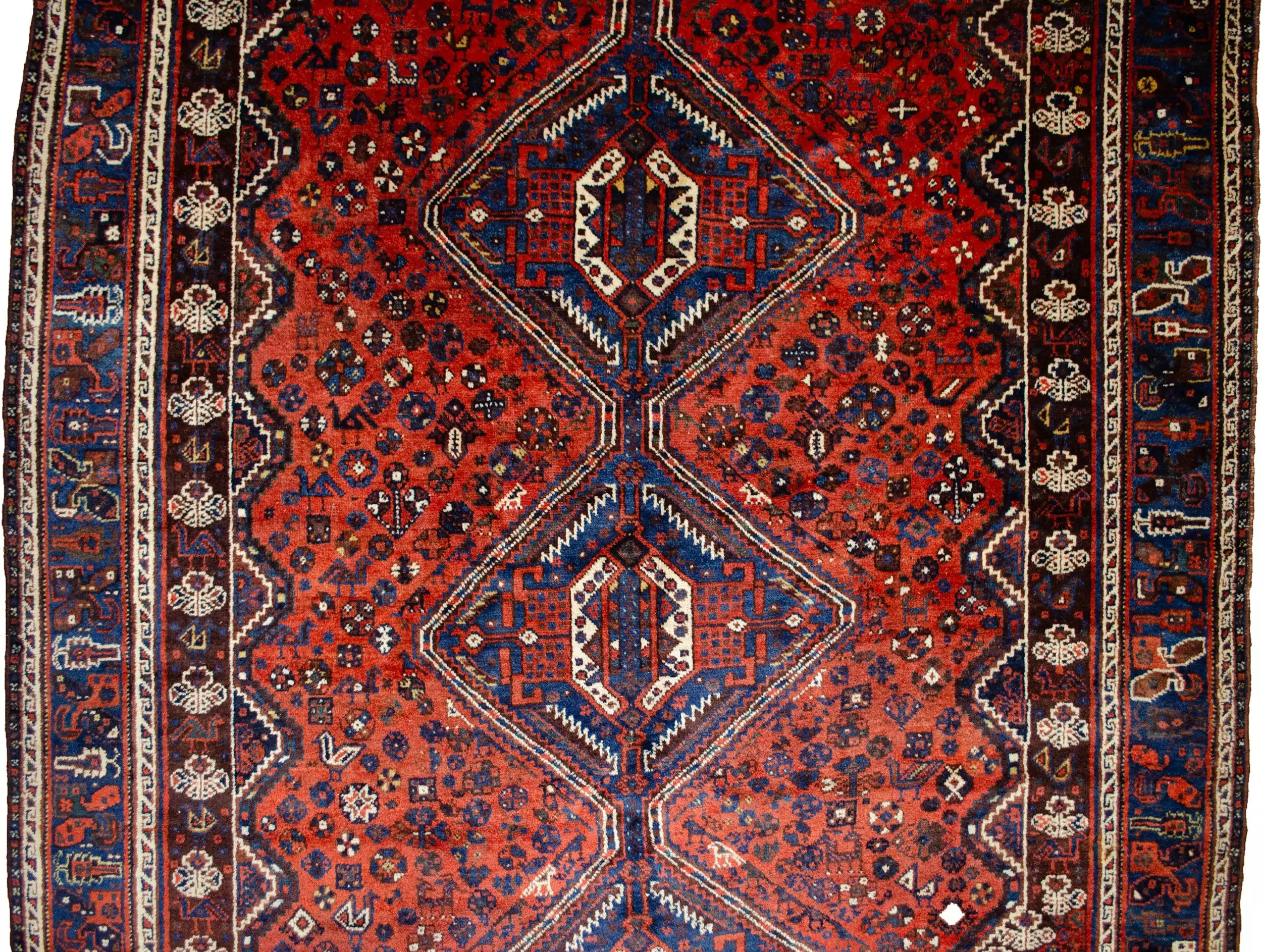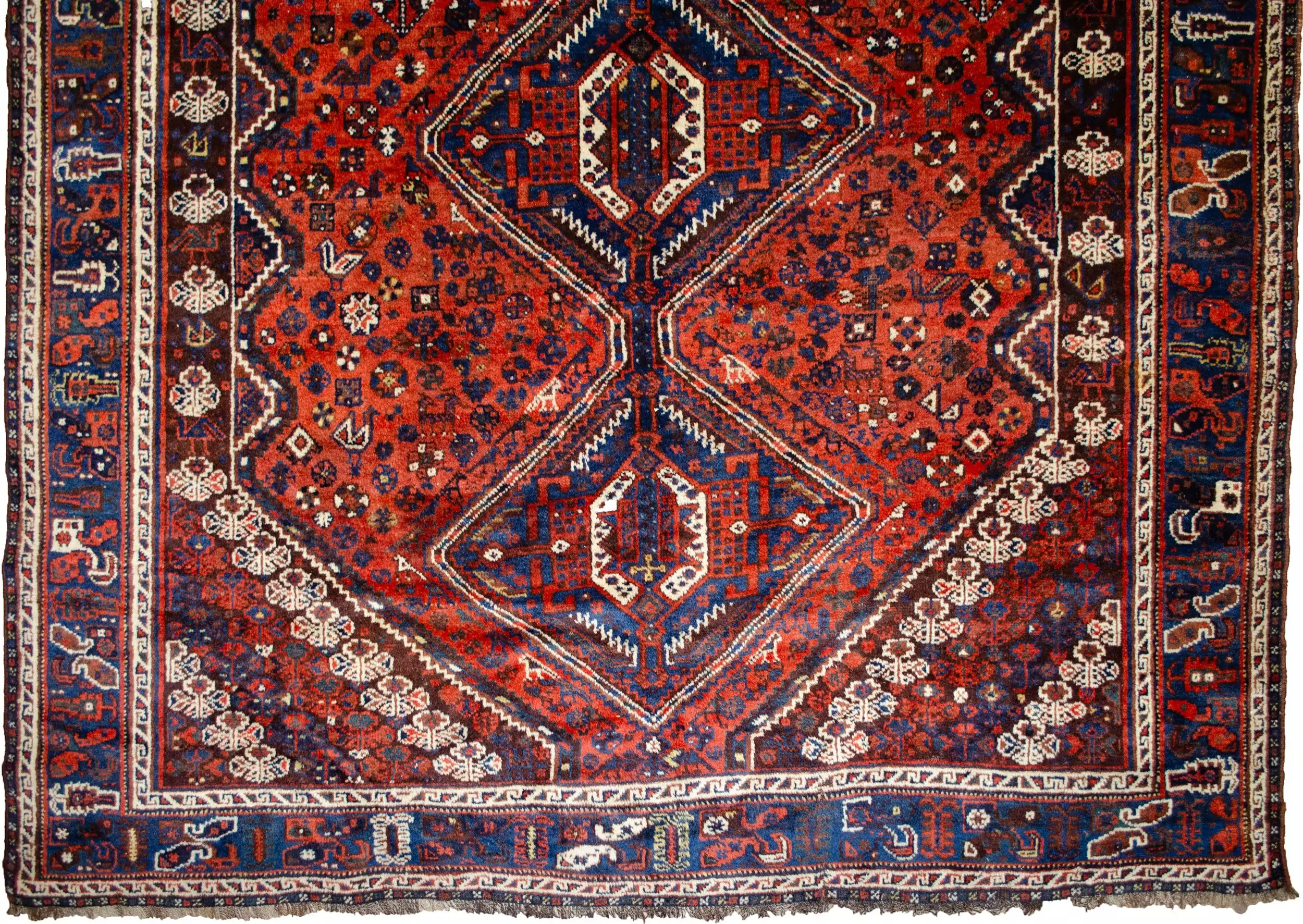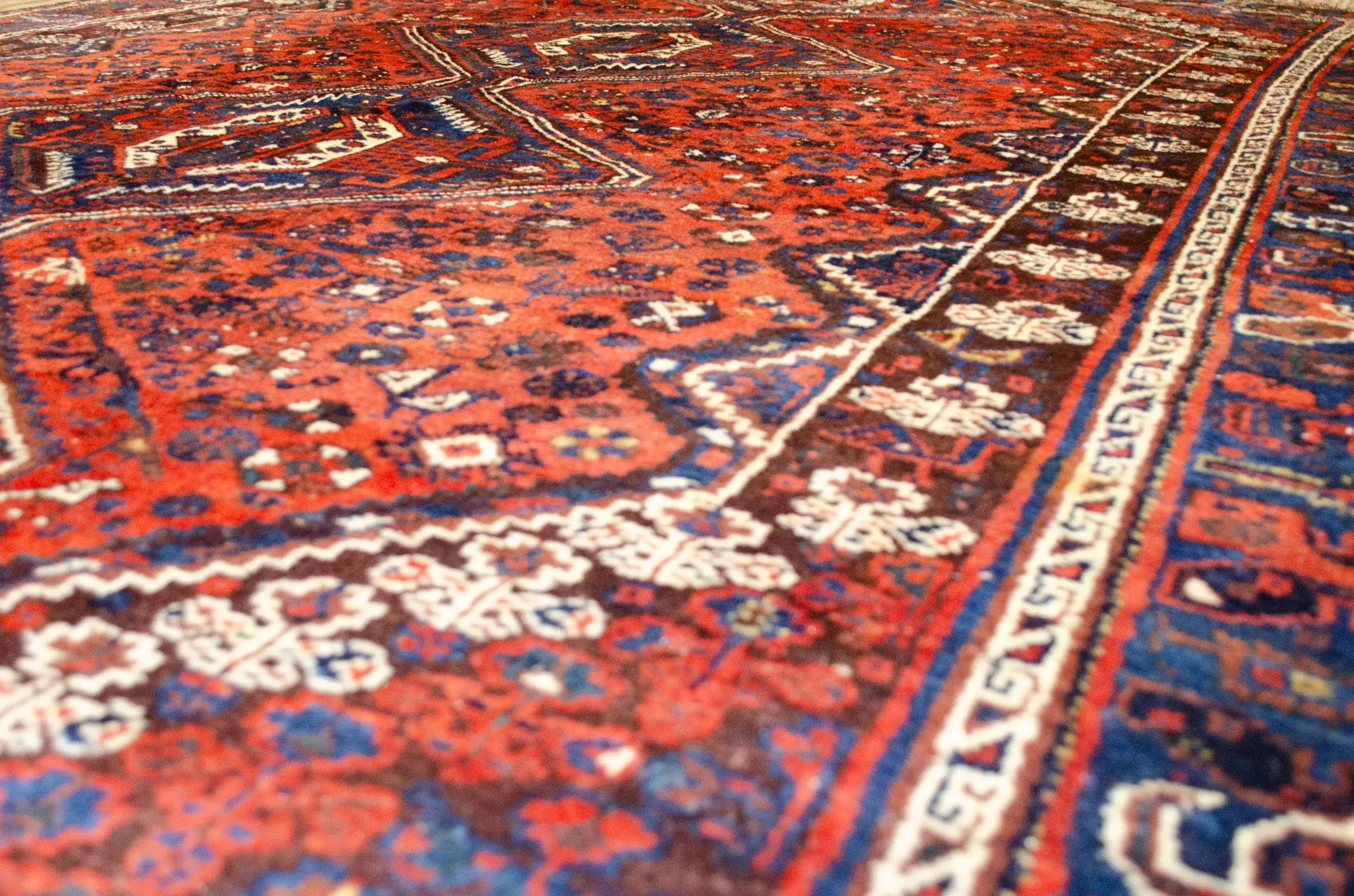 Whether placed in a living room, library, or collector’s gallery, this Khamseh rug serves as both a decorative masterpiece and a vibrant focal point. Its depth of color, symbolic imagery, and cultural roots make it a piece that invites admiration and conversation.