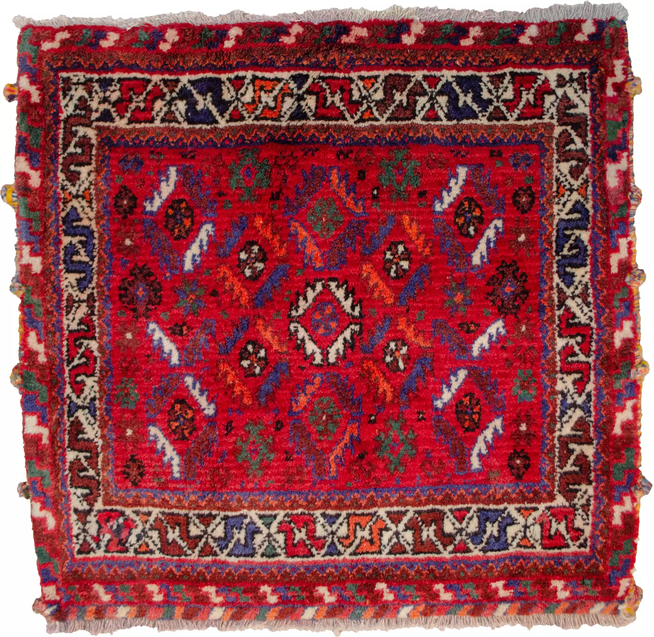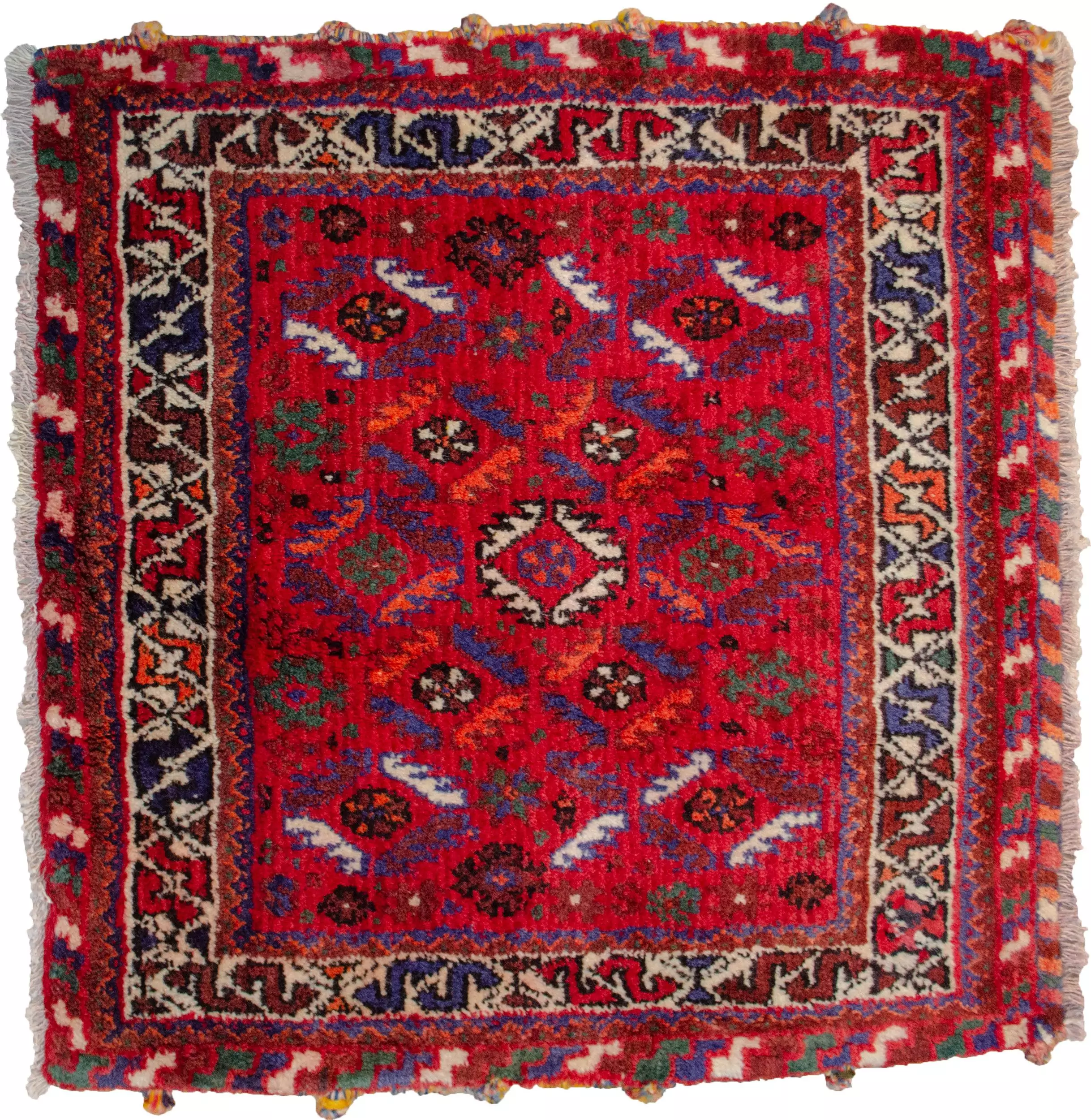 Framing the design is a soft cream border, providing contrast and definition, while complementing the red field beautifully. The wool is soft and naturally shiny, giving the bag a rich texture and a subtle lustre that enhances its appeal.