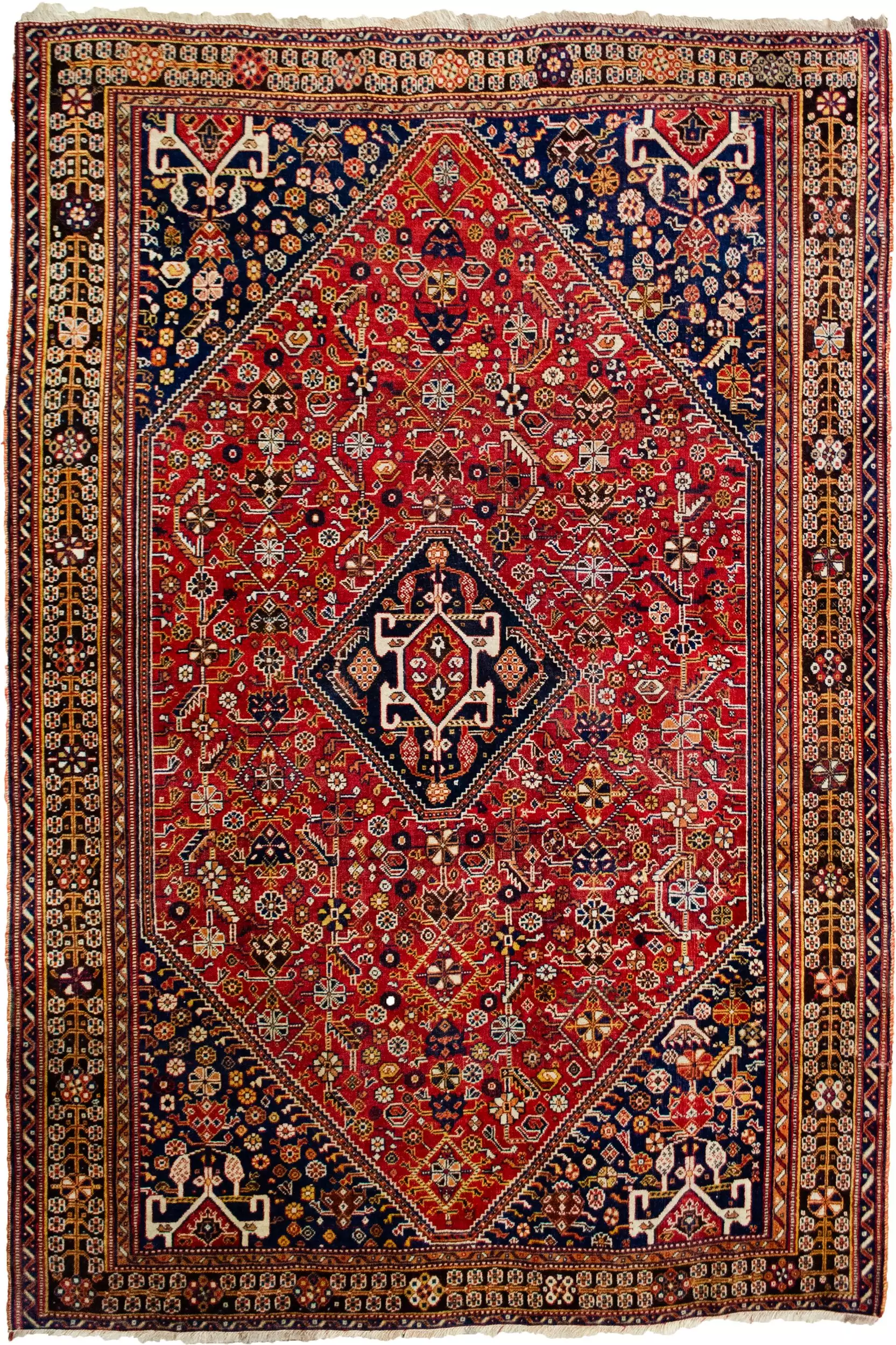 Handmade Rare Vintage Shiraz Rug 1940s 165 x 113cm (5.4′ x 3.7′)