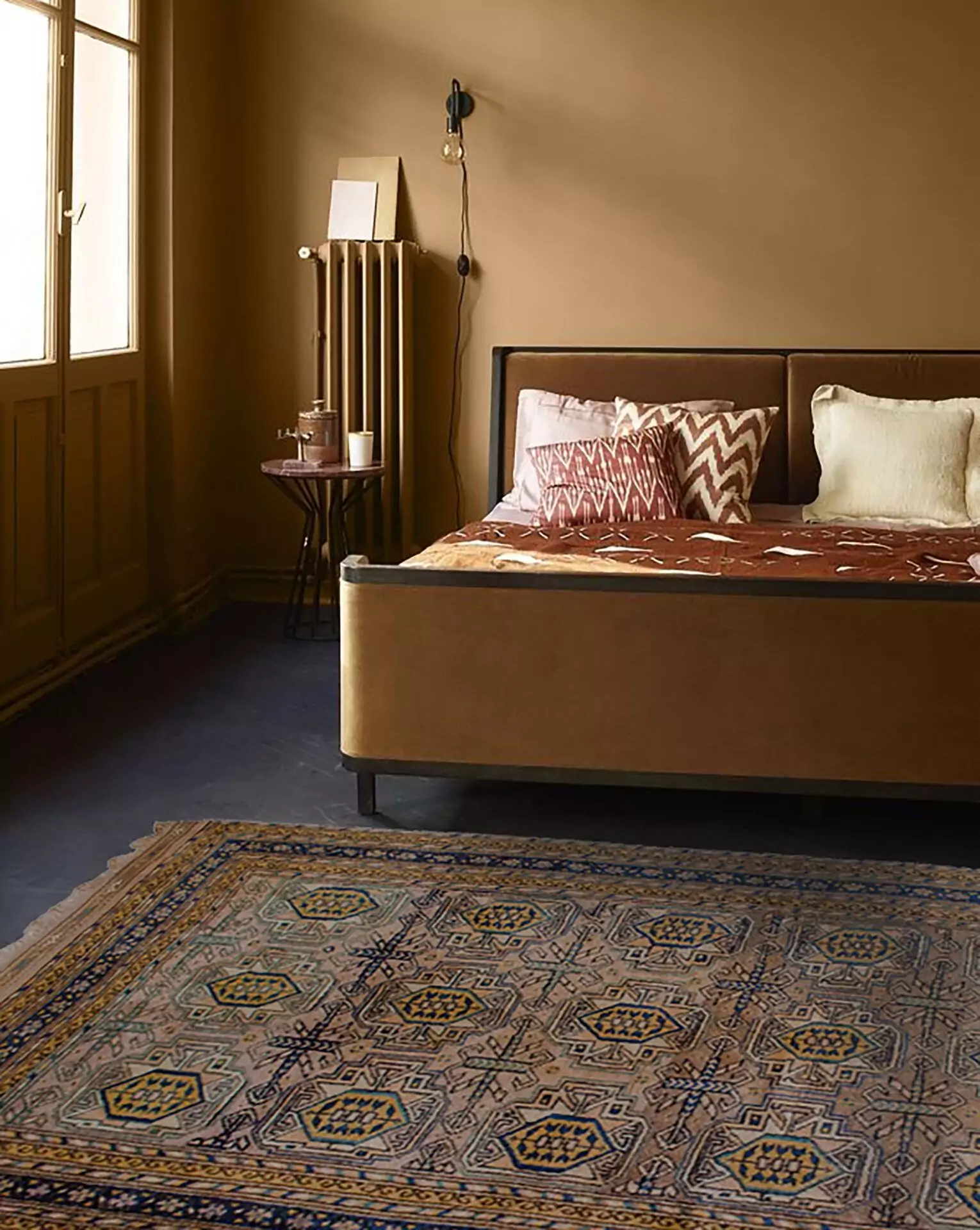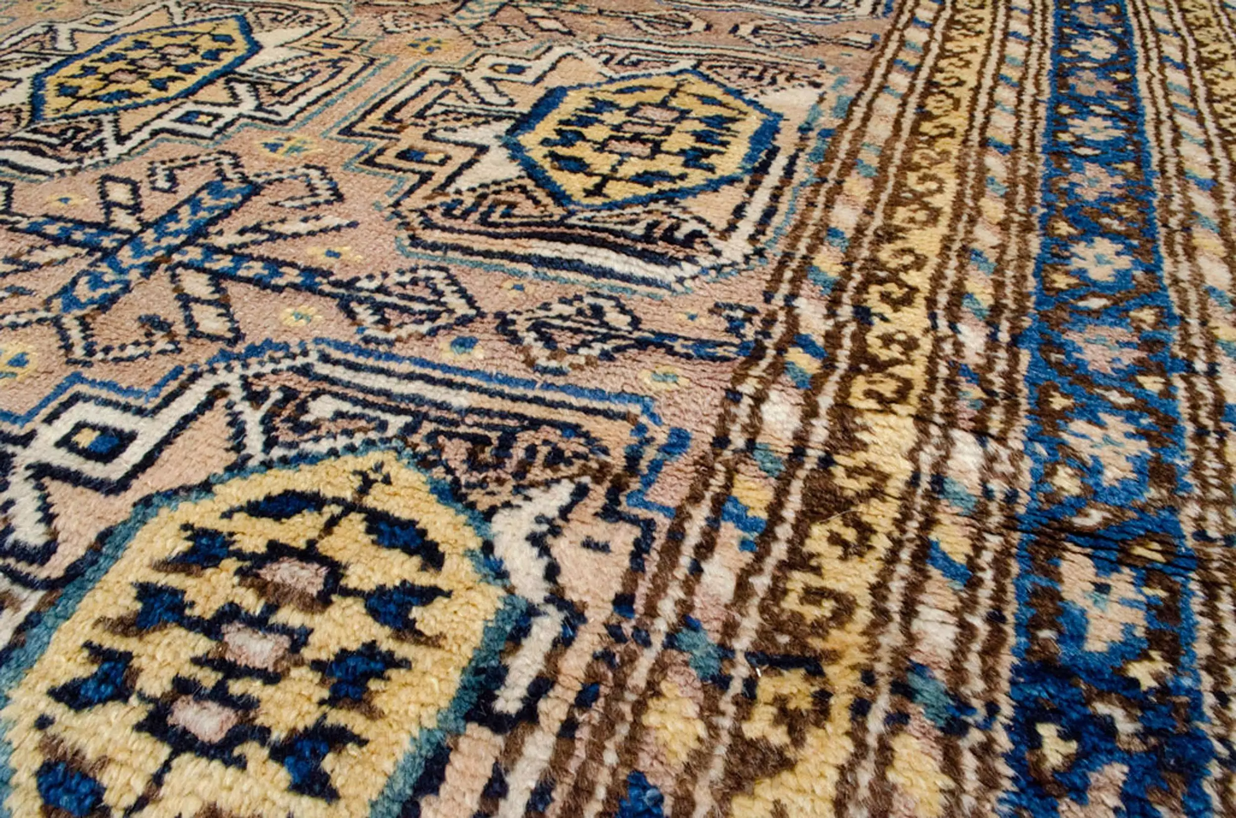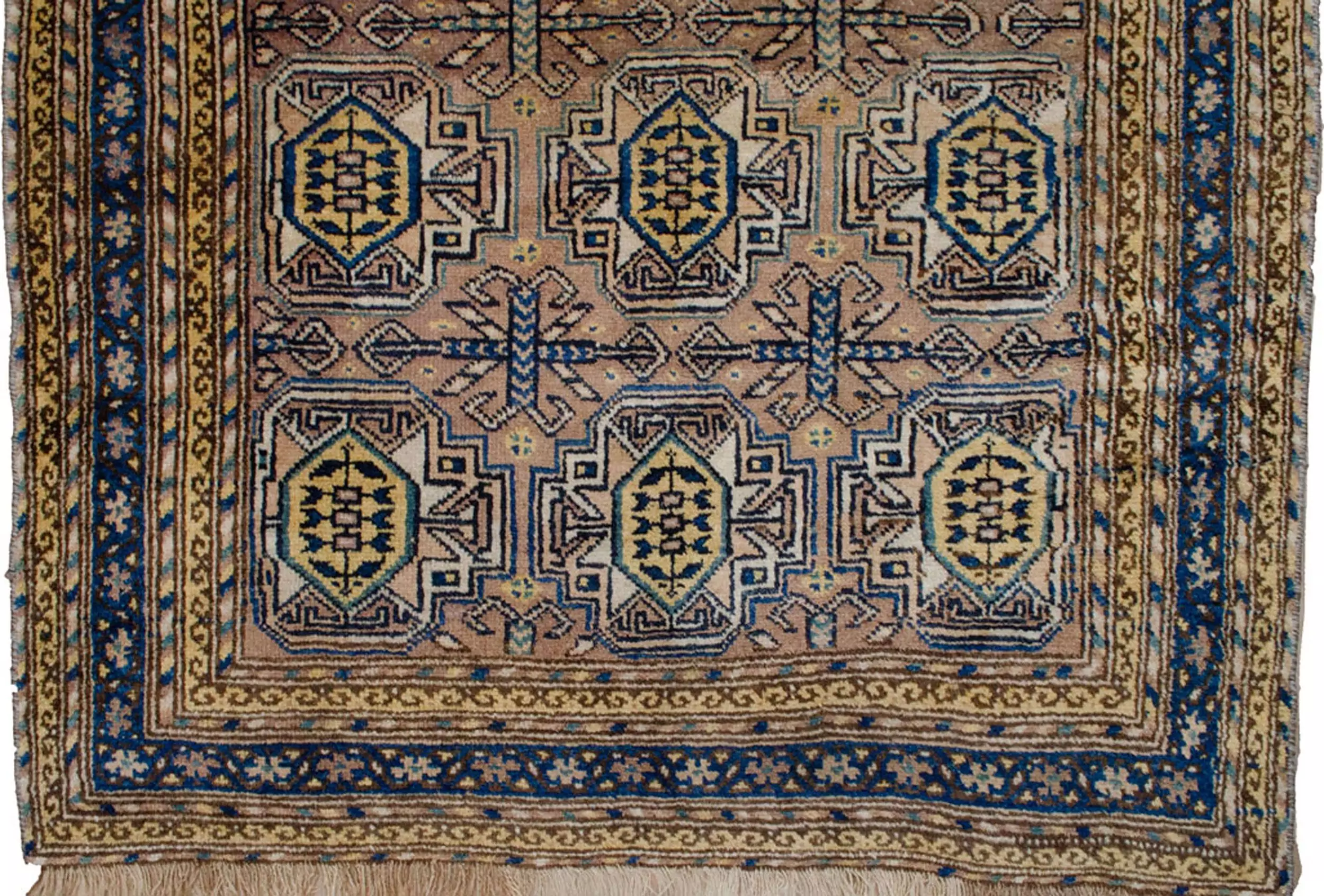 Old Qoochan carpets are becoming increasingly rare, making this beautifully preserved piece a true find for collectors and design enthusiasts alike. Known for their distinctive style and durable structure, Qoochan rugs hail from the northeastern regions of Iran, where Kurdish and Turkmen influences often merge in the weaving traditions.