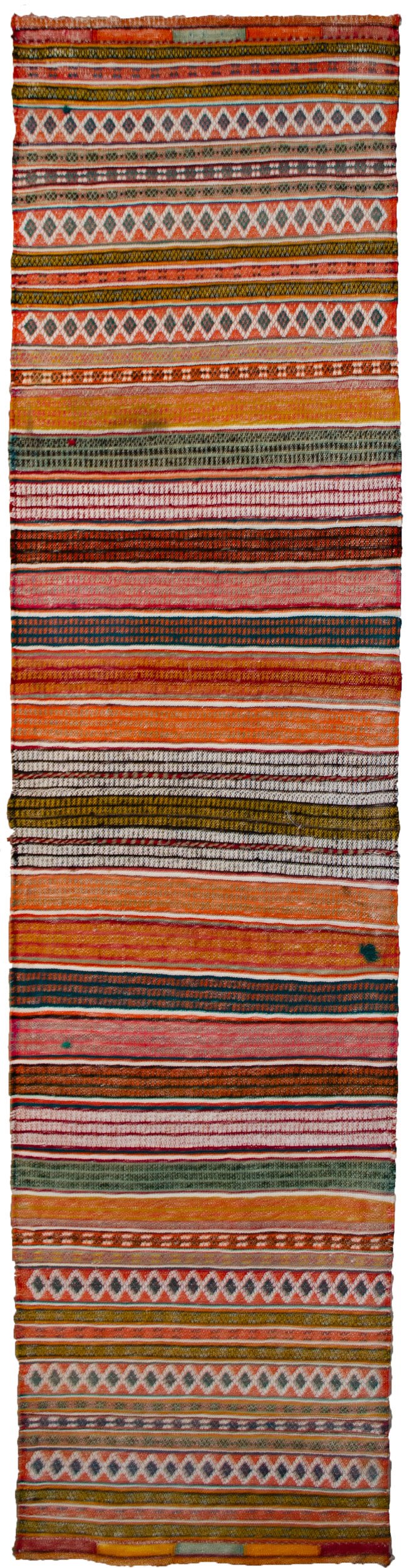 Originally woven for personal use by Qashqai tribes in southern Iran, this piece now functions beautifully as a hallway or table runner, while showcasing the bold colours and meaningful motifs typical of tribal weaving traditions.