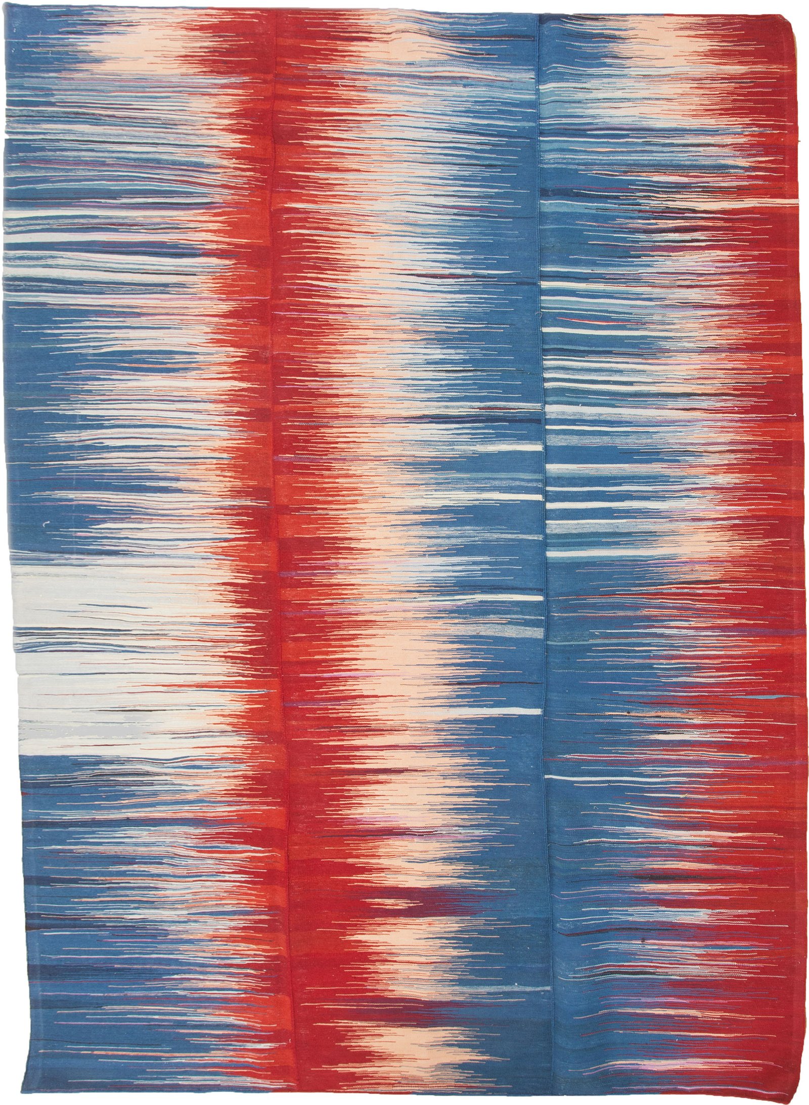 Unlike the larger-scale production of carpets, kilim and jijim weaving is a niche craft with a dwindling number of skilled artisans. Only a select few master weavers possess the expertise to achieve this level of finesse. The result is an exceptionally fine weave, allowing for crisp lines, perfect symmetry, and vibrant color interplay that feels like viewing a contemporary painting on fabric.
