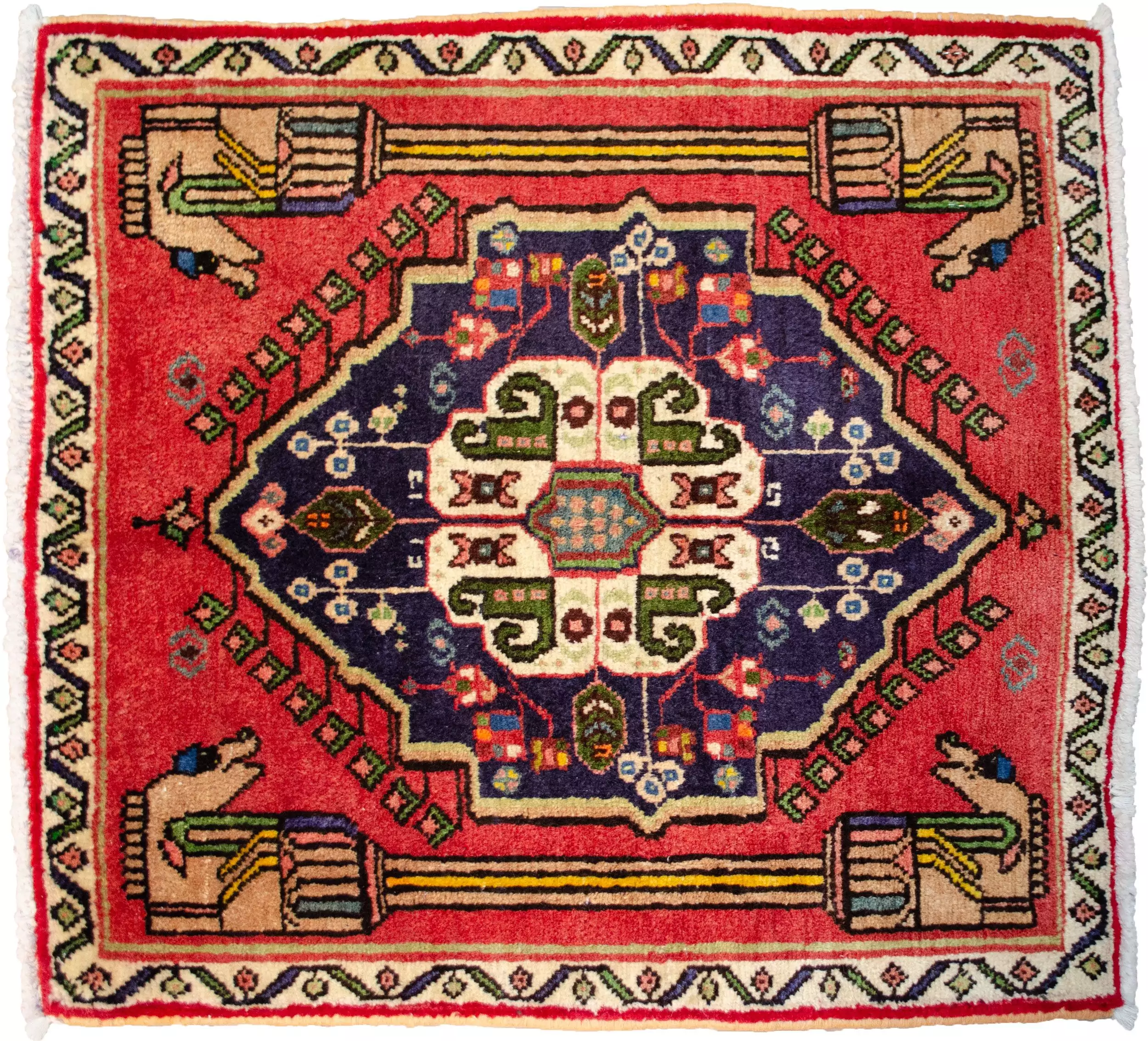 This striking Qashqai tribal rug showcases one of the most iconic and symbolic motifs in Persian weaving—a design inspired by the Persepolis palace pillars, complete with stylised horses’ heads at either end. The motif pays homage to Iran’s ancient architectural heritage and reflects the enduring cultural pride of the Qashqai nomads.