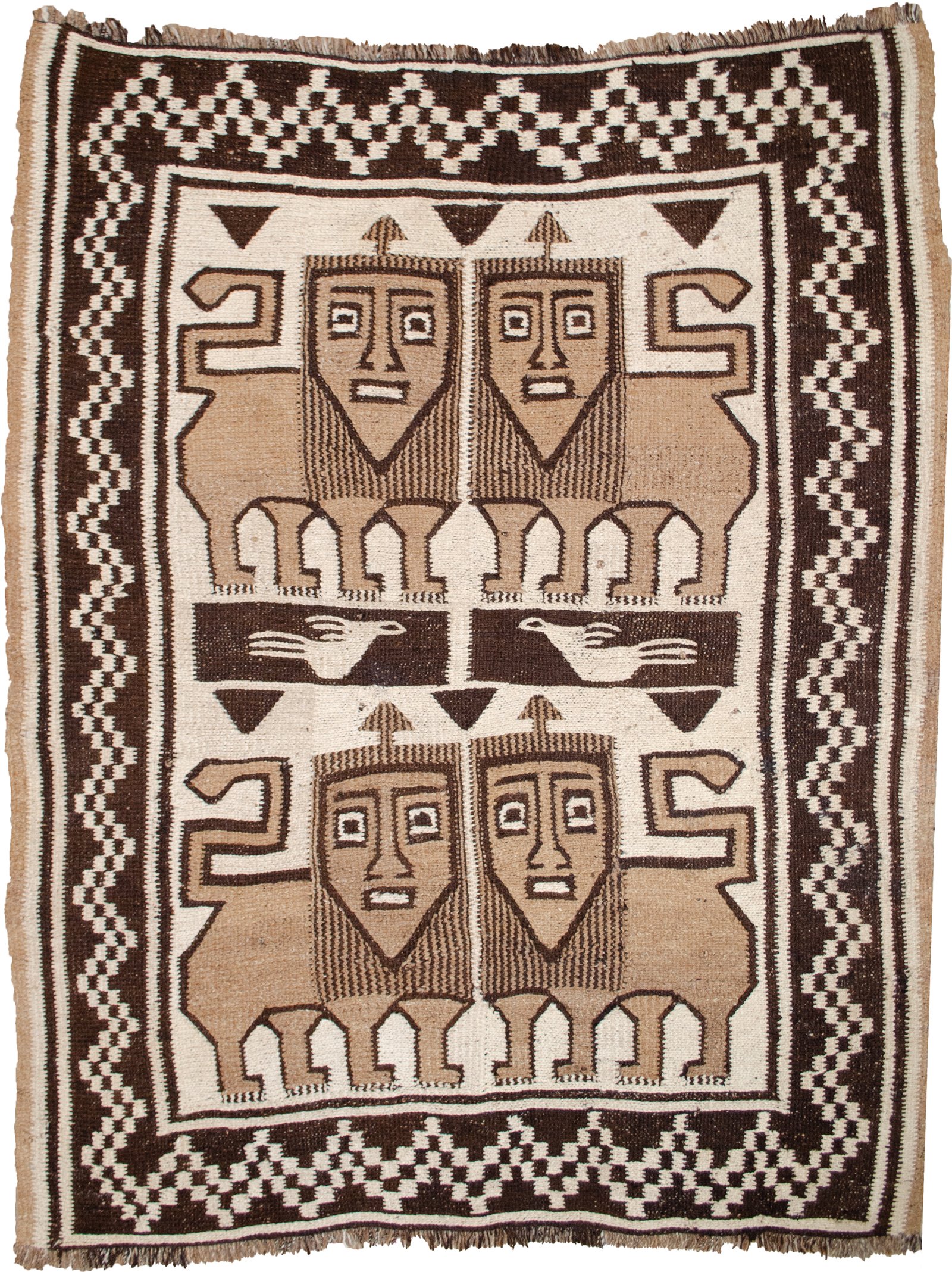 This rare and whimsical Bakhtiari kilim is a striking example of tribal storytelling through textile art. Known for their symbolic motifs, the Bakhtiari tribe of southwest Iran often wove images of lions to represent strength and nobility. In this special piece, however, the lions take on a gentler, playfully timid expression—a charming and unusual interpretation that adds warmth and personality.
