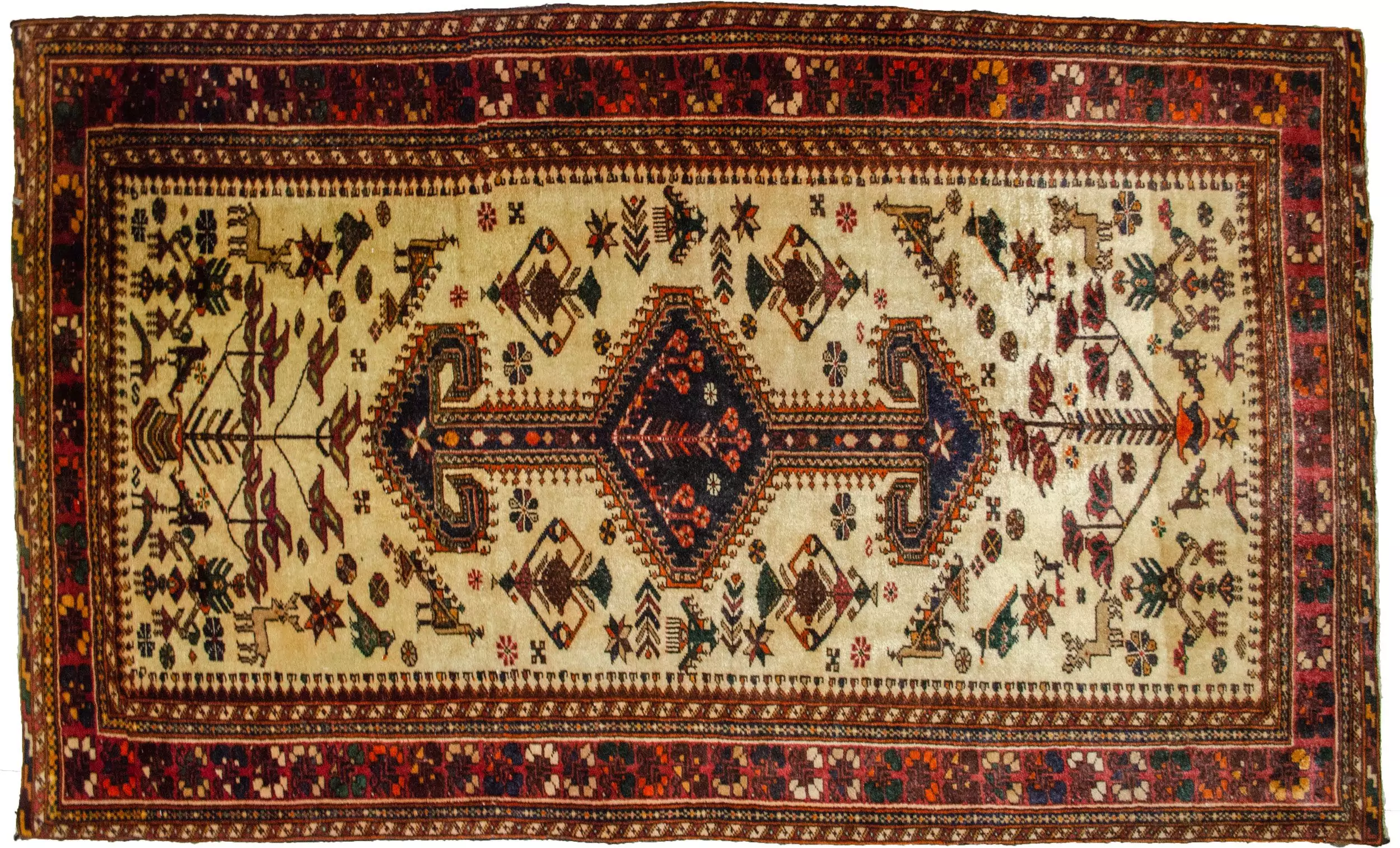 Handmade Rare Vintage Shiraz Rug 1940s 165 x 113cm (5.4′ x 3.7′)