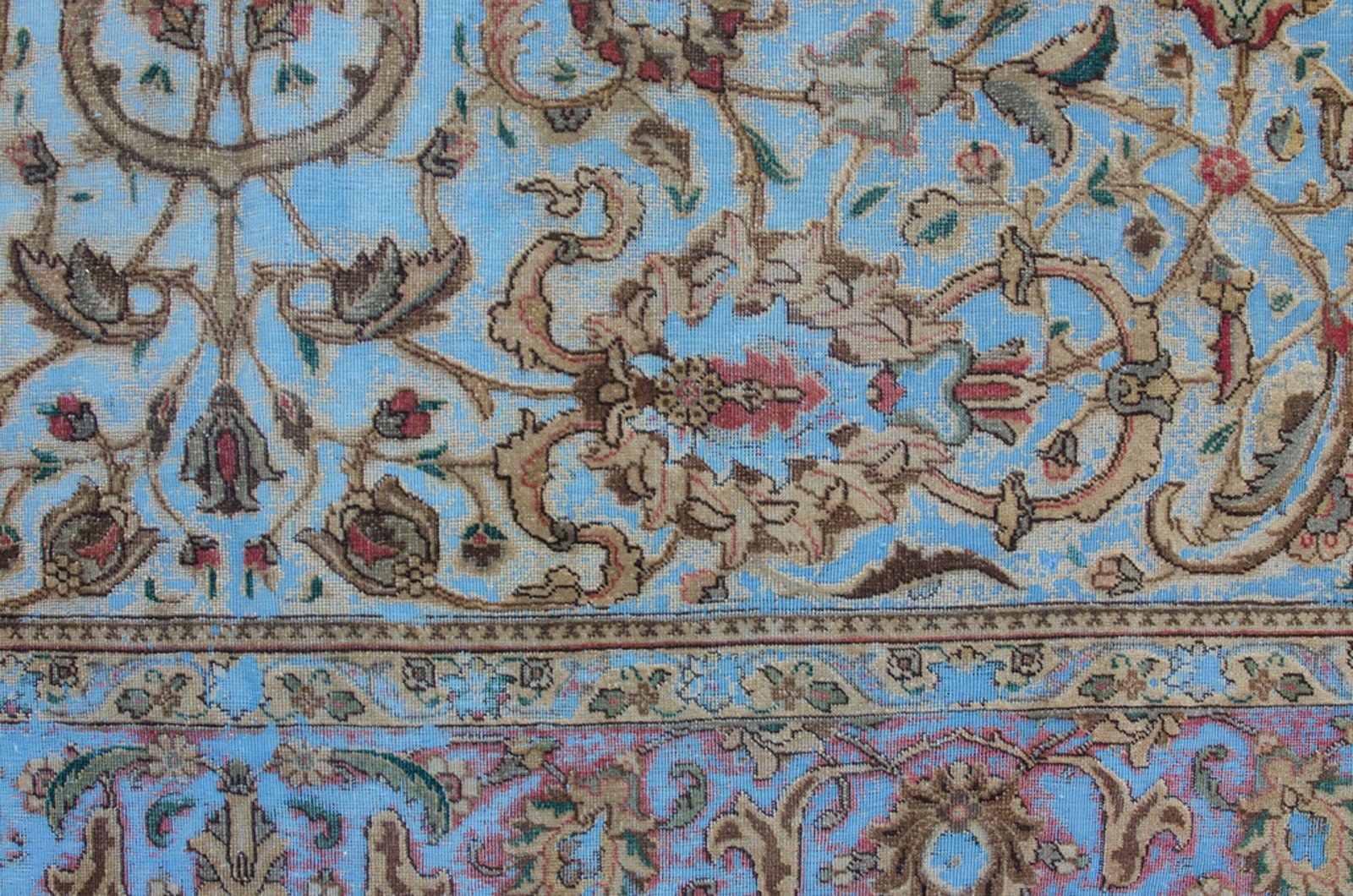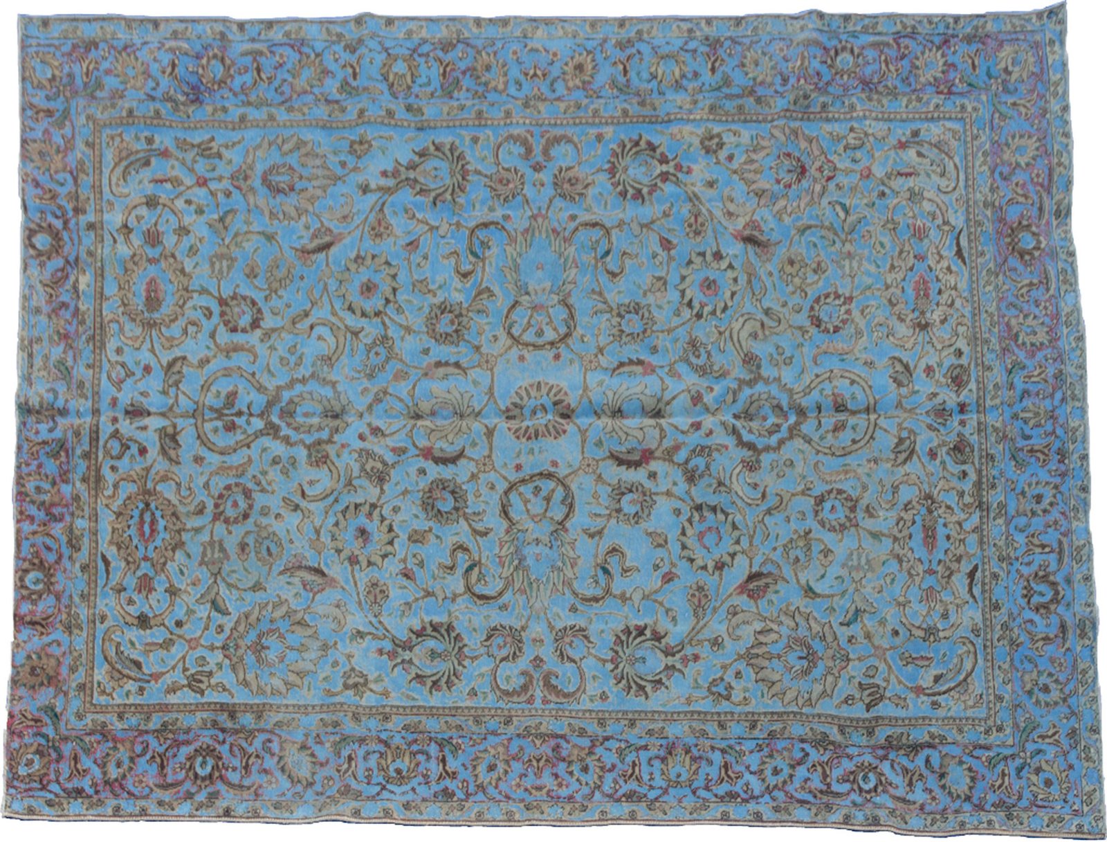 The elegant turquoise tone gives the carpet a refreshing sophistication, while the original Persian motifs lend cultural depth and charm. Whether styled in a classic, eclectic, or modern space, this one-of-a-kind rug becomes an immediate conversation piece and visual anchor.