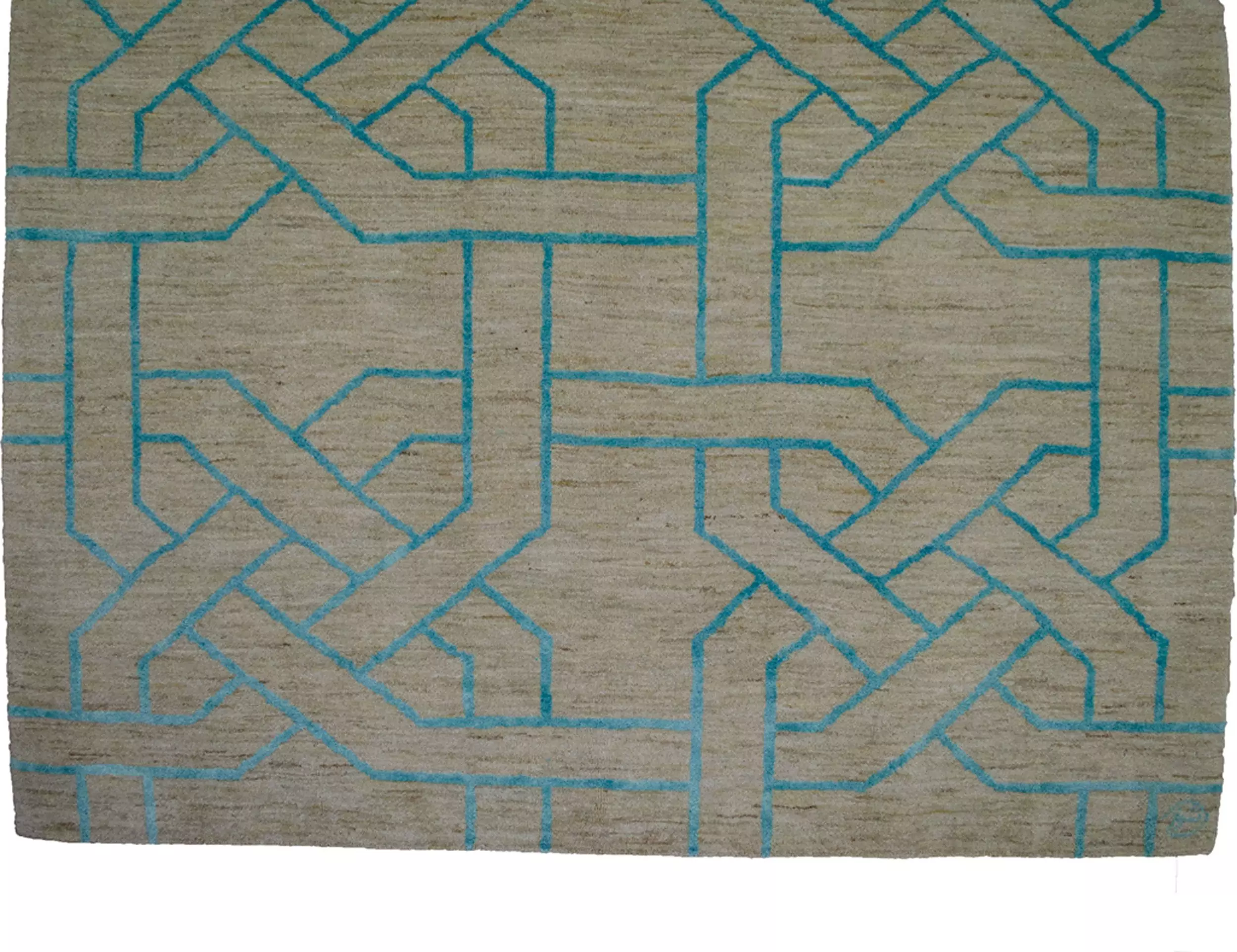 The fine weave not only enhances the crispness of the geometric pattern but also contributes to the rug’s exceptional durability and elegant drape. This makes it not only a decorative centrepiece but a functional work of art that can stand the test of time.
