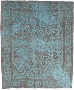 Fabulous Retro Chic carpet. Decorative ground colour with all-over floral erased design gives it a very modern look, yet keeping its traditional theme. These pieces are one-offs that are made from vintage and antique Persian carpet. They are partly over-dyed in a way to create an embossed look. As a result, you get a unique artisan, funky design.