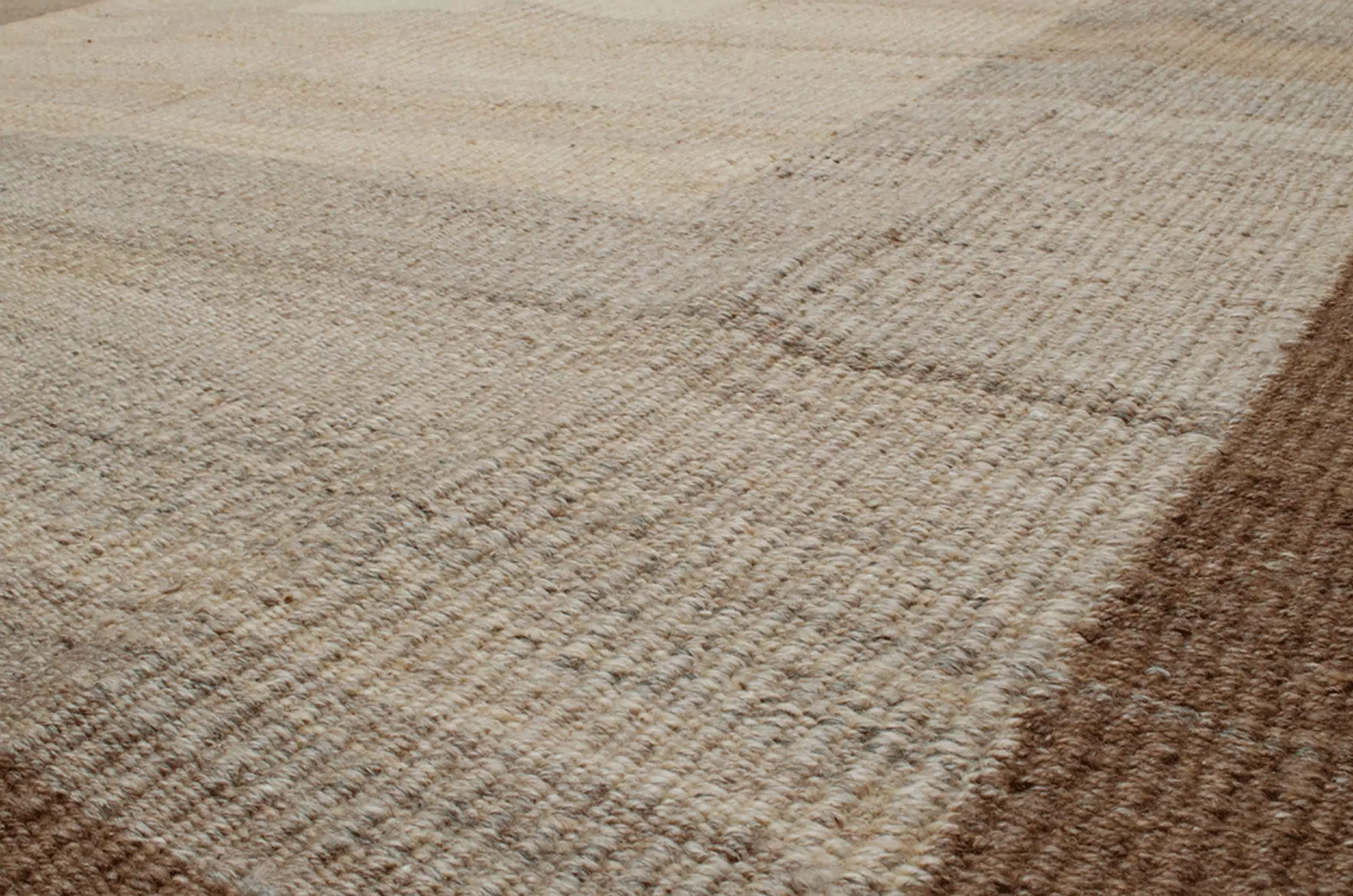 Woven from a premium blend of undyed and naturally dyed handspun wool, this kilim reflects both craftsmanship and sustainability. The texture is soft yet substantial, and the natural colour variation in the yarn adds subtle depth and richness.