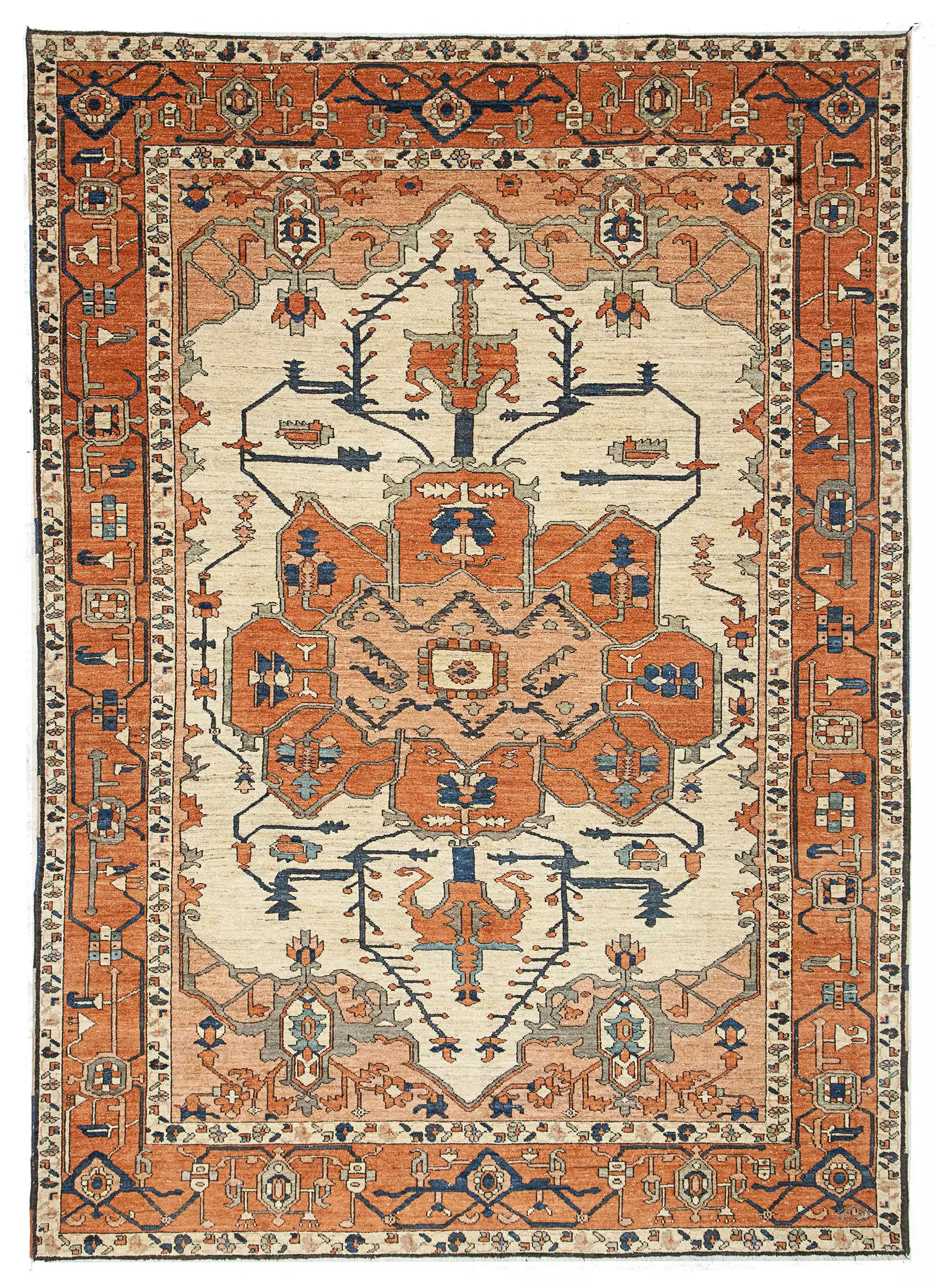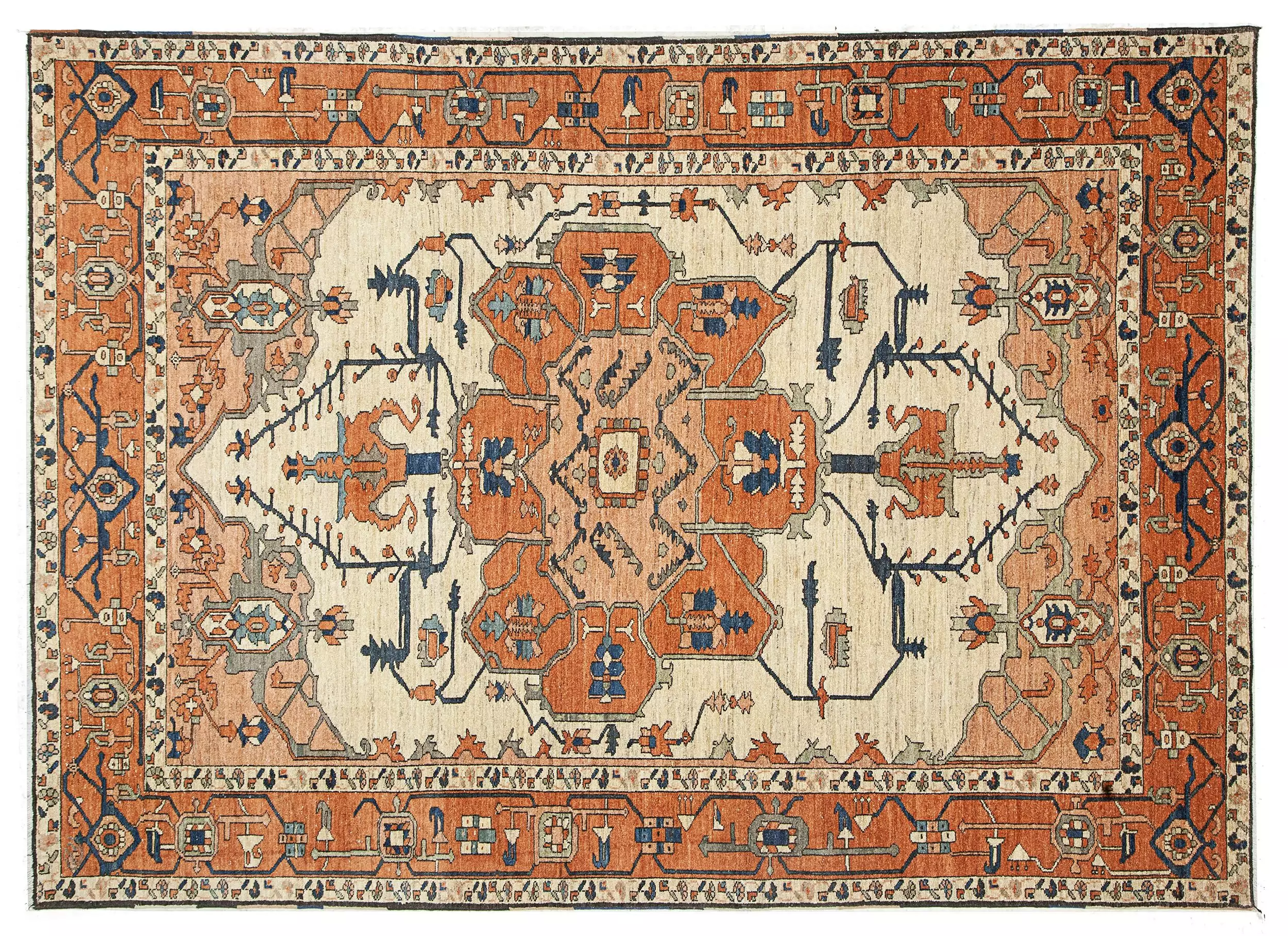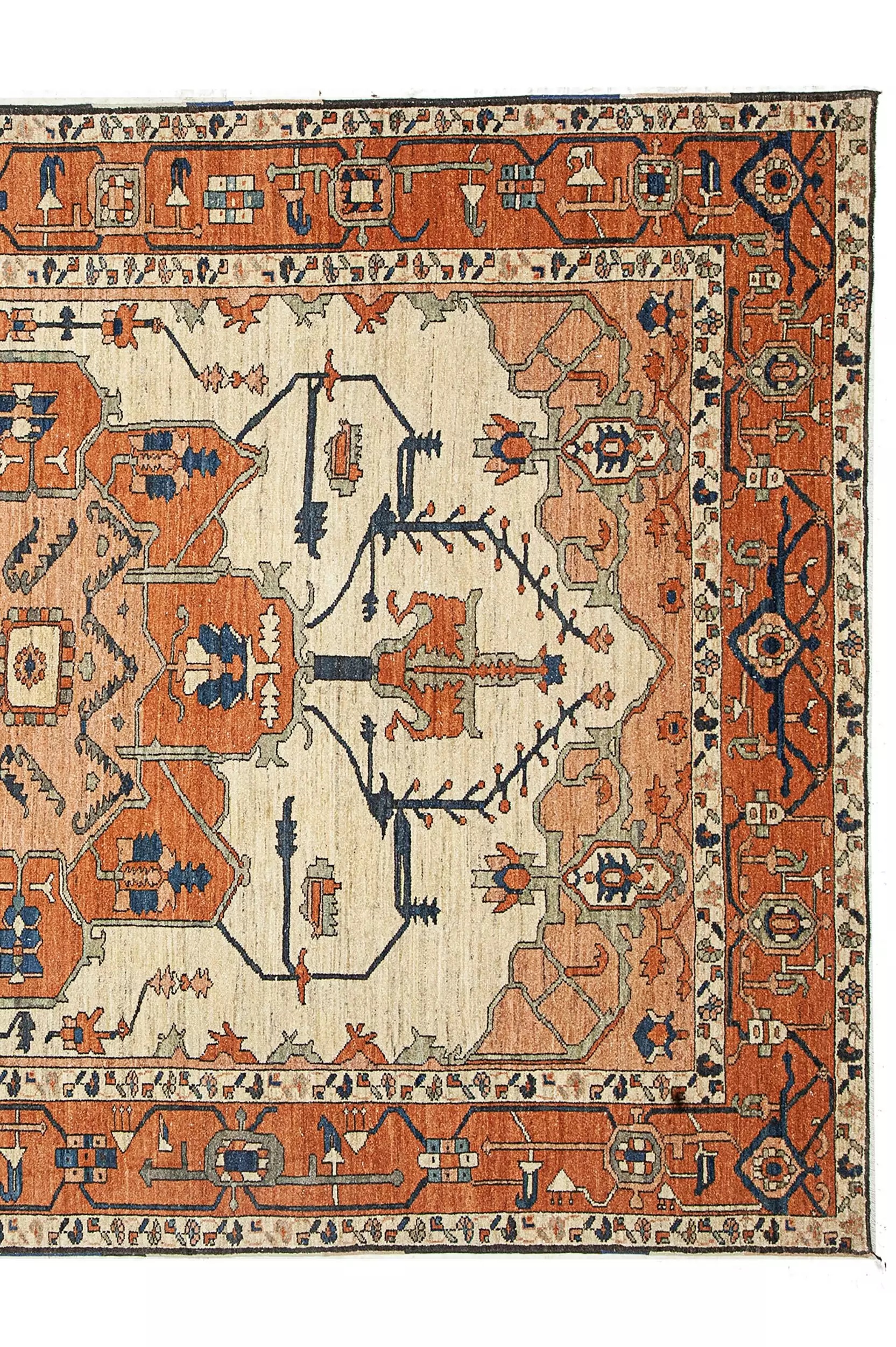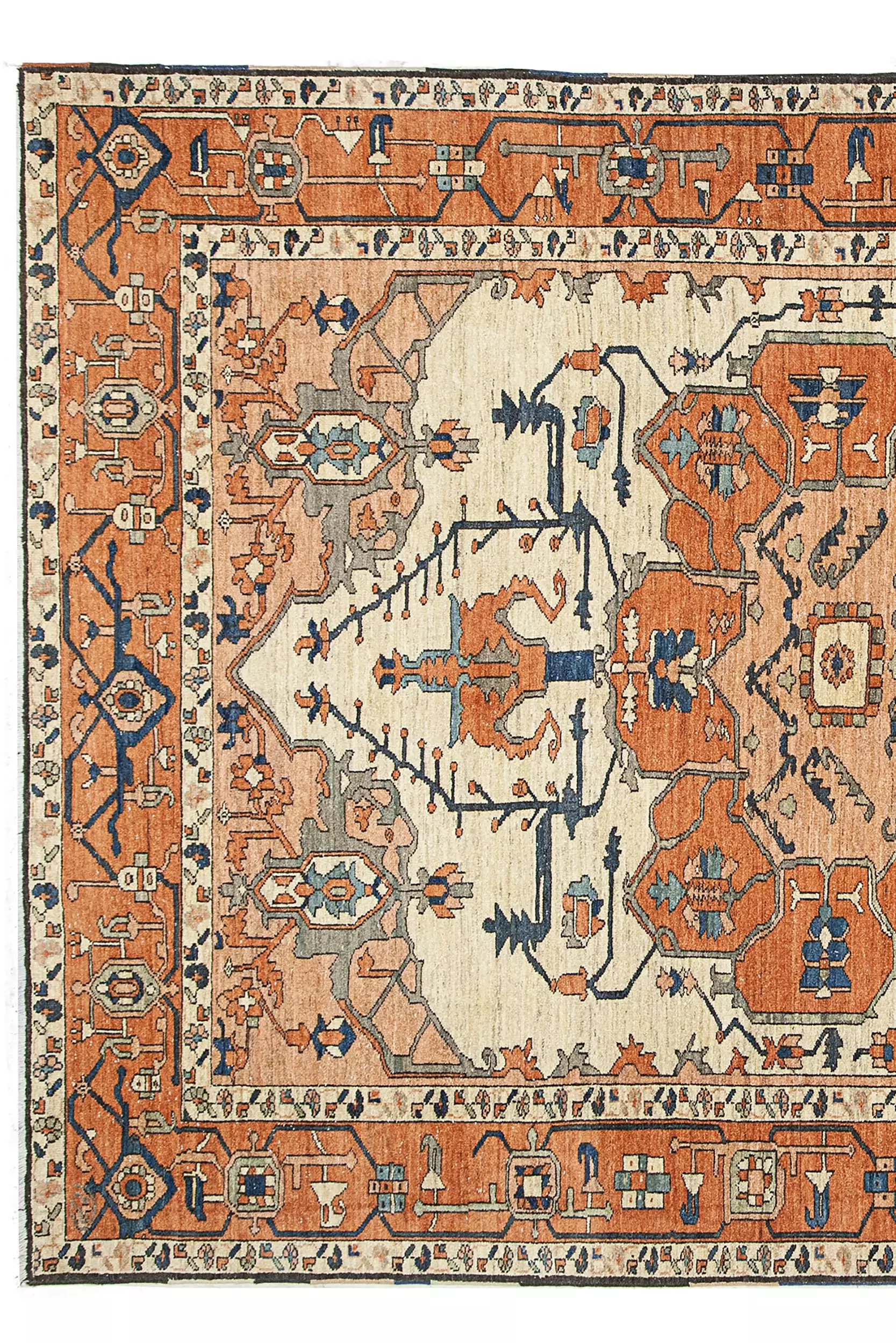 This Serapi Heriz rug is a standout piece from our own production, reflecting a deep respect for traditional Persian weaving paired with carefully considered modern craftsmanship. Like all of our pieces, this rug is made with handspun wool and dyed using natural pigments, ensuring a soft, authentic texture and rich, harmonious colour palette.