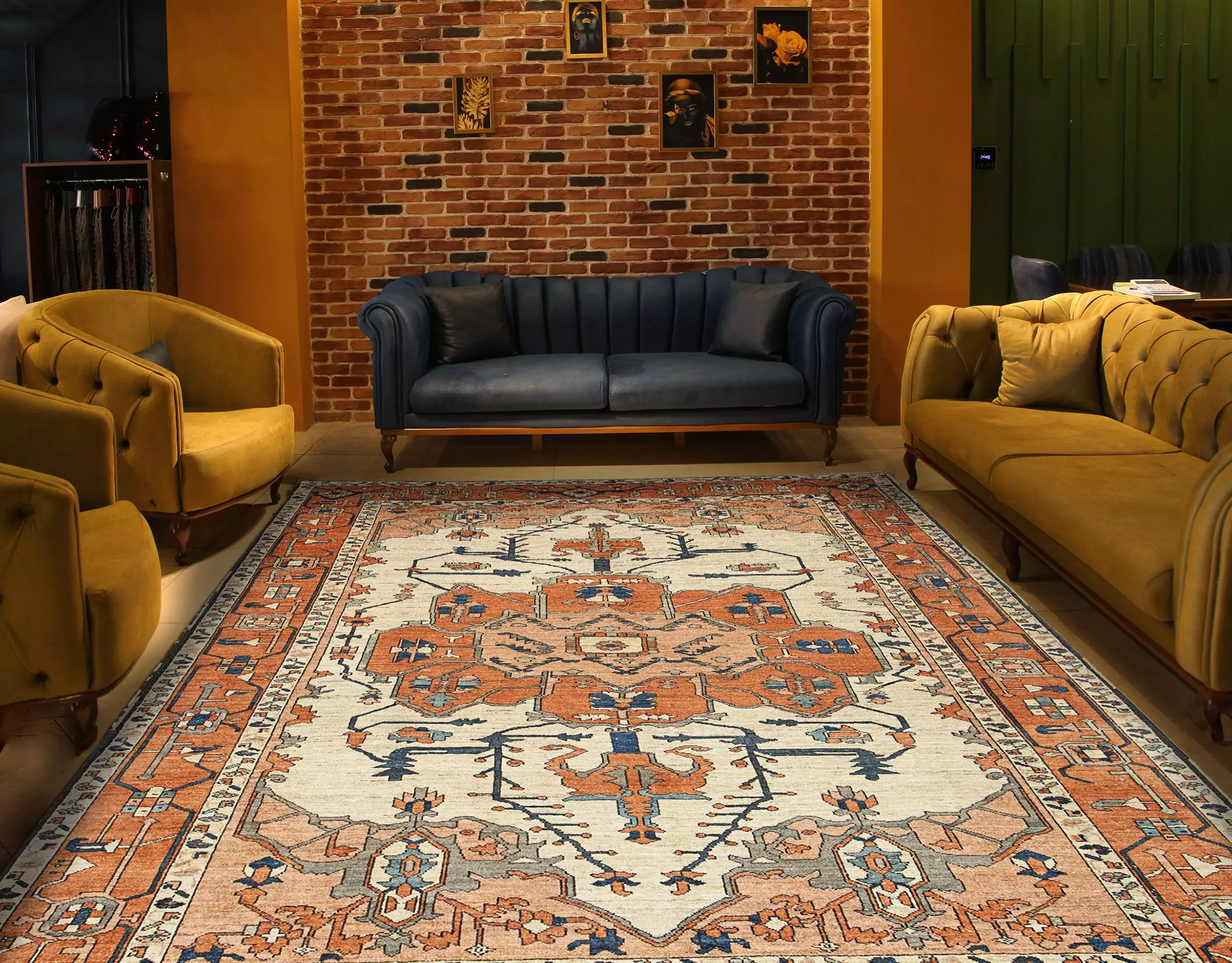 Our special antique finish gives the rug a gently aged character, enhancing its aesthetic appeal without compromising the strength or integrity of the weave. The result is a timeless piece of art—rich in tradition, refined in palette, and versatile enough for both classic and contemporary interiors.