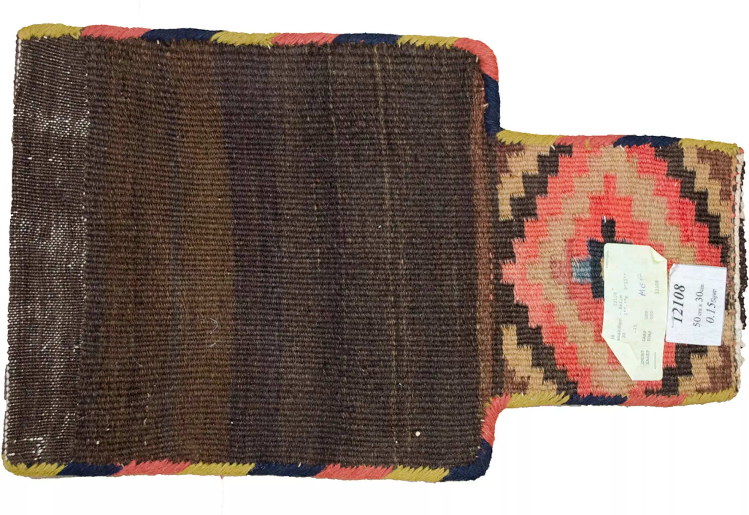 This sweet antique Kurdish salt bag hails from the tribal regions of West Iran, offering a beautiful glimpse into nomadic life and heritage. Traditionally used for carrying salt, these bags were functional yet deeply personal, often woven by women as part of their dowries or household furnishings.