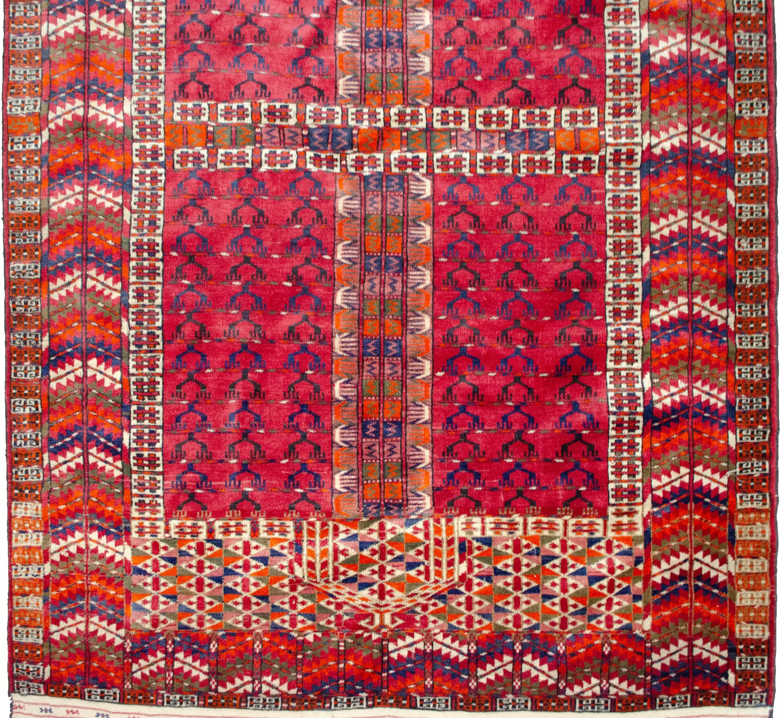 Whether displayed as a floor covering or wall hanging, this rare Pardeh-style Turkmen prayer rug is a powerful statement of cultural heritage and fine textile artistry.