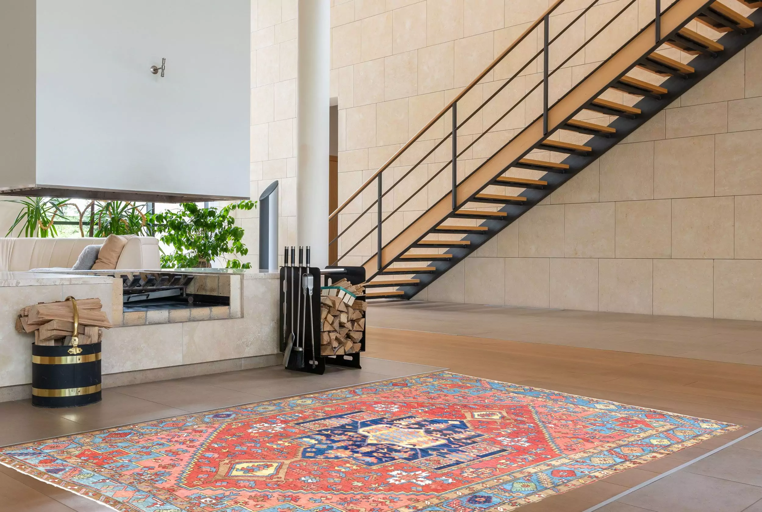 A joyful and rare variation on the classic Heriz/Karaja design—artistic, inviting, and full of character, with a rich, harmonious palette.