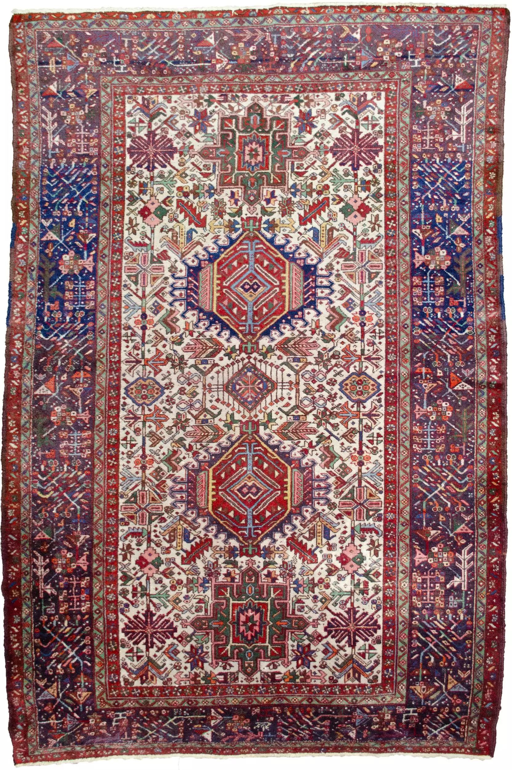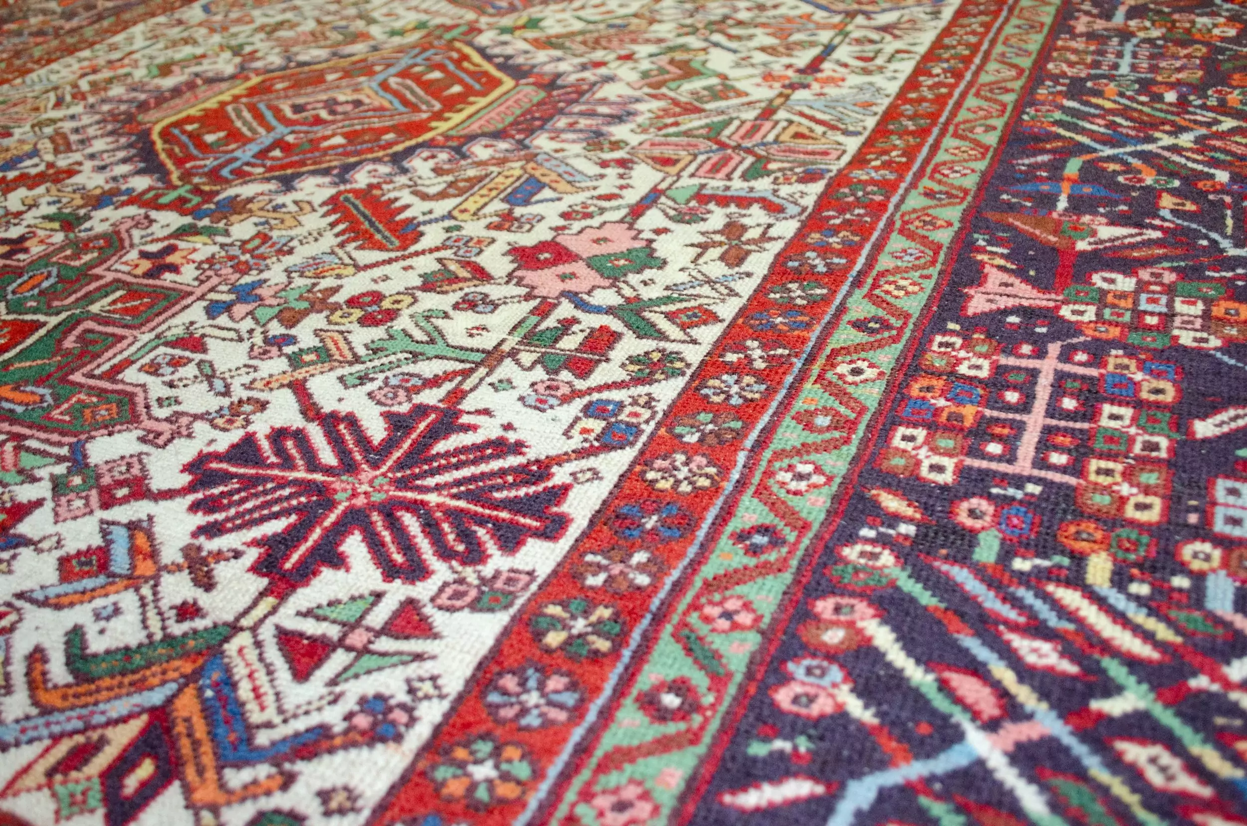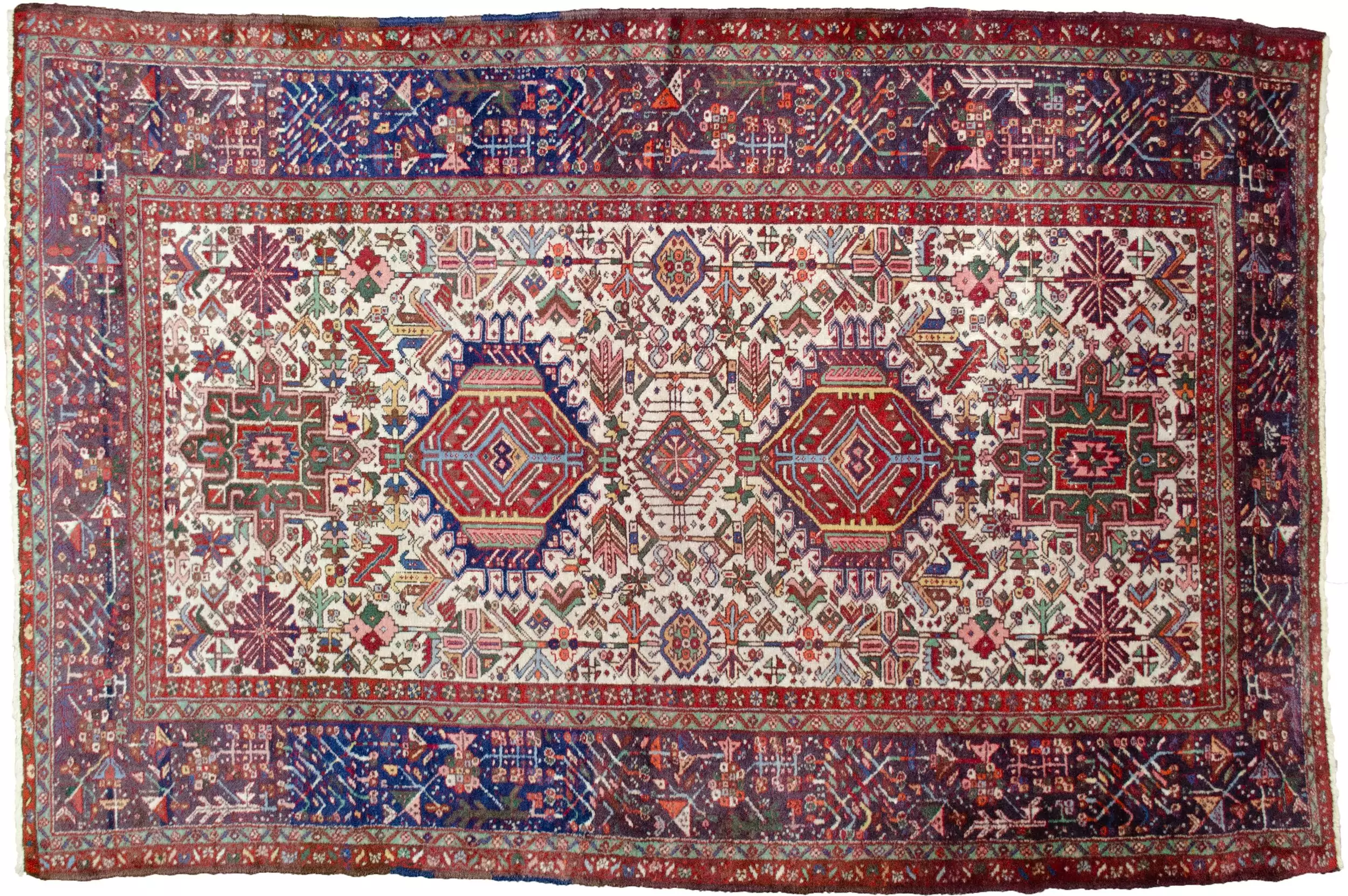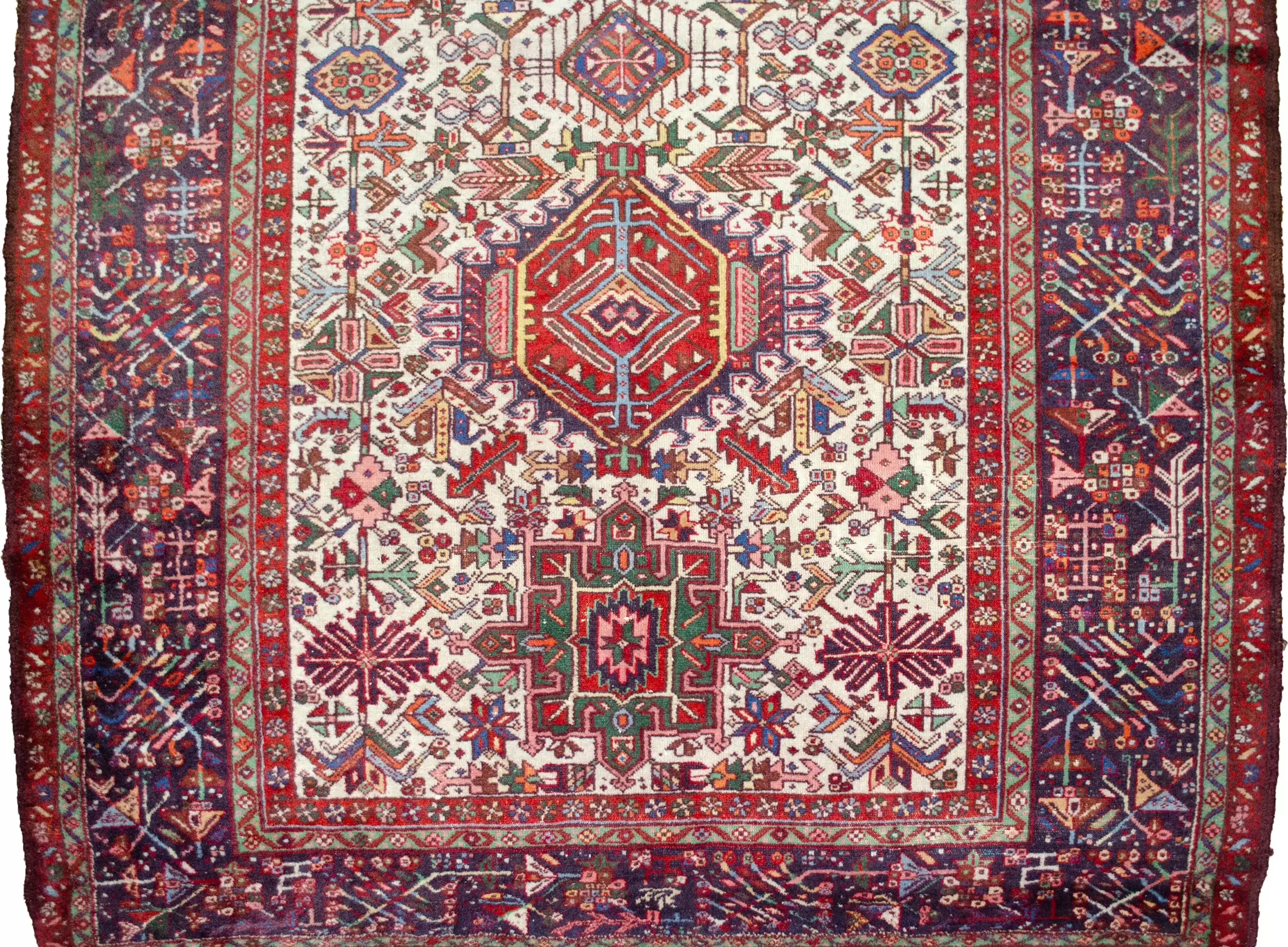 This unusual and collectible Karaja rug stands out not only for its rare cream ground and sought-after size, but also for a fascinating weaving story hidden in its construction—adding charm and intrigue for collectors and connoisseurs.