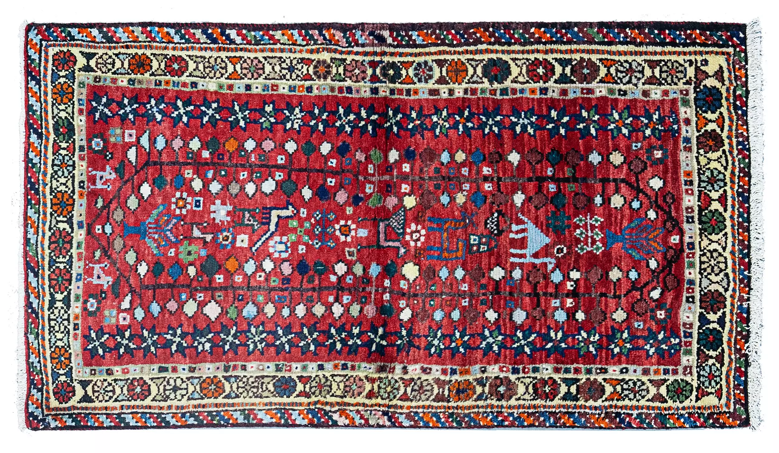 A visually rich and symbolically meaningful tribal rug, this Shiraz piece offers narrative charm and decorative warmth—a true celebration of Persian folk art.