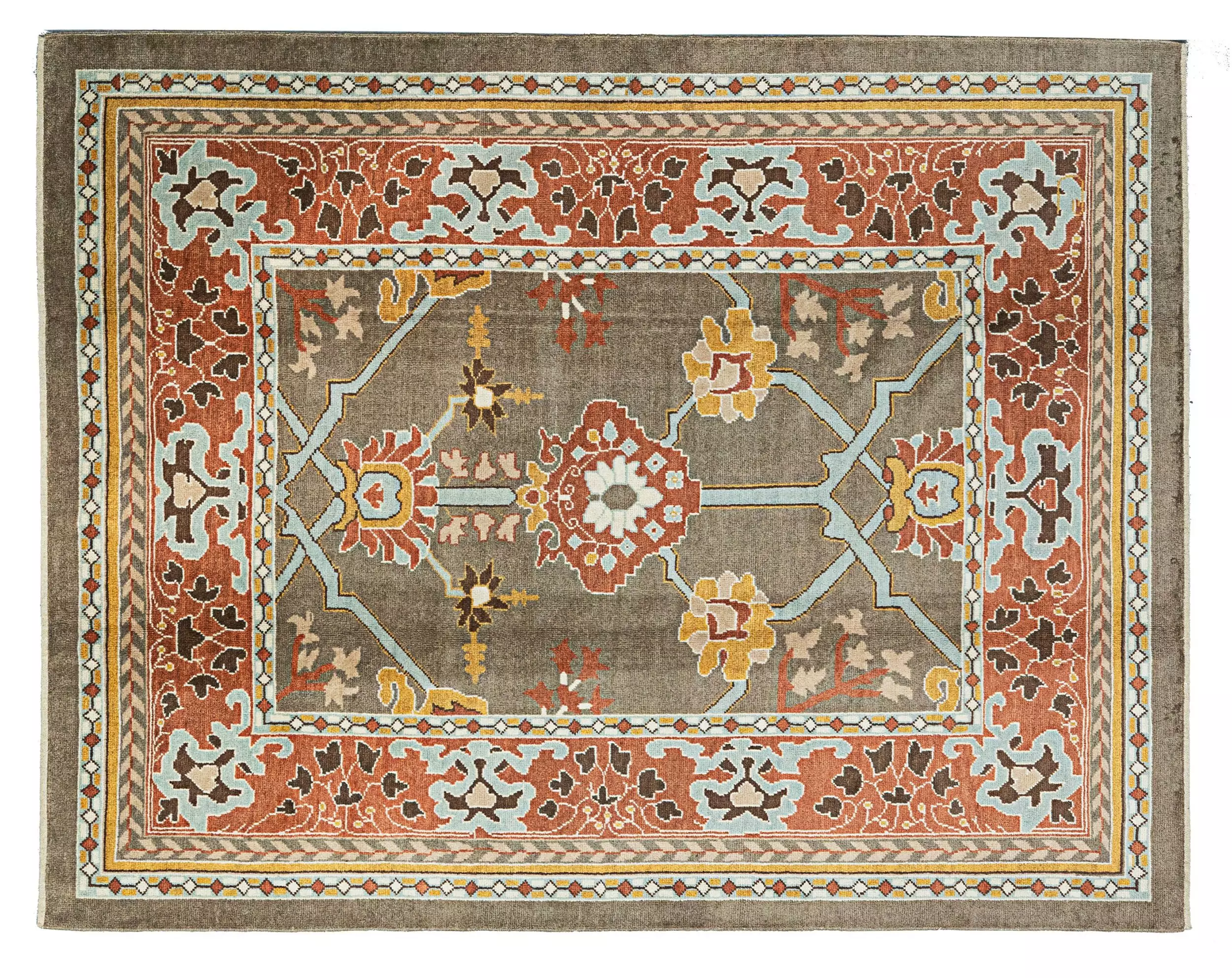 This stunning hand-knotted Ushak carpet, designed and crafted in-house, draws deep inspiration from the classic tradition of Donegal carpets—celebrated for their natural beauty, soft tones, and timeless elegance. Created using handspun wool and dyed with natural pigments, this piece offers exceptional vibrancy, softness, and durability, making it an heirloom in both quality and style.
