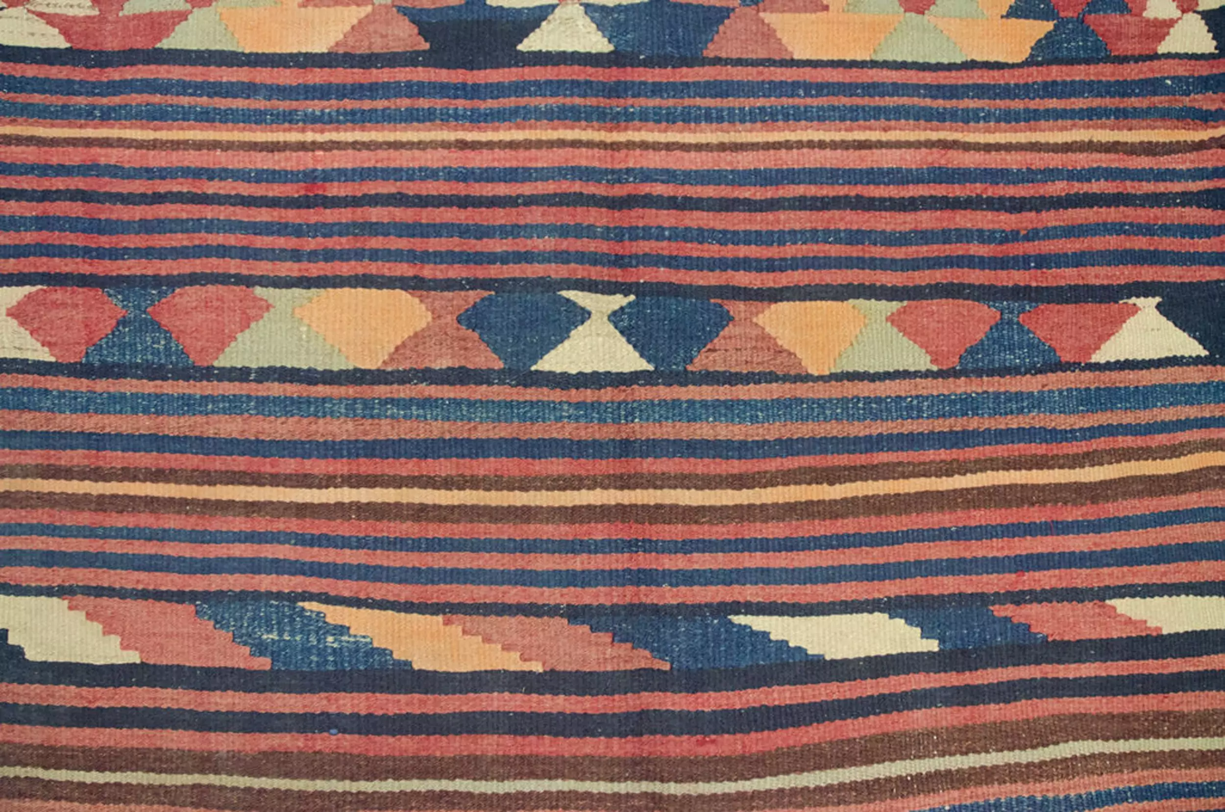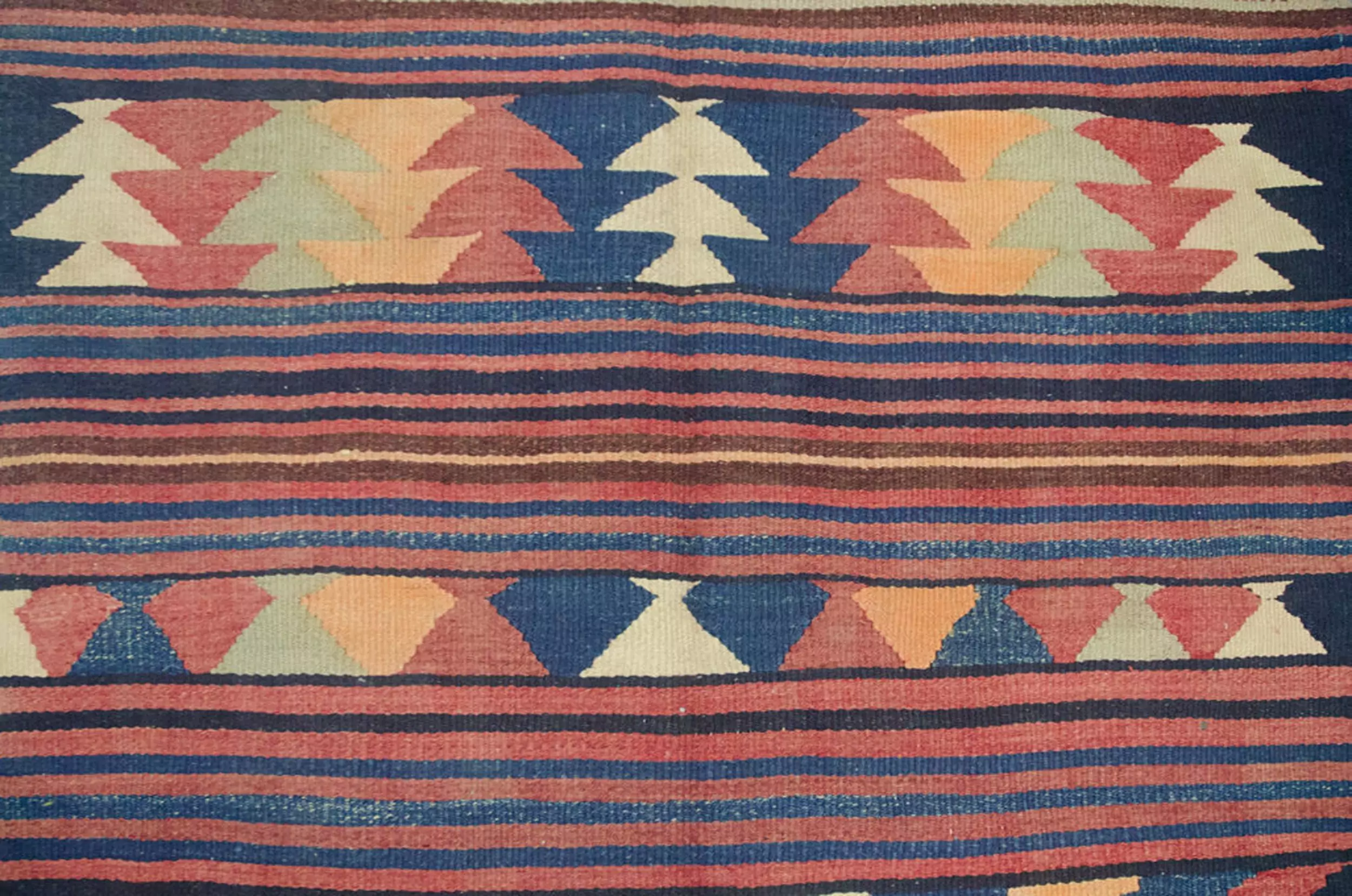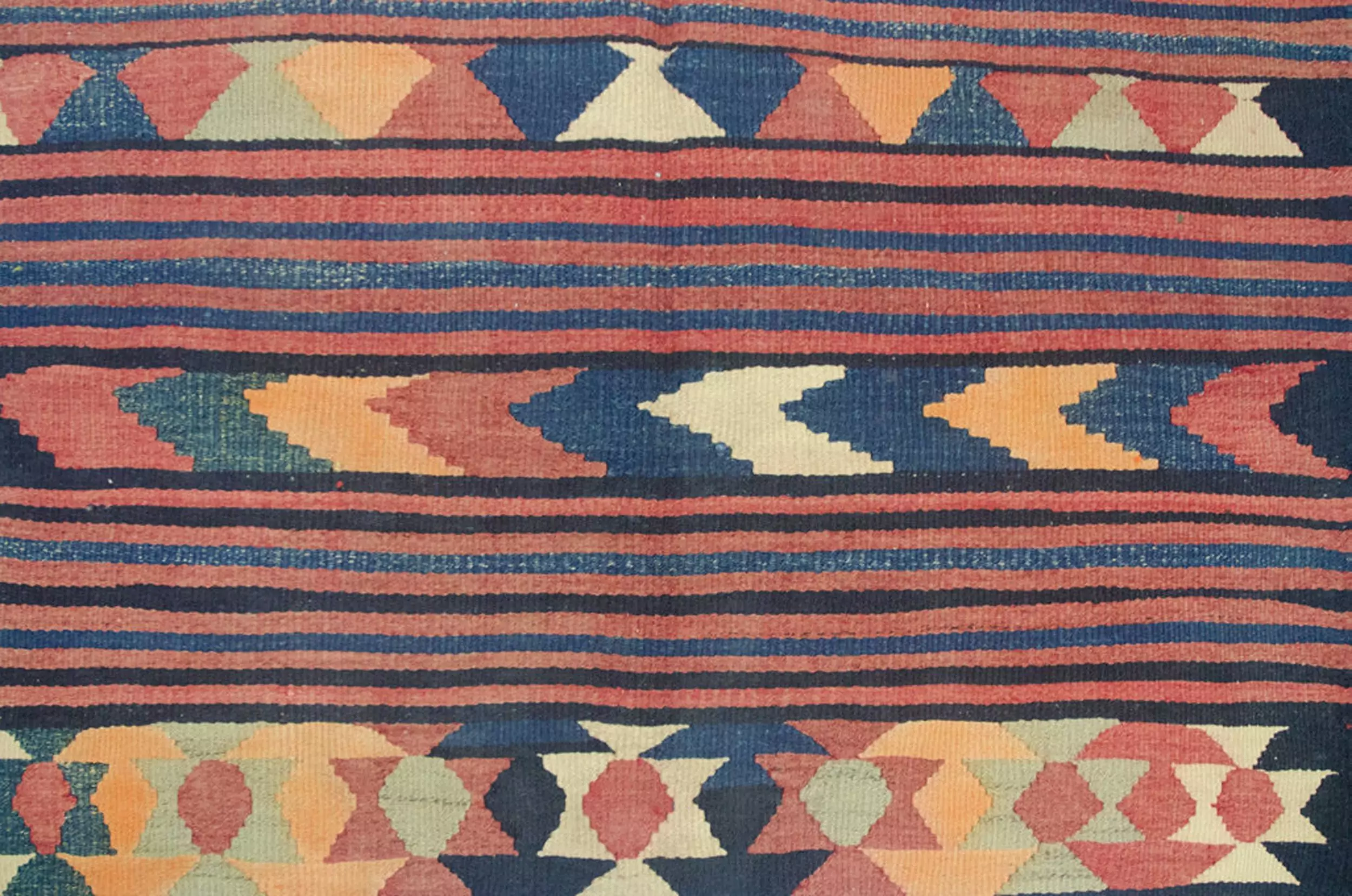 Design: Alternating horizontal stripes with wide motif bands